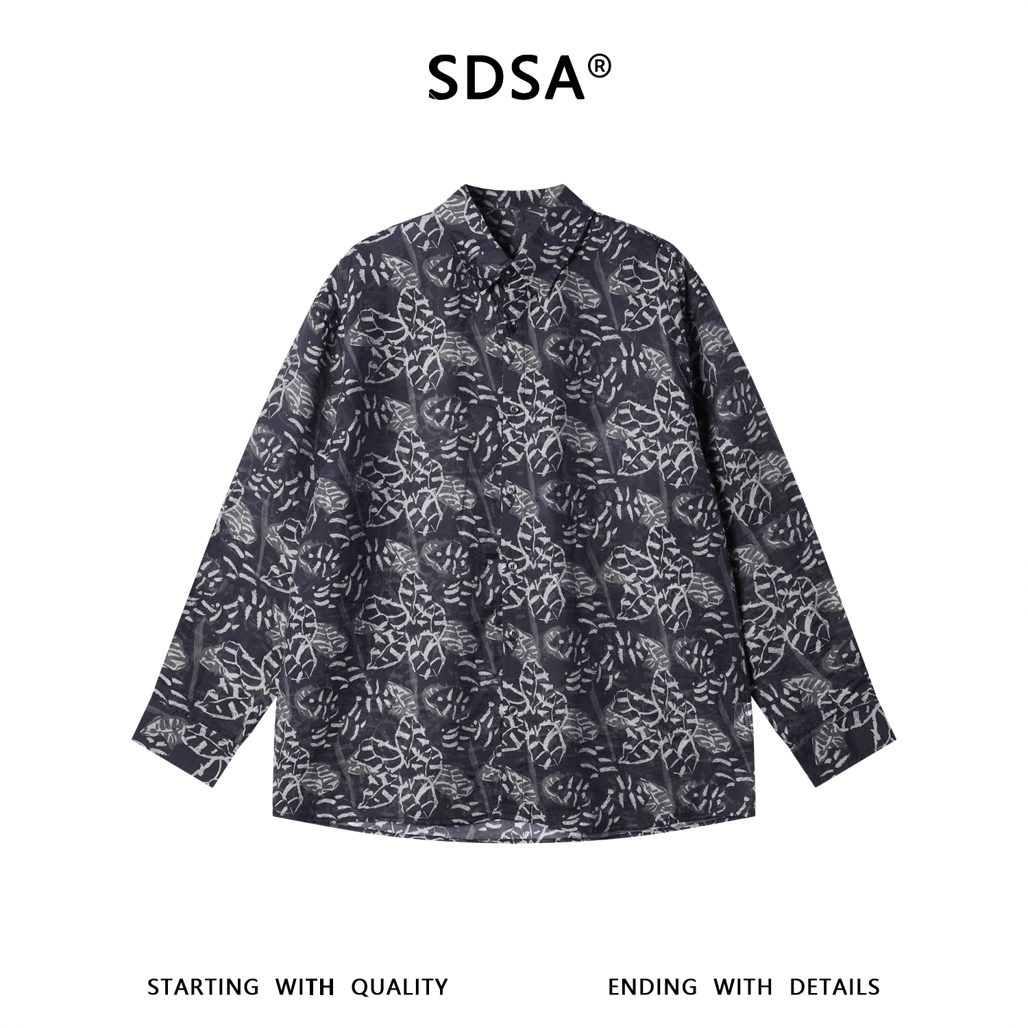 SDSA男装2026新款高贵轻奢潮牌时尚满印植物花卉长袖衬衫百搭休闲