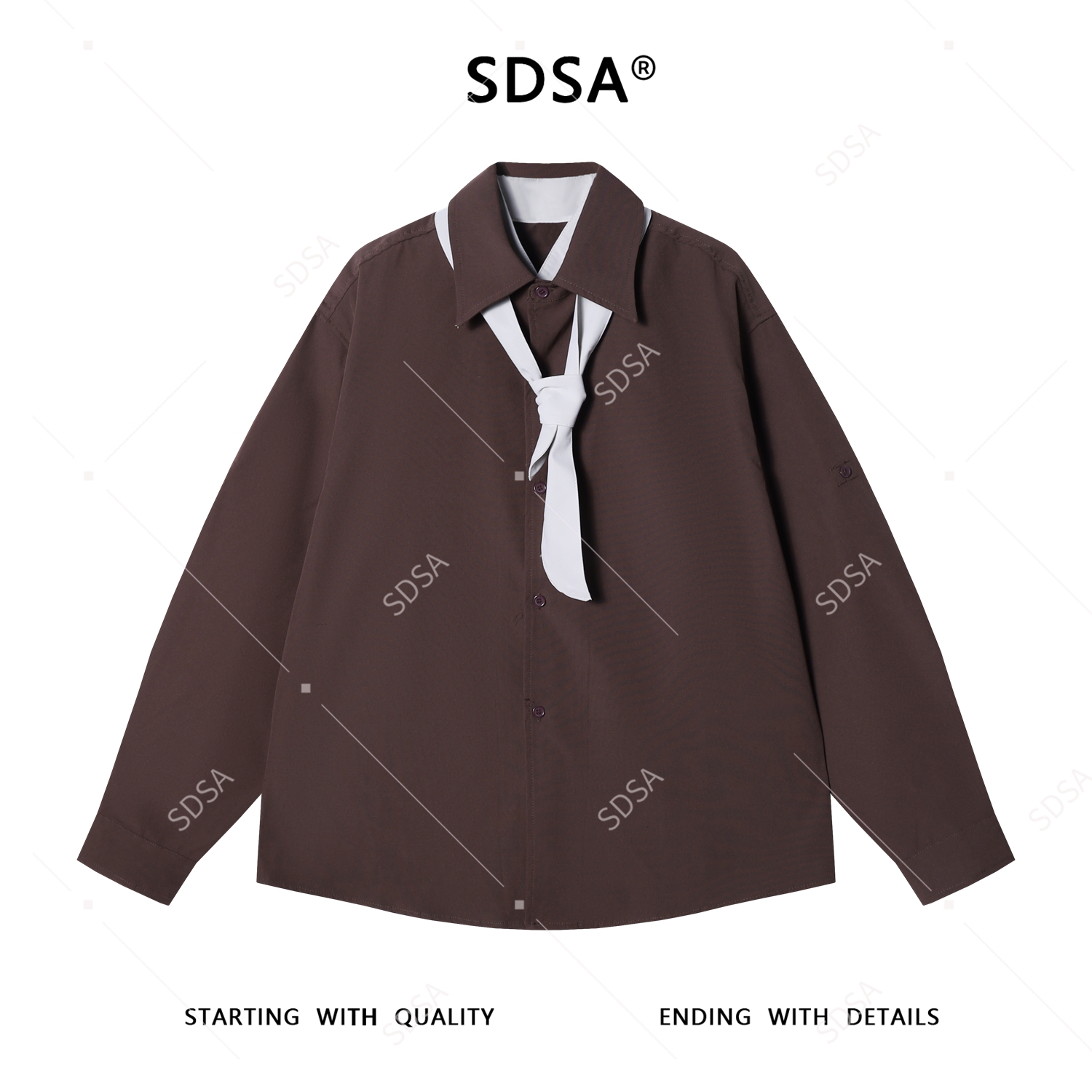 23643SDSA男士秋冬新款痞帅男装潮牌撞色领带长袖衬衫复古网红款衬衣