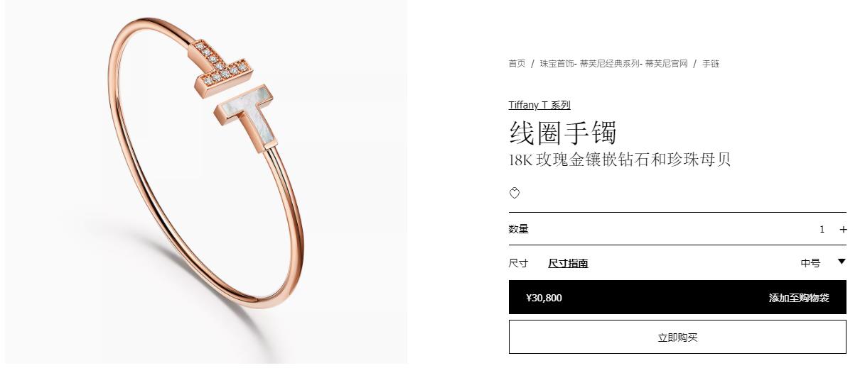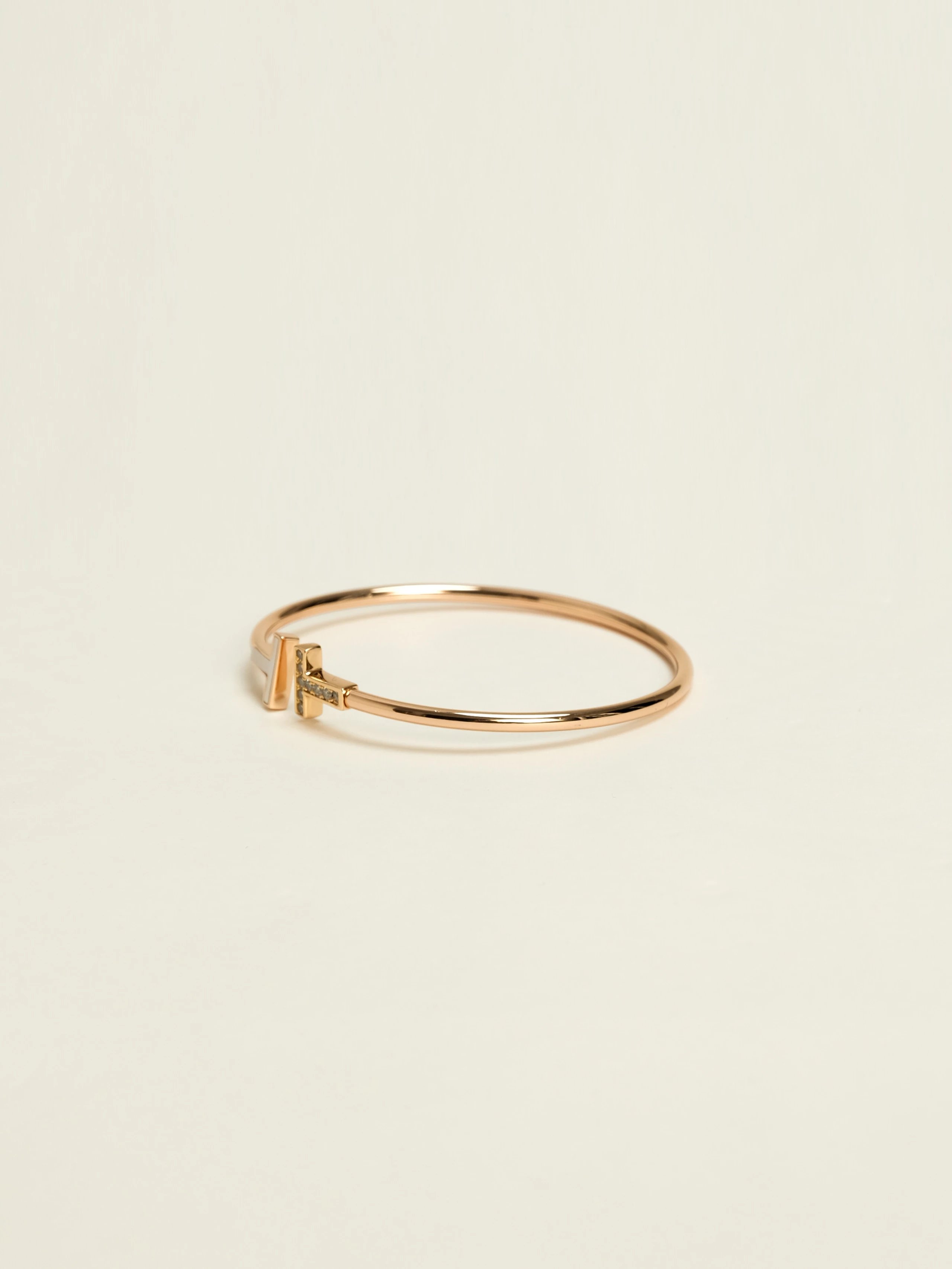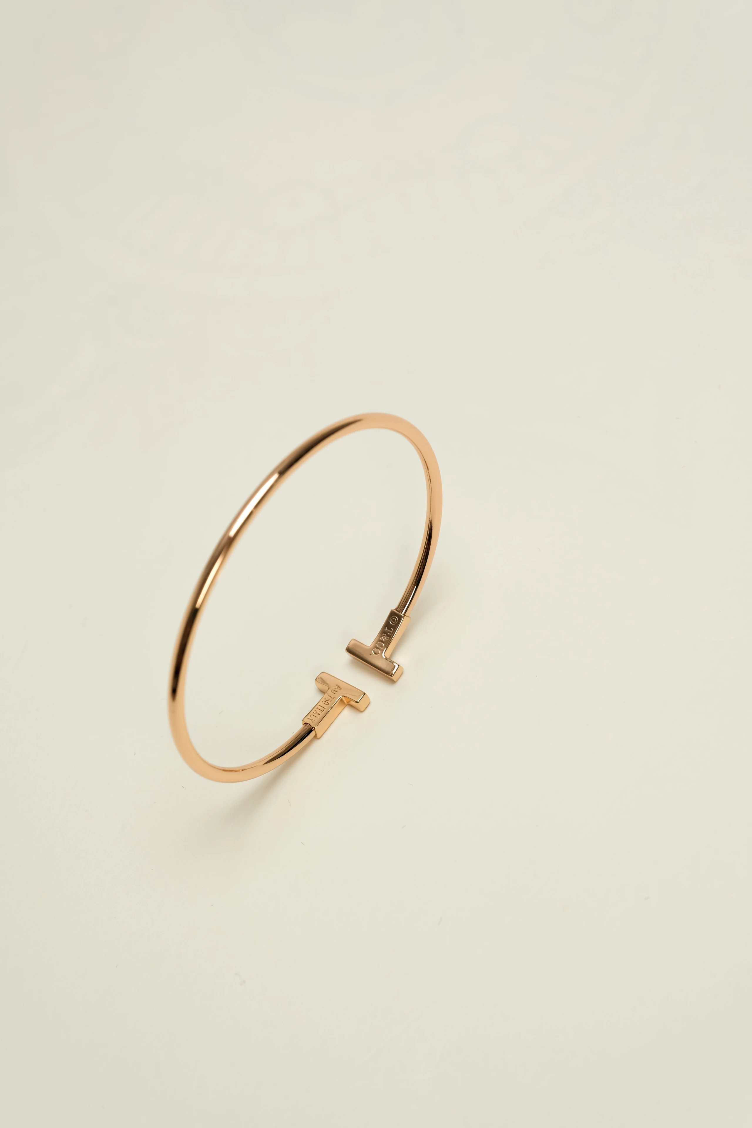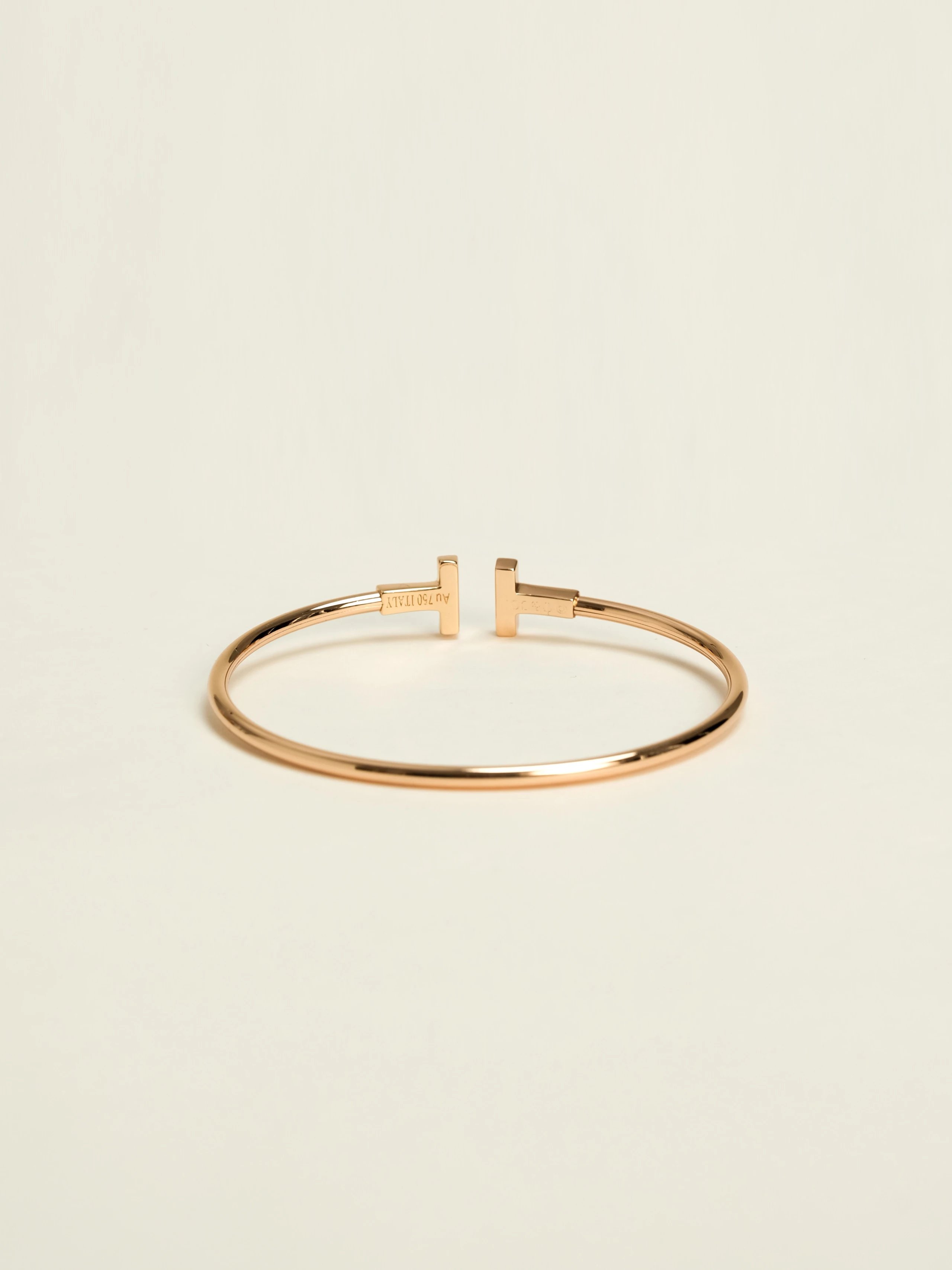 此款手镯镶嵌彩虹光泽的珍珠母贝,设计大胆、光彩耀目、典雅迷人、时尚别致。Tiffany T 系列多面设计经典迷人,令爱意时刻相伴您的左右。将这款简洁的手镯与其他金属手链叠戴,打造迷人造型