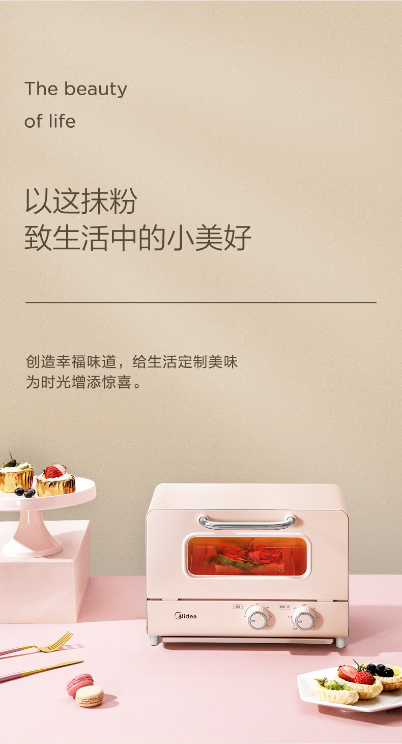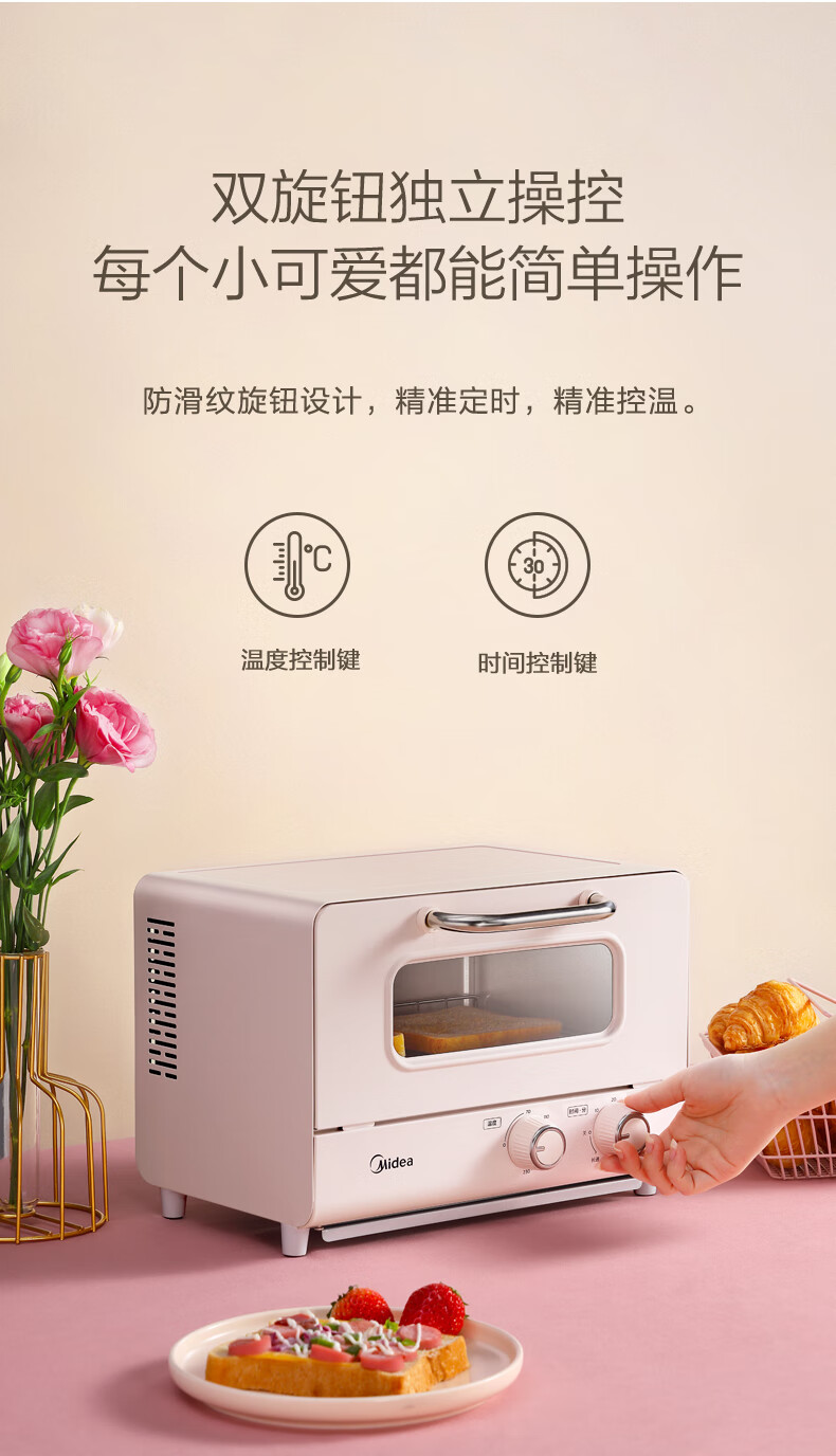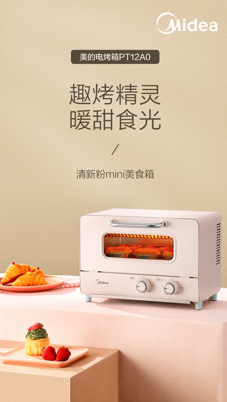 美的(Midea)家用迷你电烤箱 12L 网红烤箱 精准控温 专业烘焙 烘烤电烤箱 PT12A0