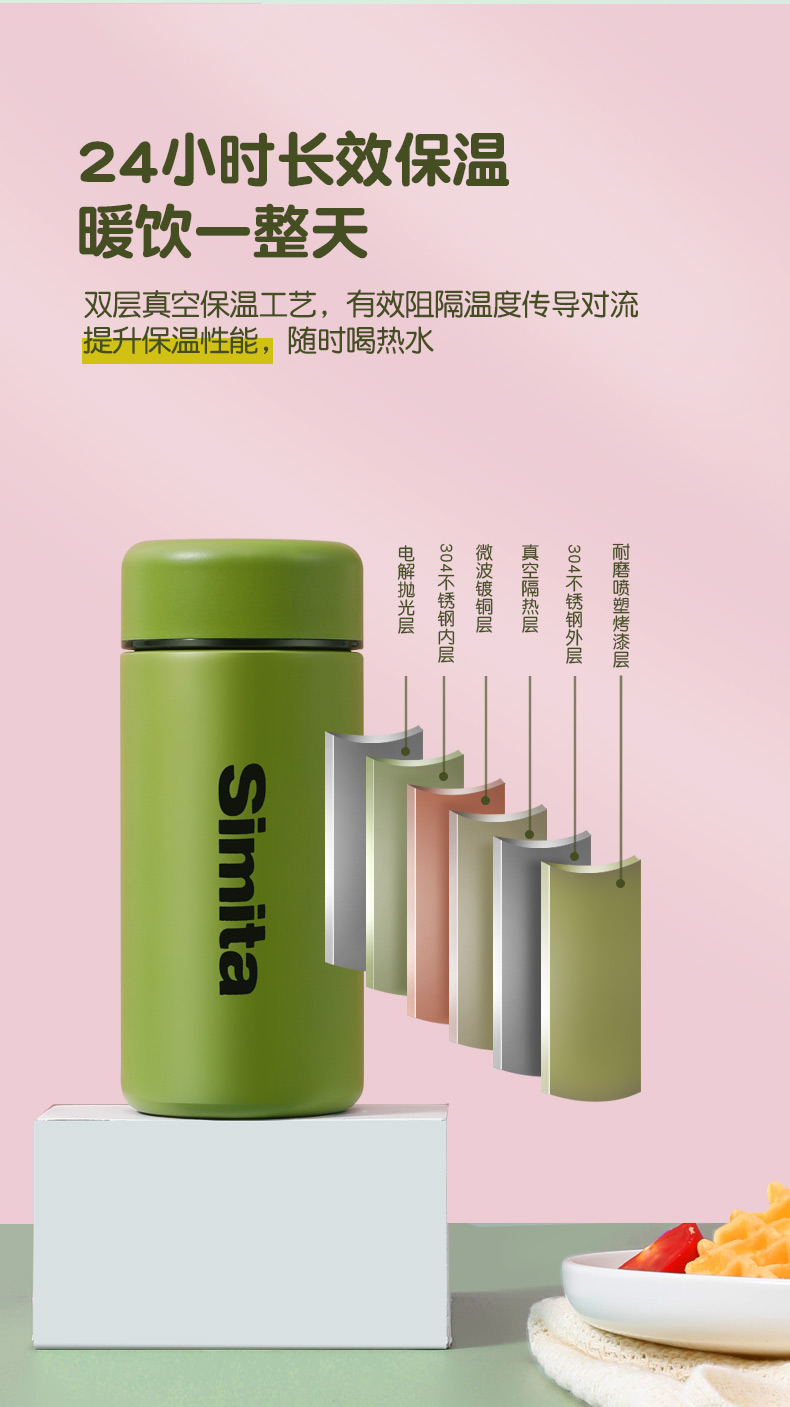 施密特风扬男女士不锈钢水杯真空保温杯商务办公车载带茶隔便携泡茶杯 MBW1007-032A