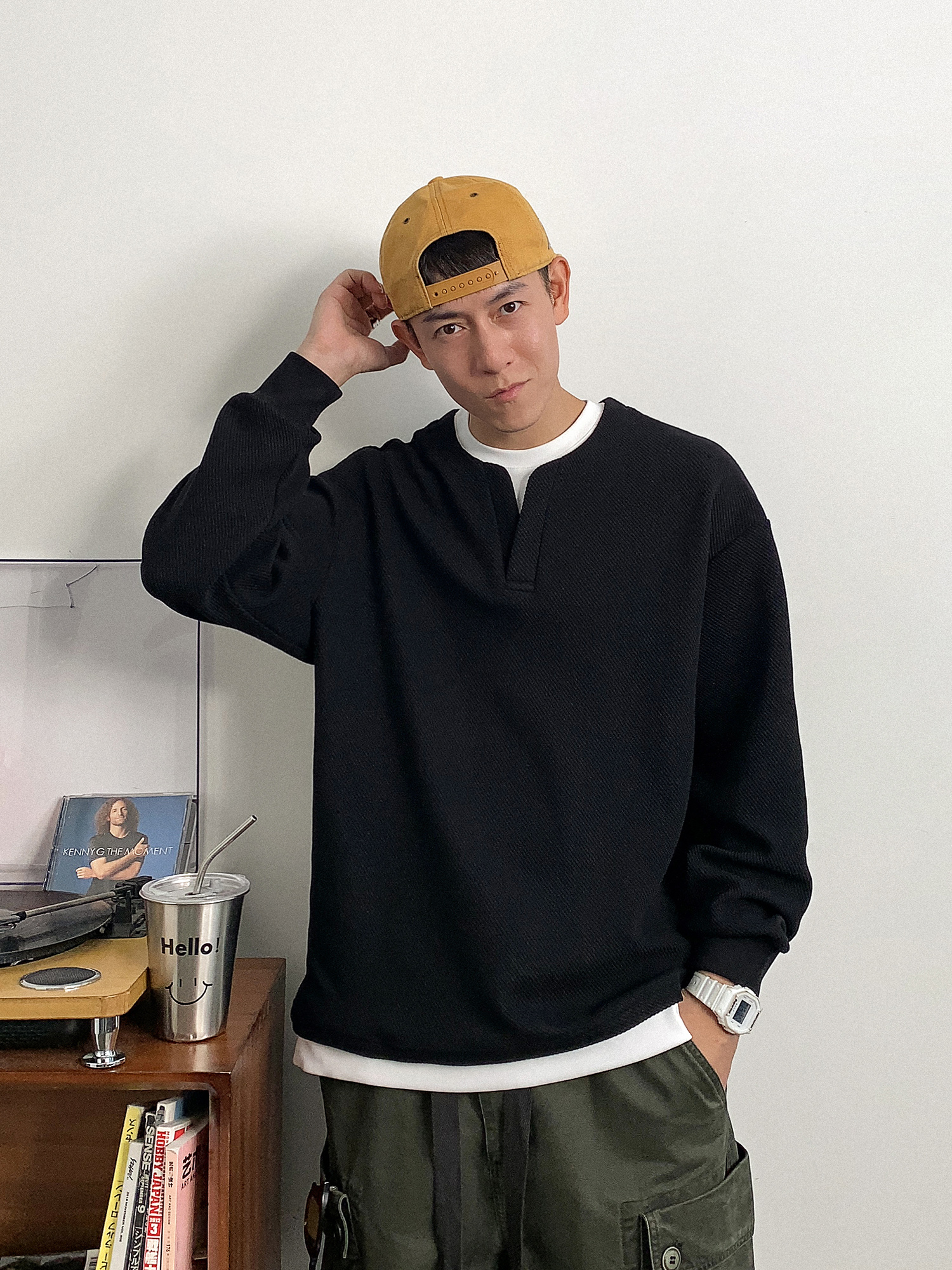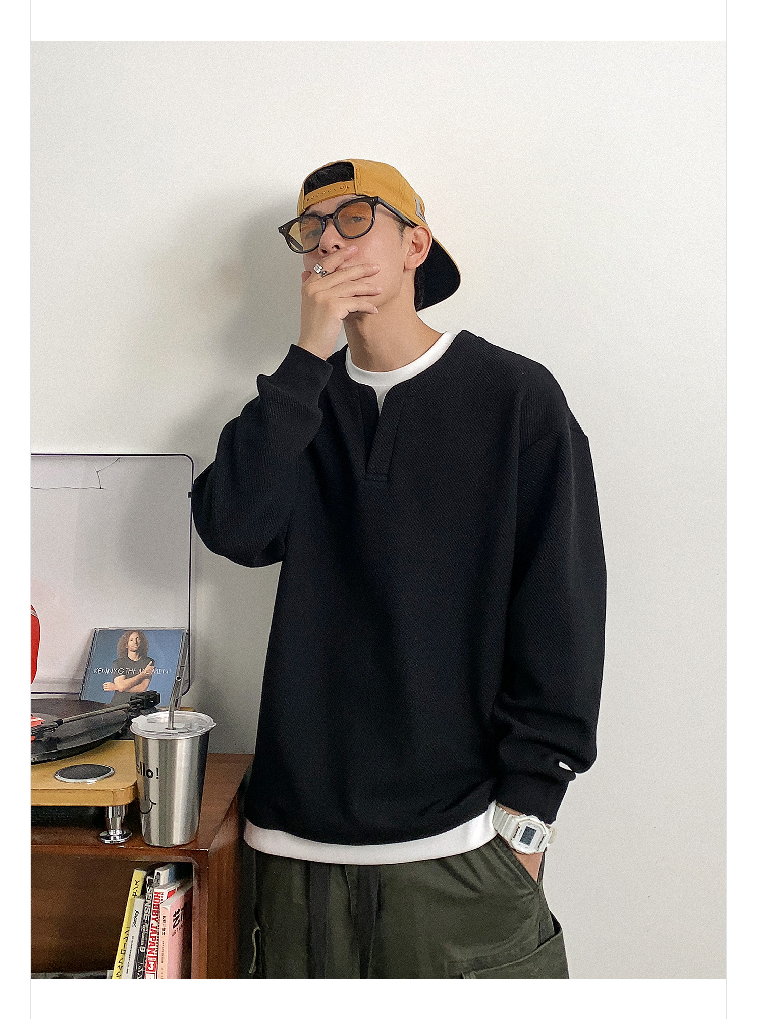 徐太浪设计感拼接假两件卫衣男秋装新款撞色上衣潮牌简约百搭外套