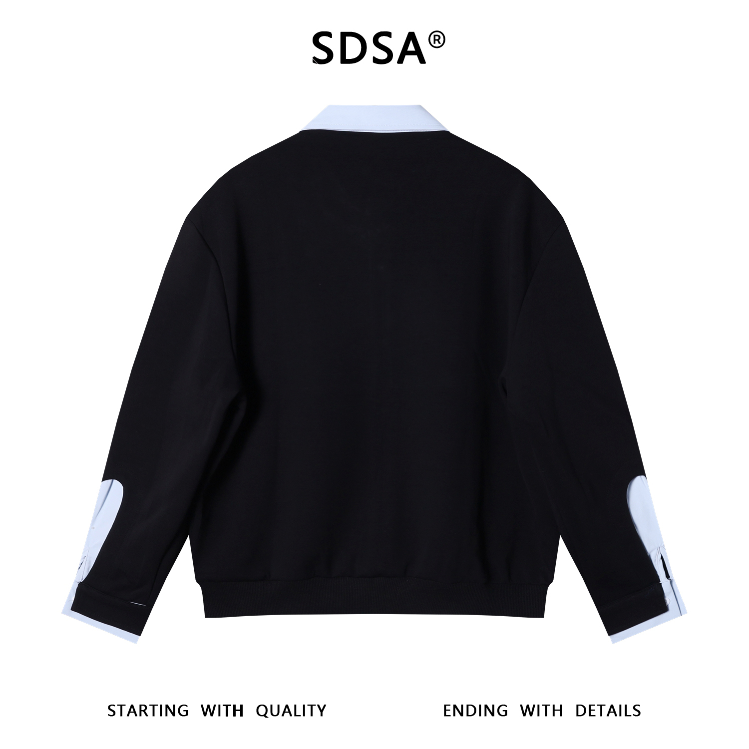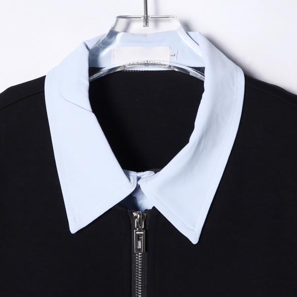 WY694新款男士翻领假两件半拉链时尚设计宽松百搭日常长袖套头