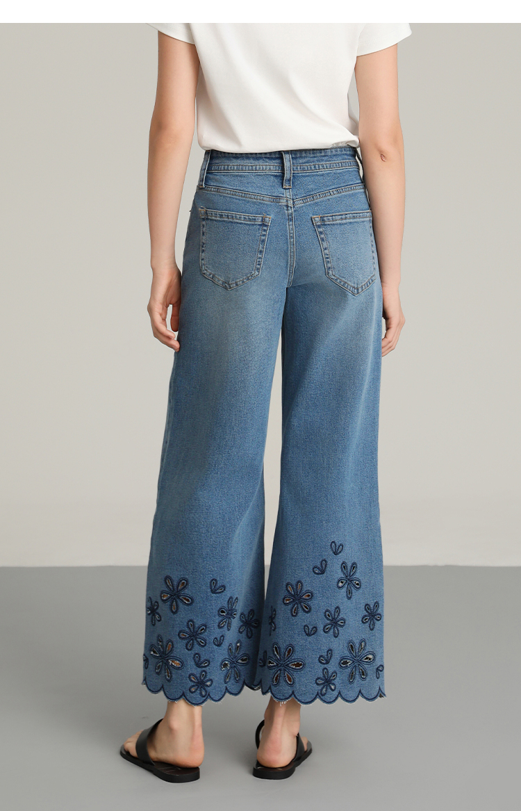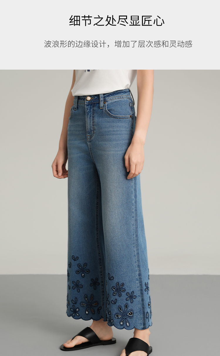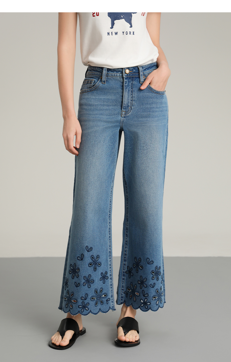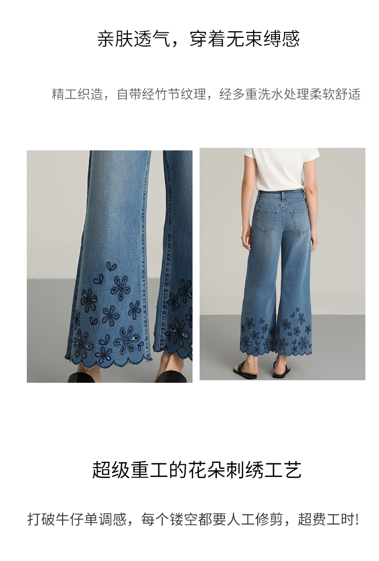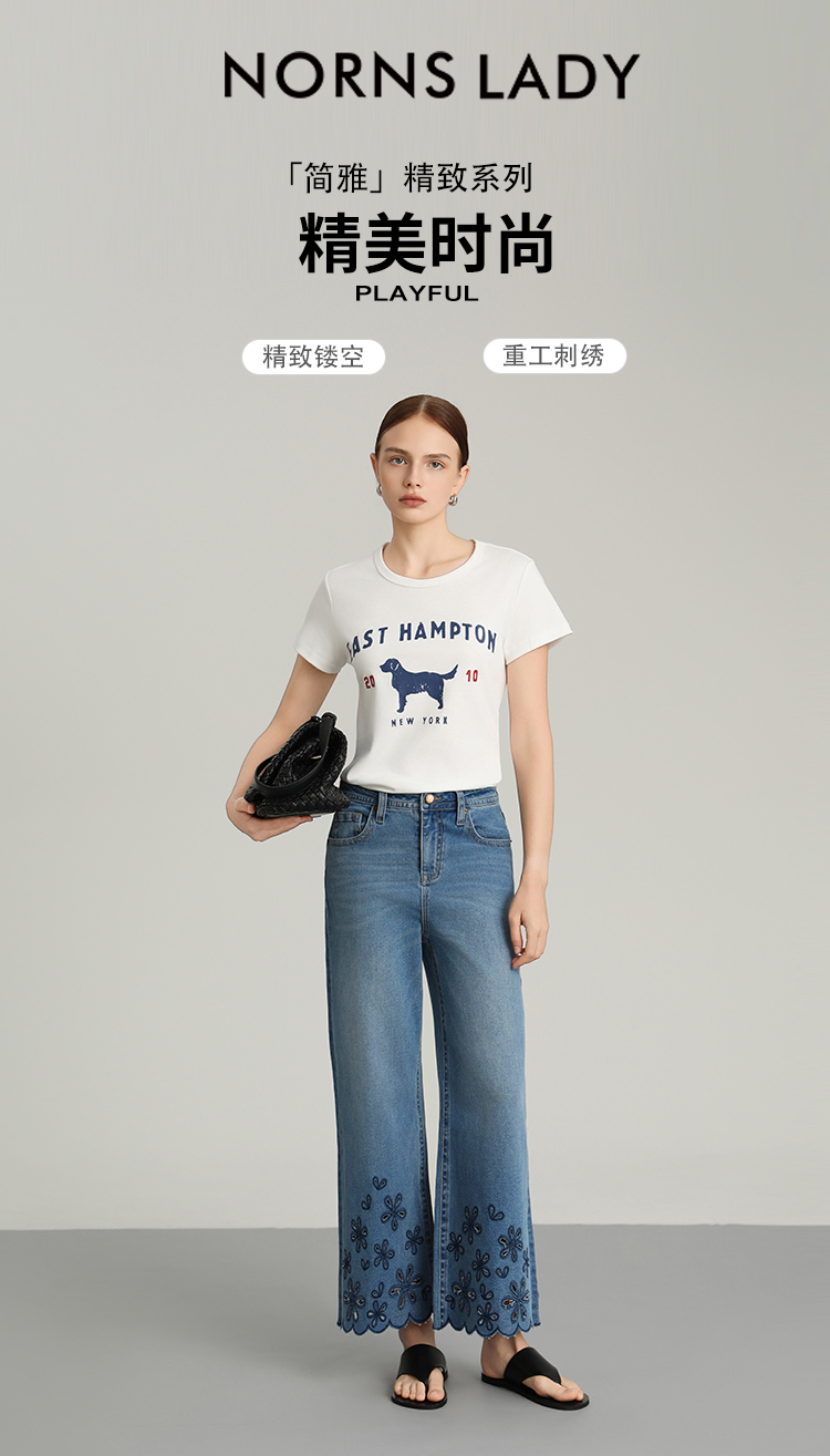 NORNS LADY诺恩 夏季新款"花朵"刺绣波浪边裤子复古休闲长裤牛仔裤T25KK04323【清仓不退不换】