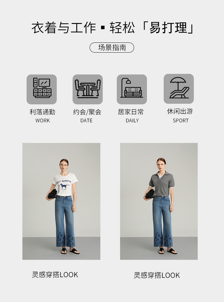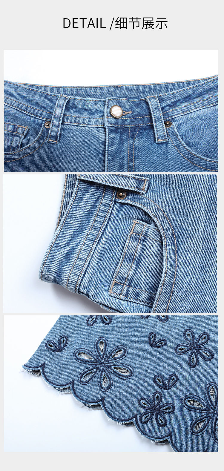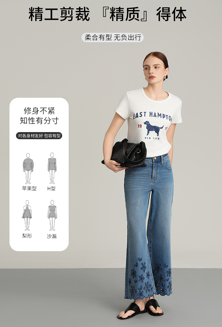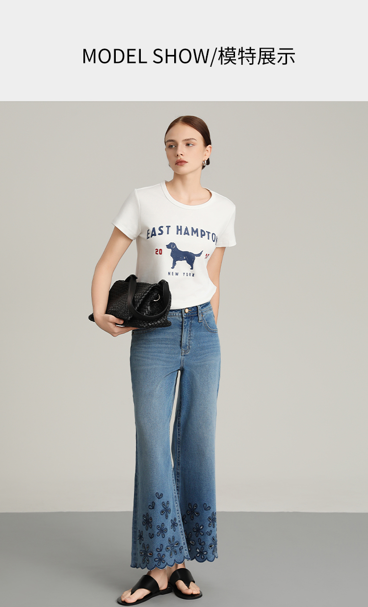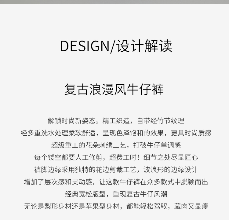 NORNS LADY诺恩 夏季新款"花朵"刺绣波浪边裤子复古休闲长裤牛仔裤T25KK04323【清仓不退不换】