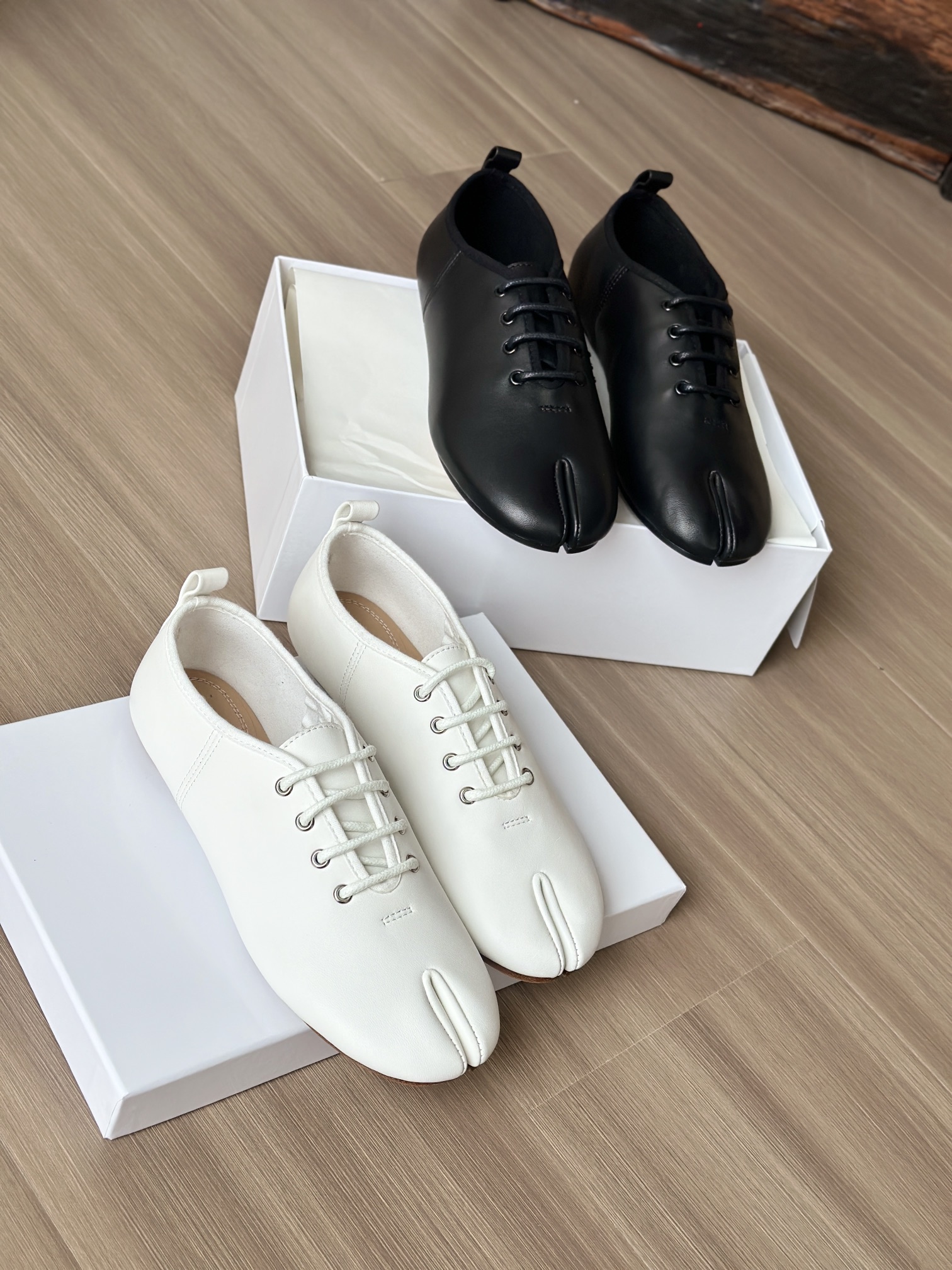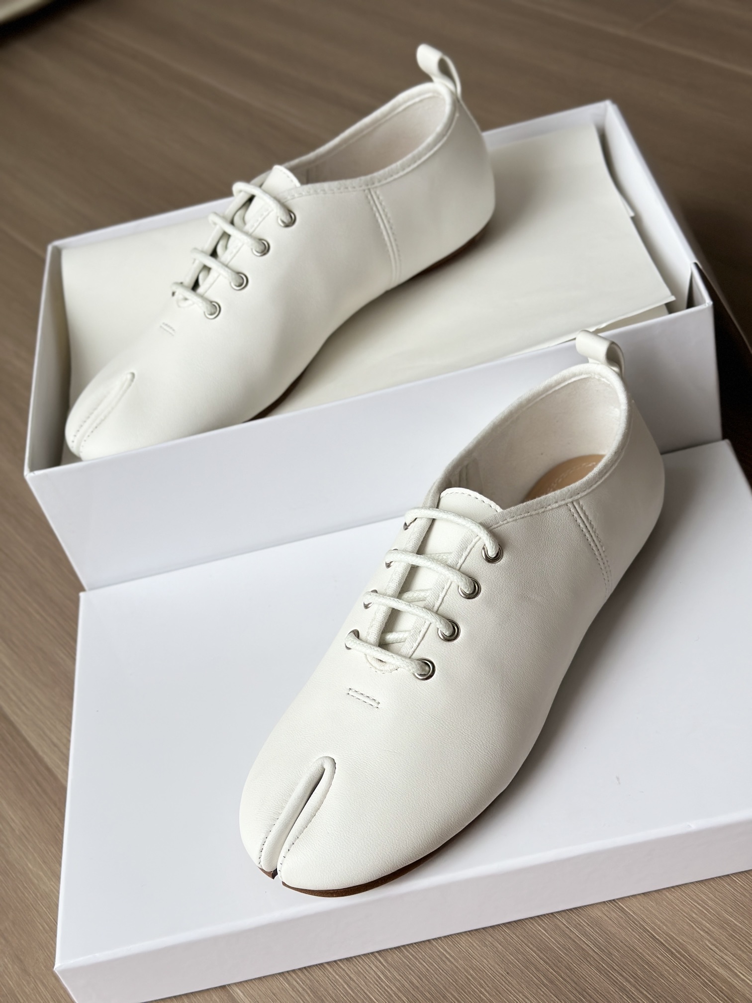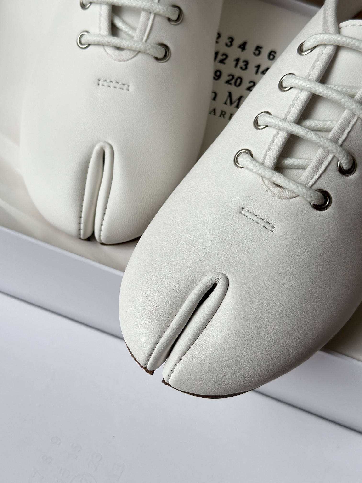 鞋头是斜头搭配系带款式,自带先锋小众的辨识度,风格独特不撞款。鞋面是细腻羊皮,细节处显高级! 低帮系带的简约廓形,搭配扁平的蜡质鞋带,鞋身无多余装饰,鞋盒印有品牌标志性的数字编码,强化品牌辨识度!