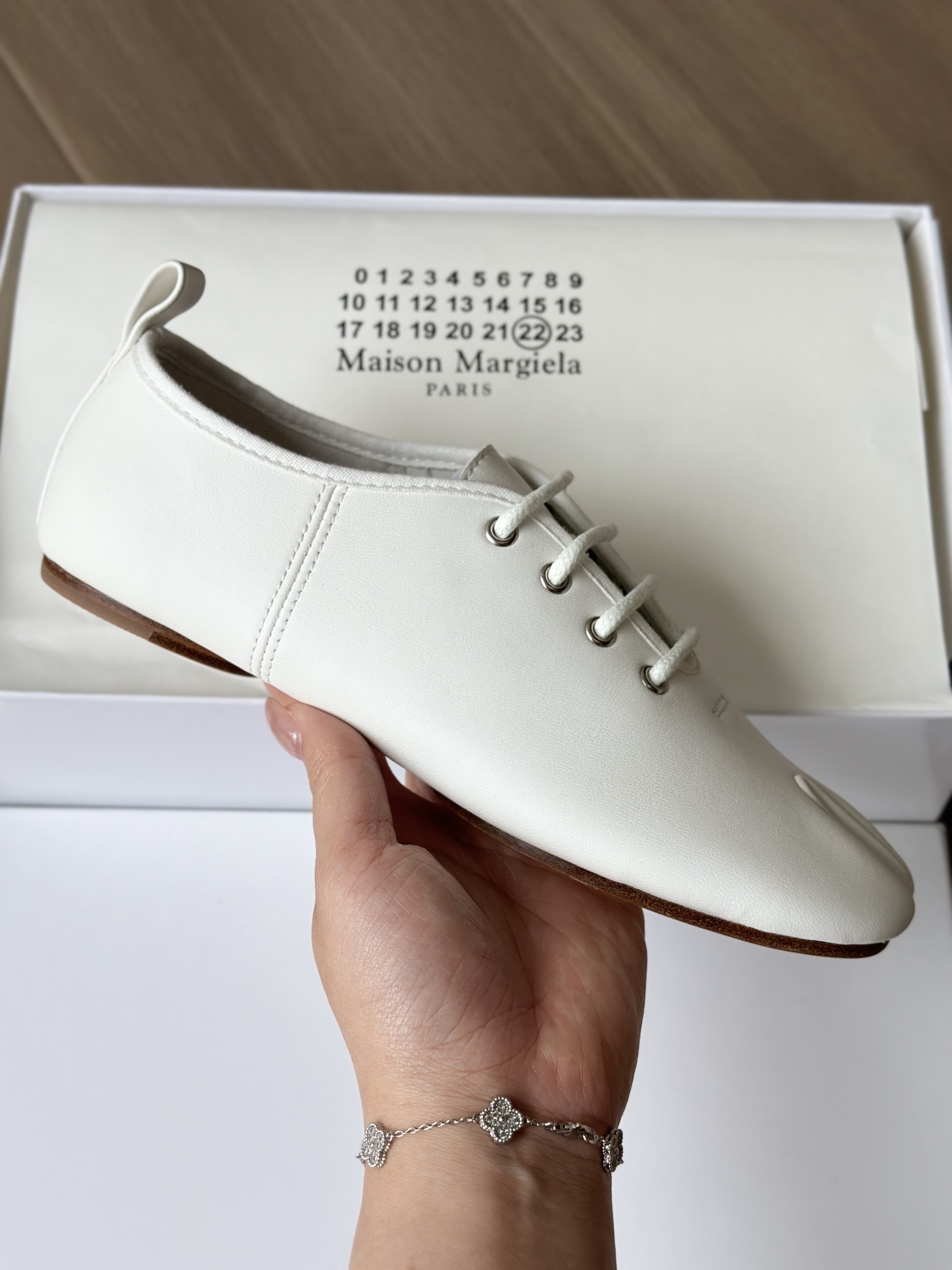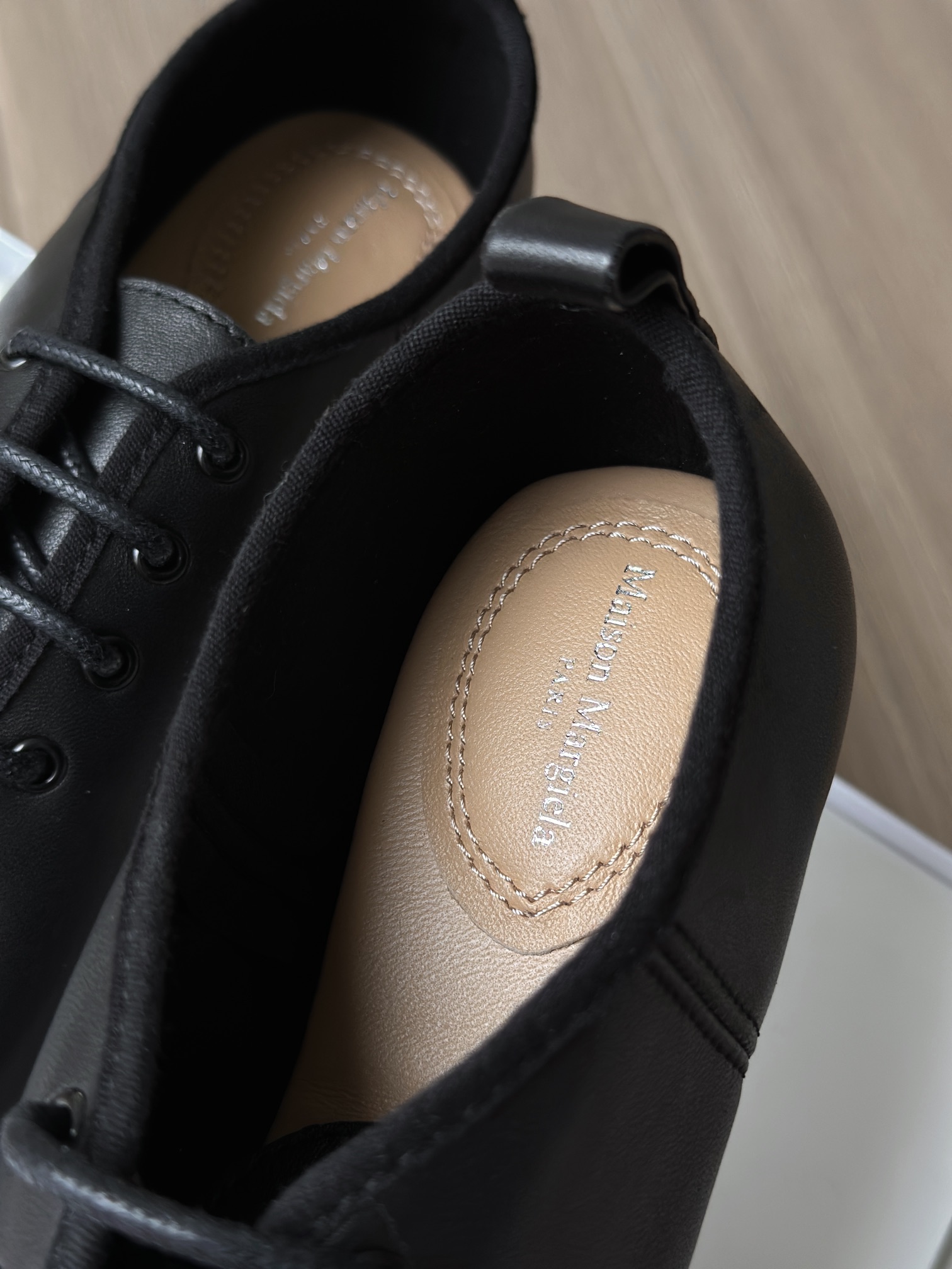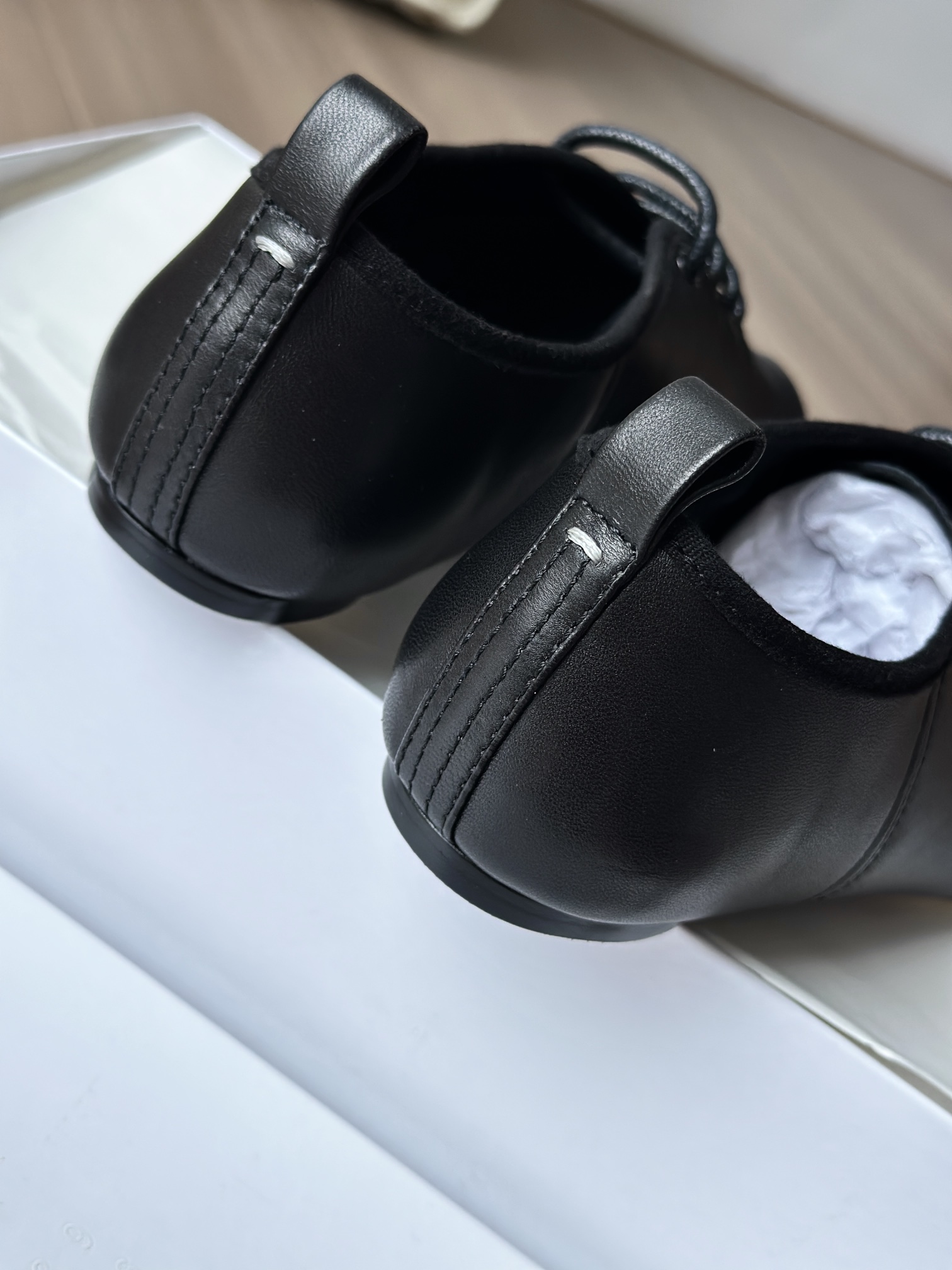 鞋头是斜头搭配系带款式,自带先锋小众的辨识度,风格独特不撞款。鞋面是细腻羊皮,细节处显高级! 低帮系带的简约廓形,搭配扁平的蜡质鞋带,鞋身无多余装饰,鞋盒印有品牌标志性的数字编码,强化品牌辨识度!