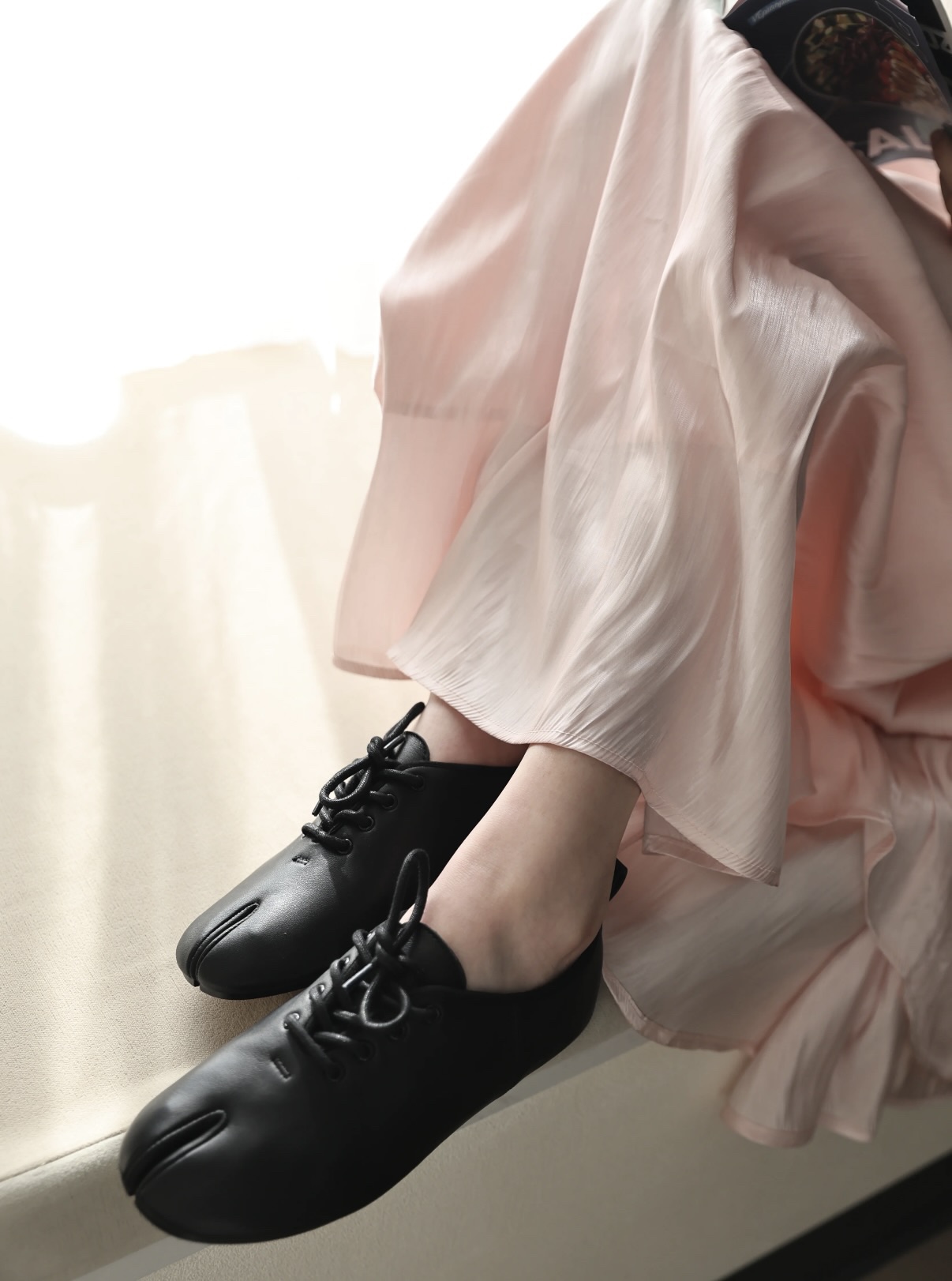 兼具极简与先锋感,能搭极简风西装、复古牛仔裤、小众设计感连衣裙,适配先锋、慵懒、轻熟等多种风格,平底鞋型,脚感舒适,鞋型贴合脚型,日常通勤或休闲场合都能穿。