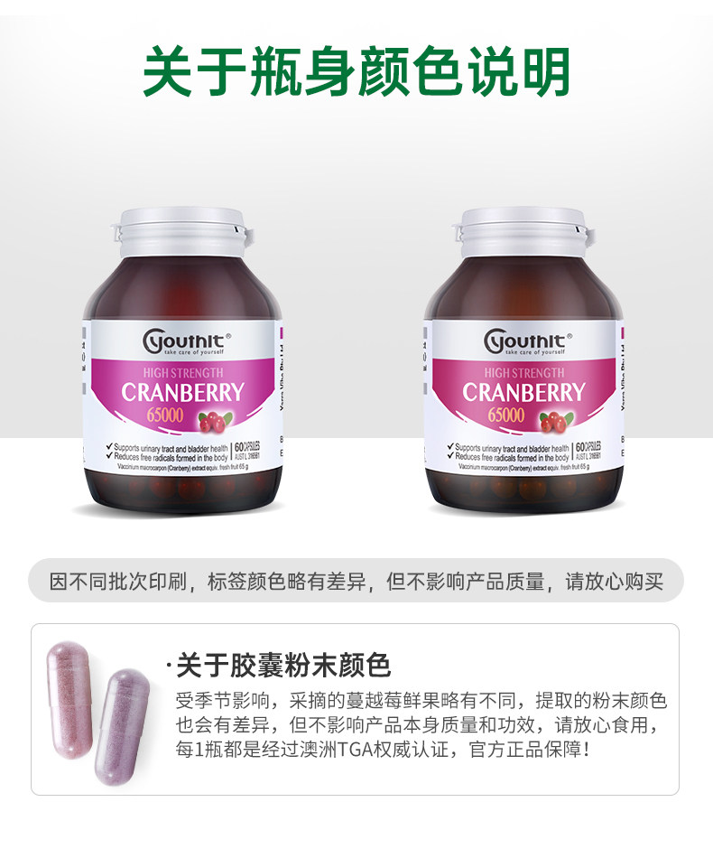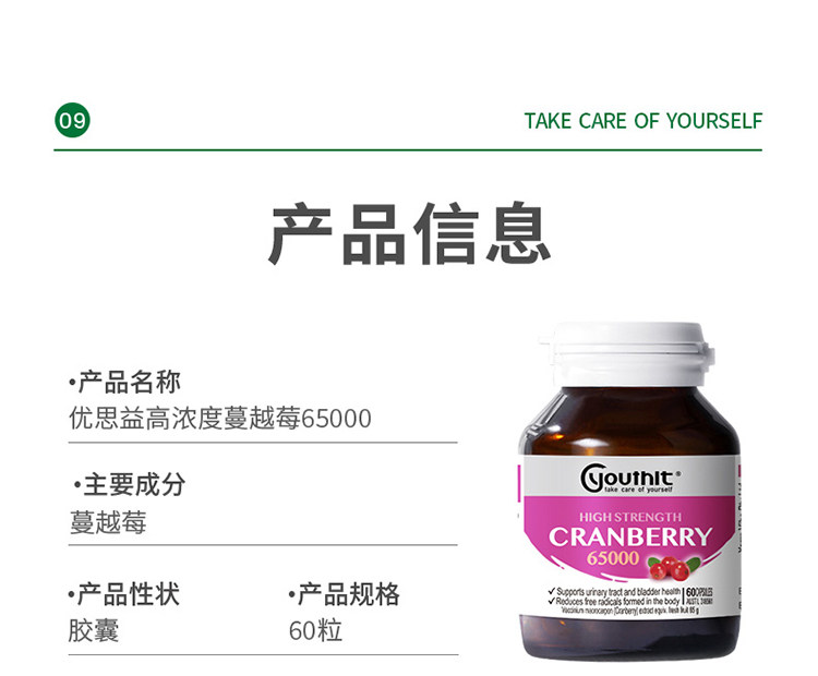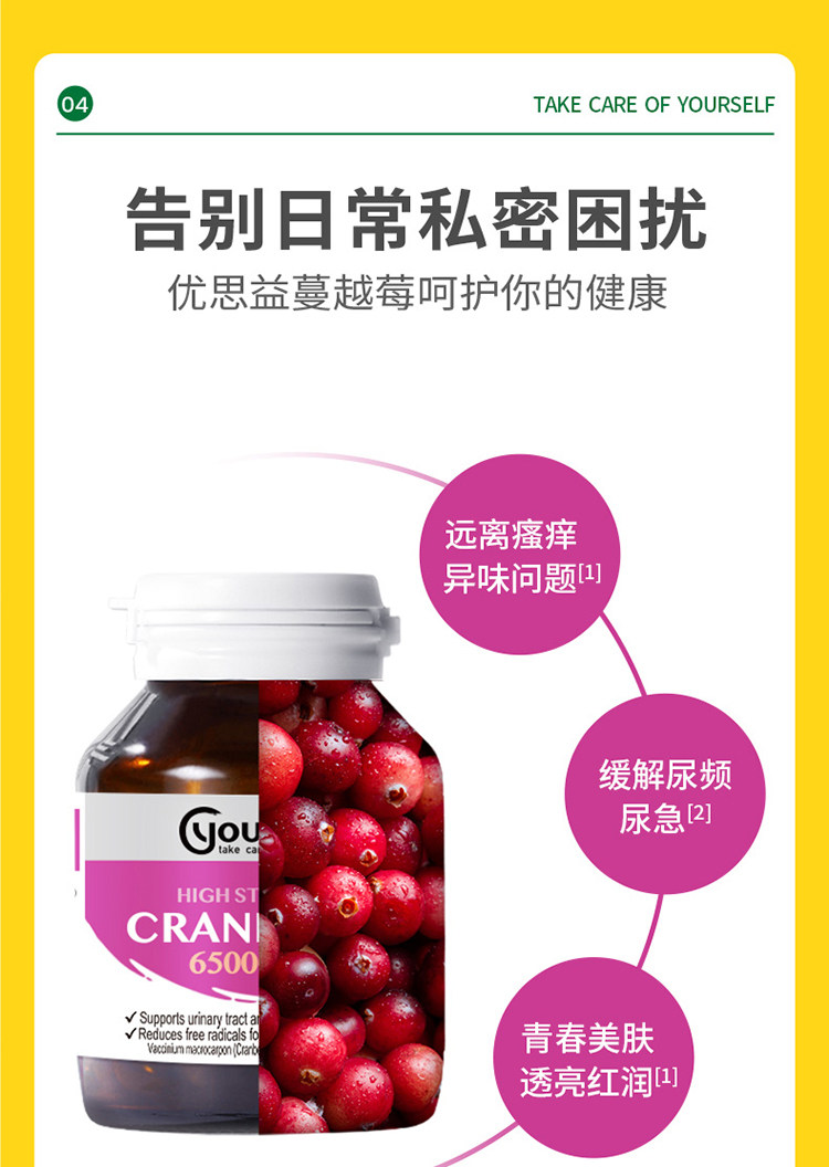 澳洲进口优思益高浓度65000蔓越莓精华胶囊 呵护女性健康2瓶