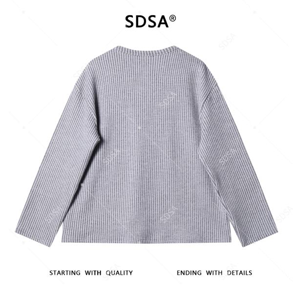 SDSA秋冬新款痞帅男装简约撞色竖纹按扣圆领毛衣百搭套头针织衫