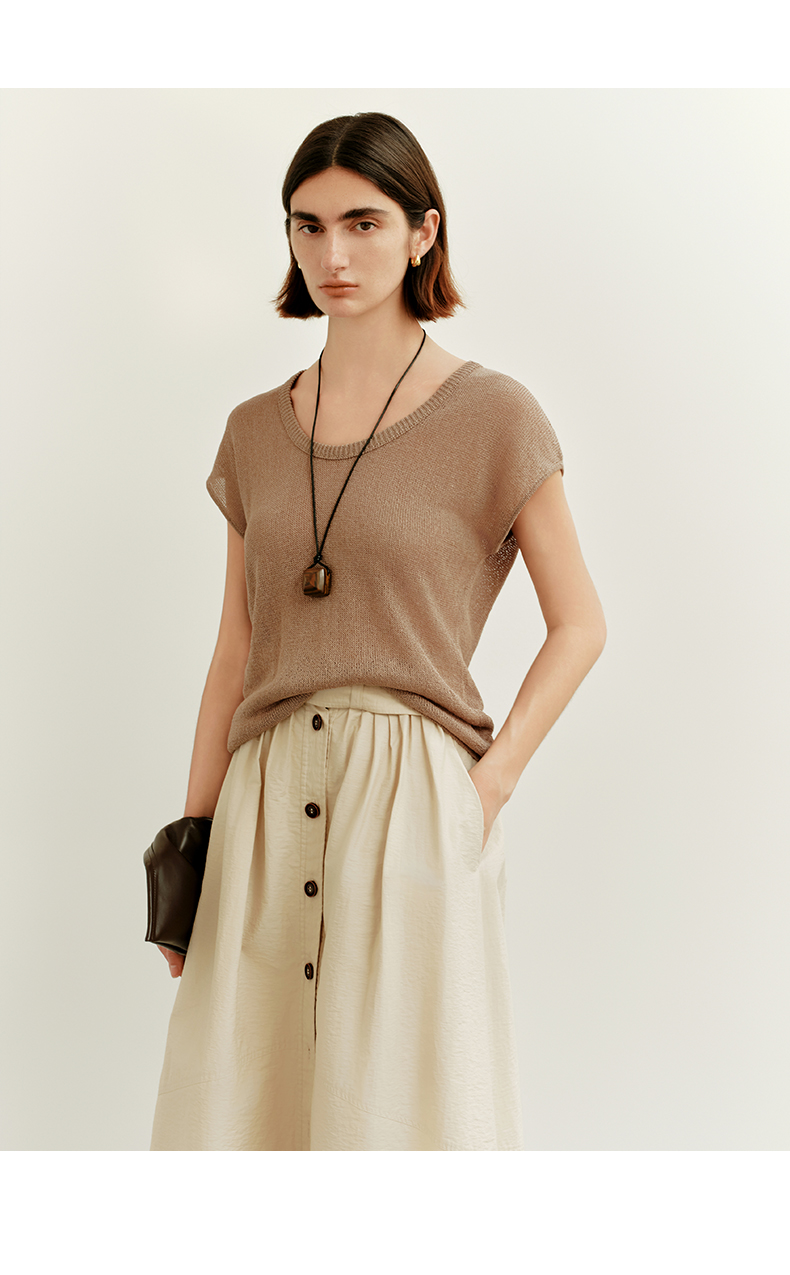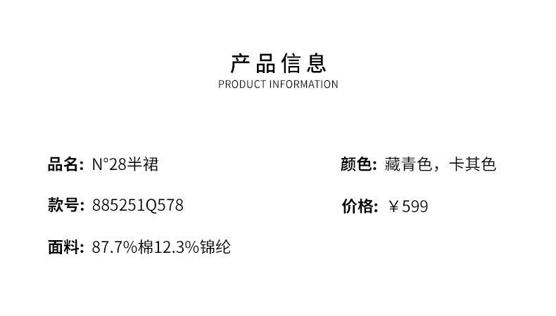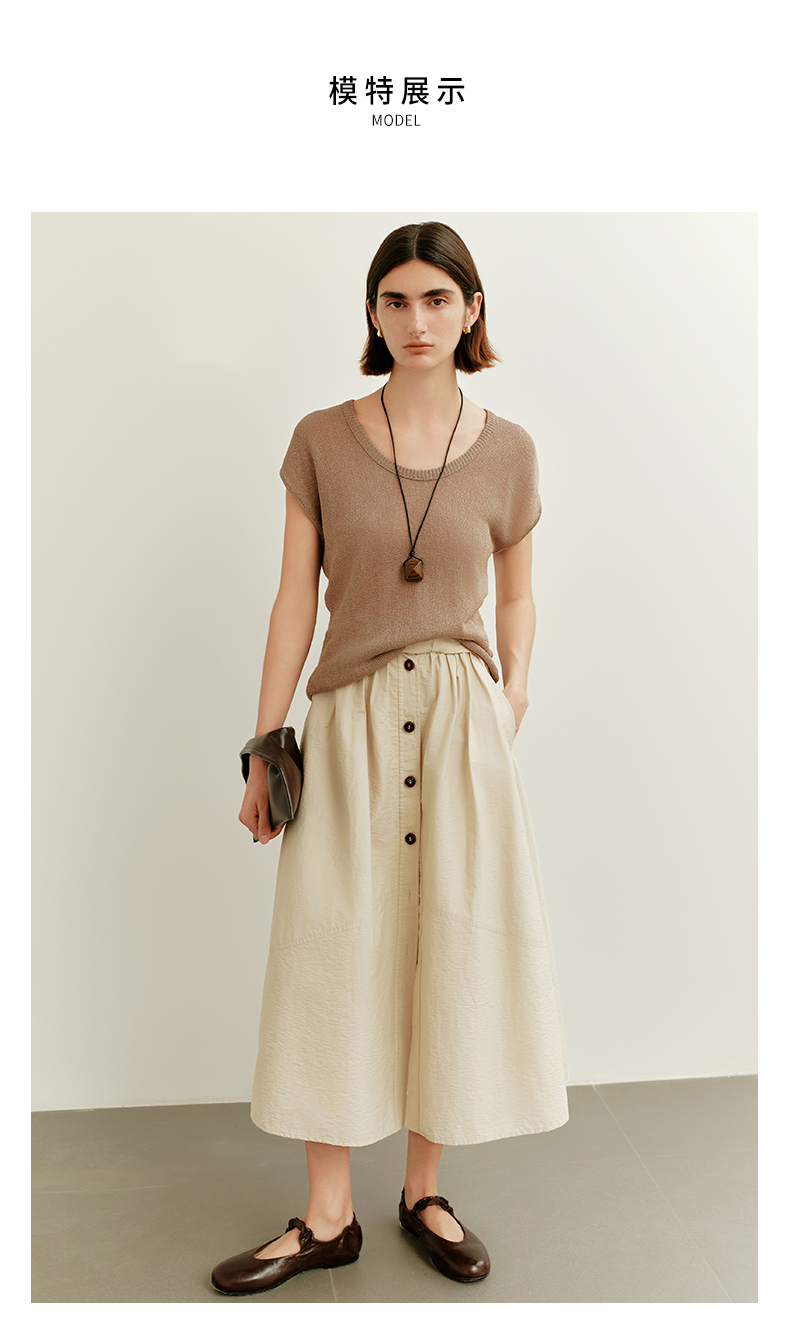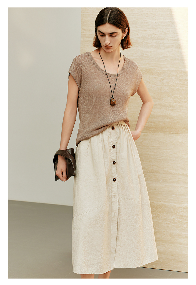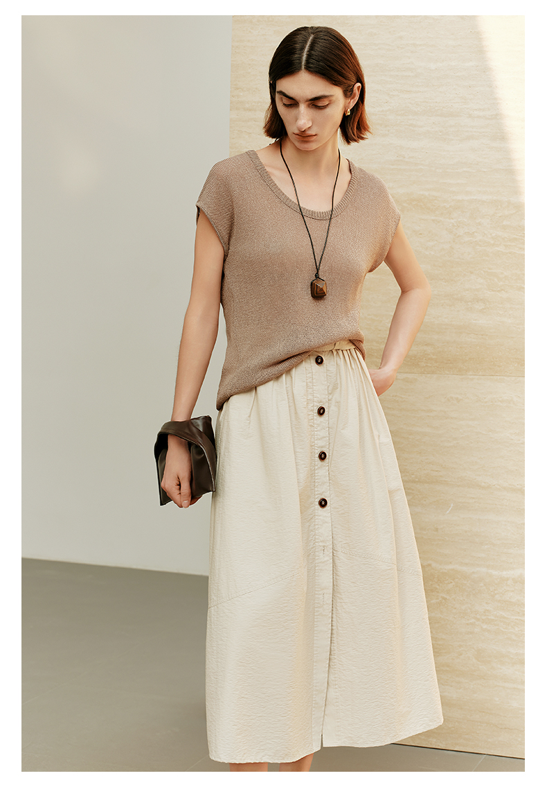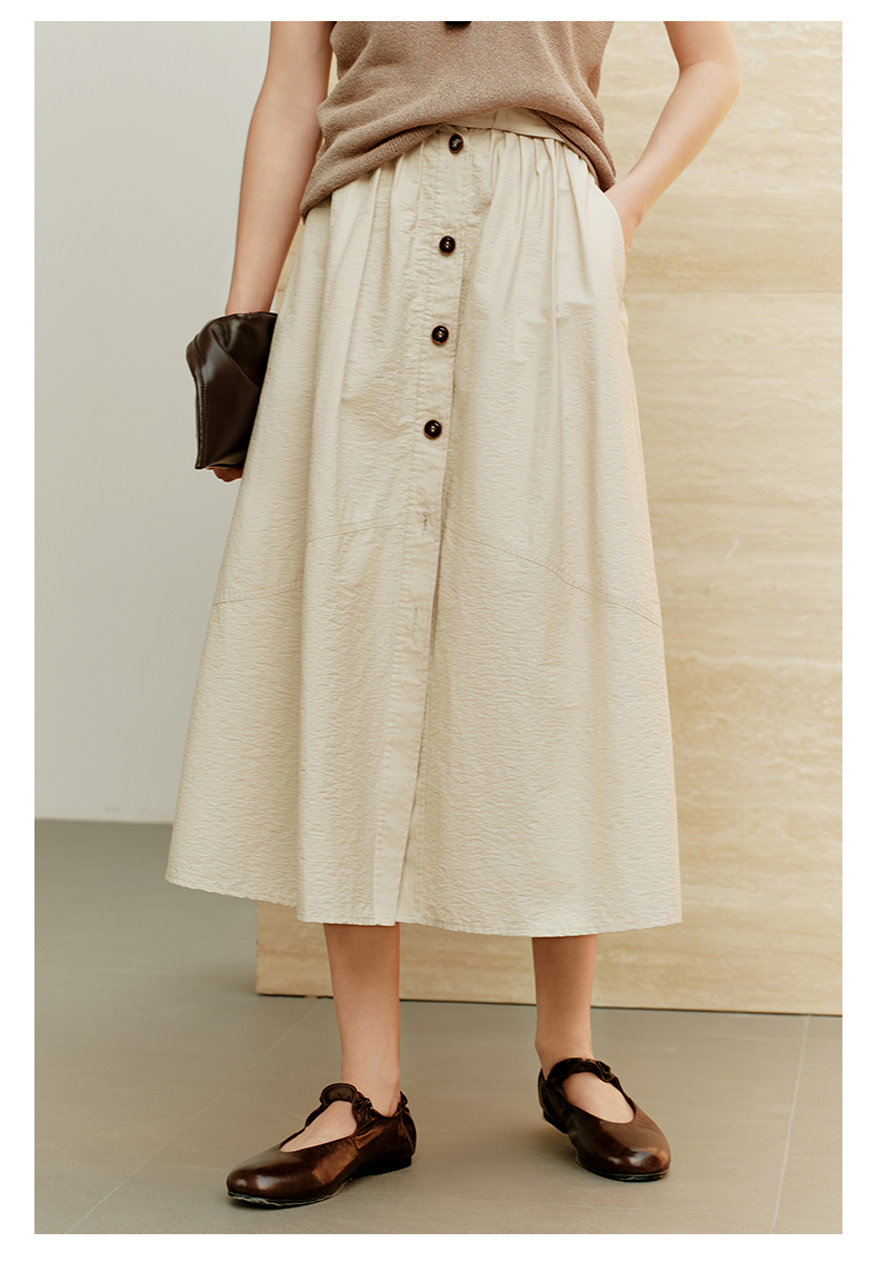 【破价】N°28 夏季2025新款法式设计纽扣半身裙女 中长款轻薄舒适裙子885251Q578