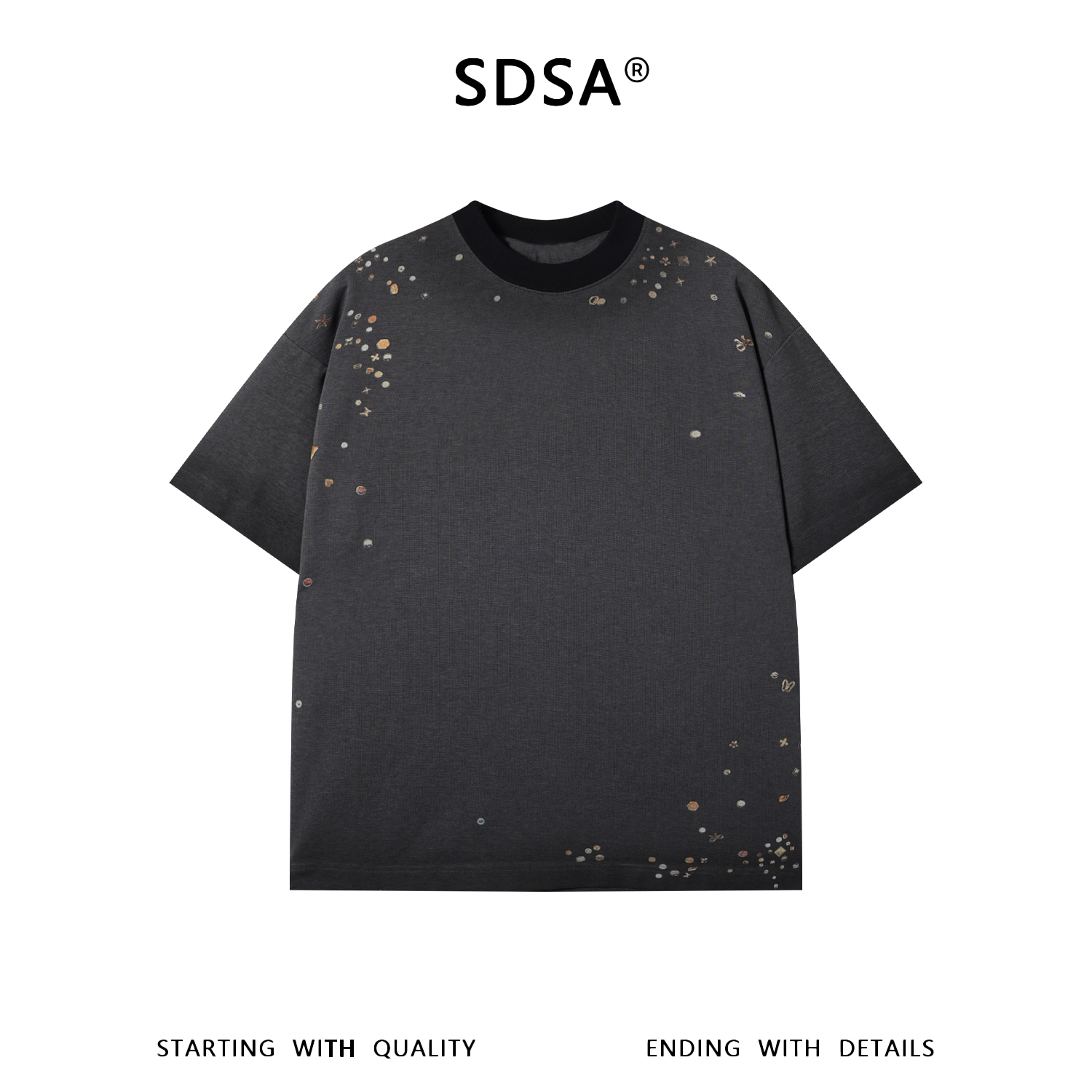 26T281SDSA男装2026新款轻奢潮牌彩色立体花朵装饰设计圆领短袖T恤百搭