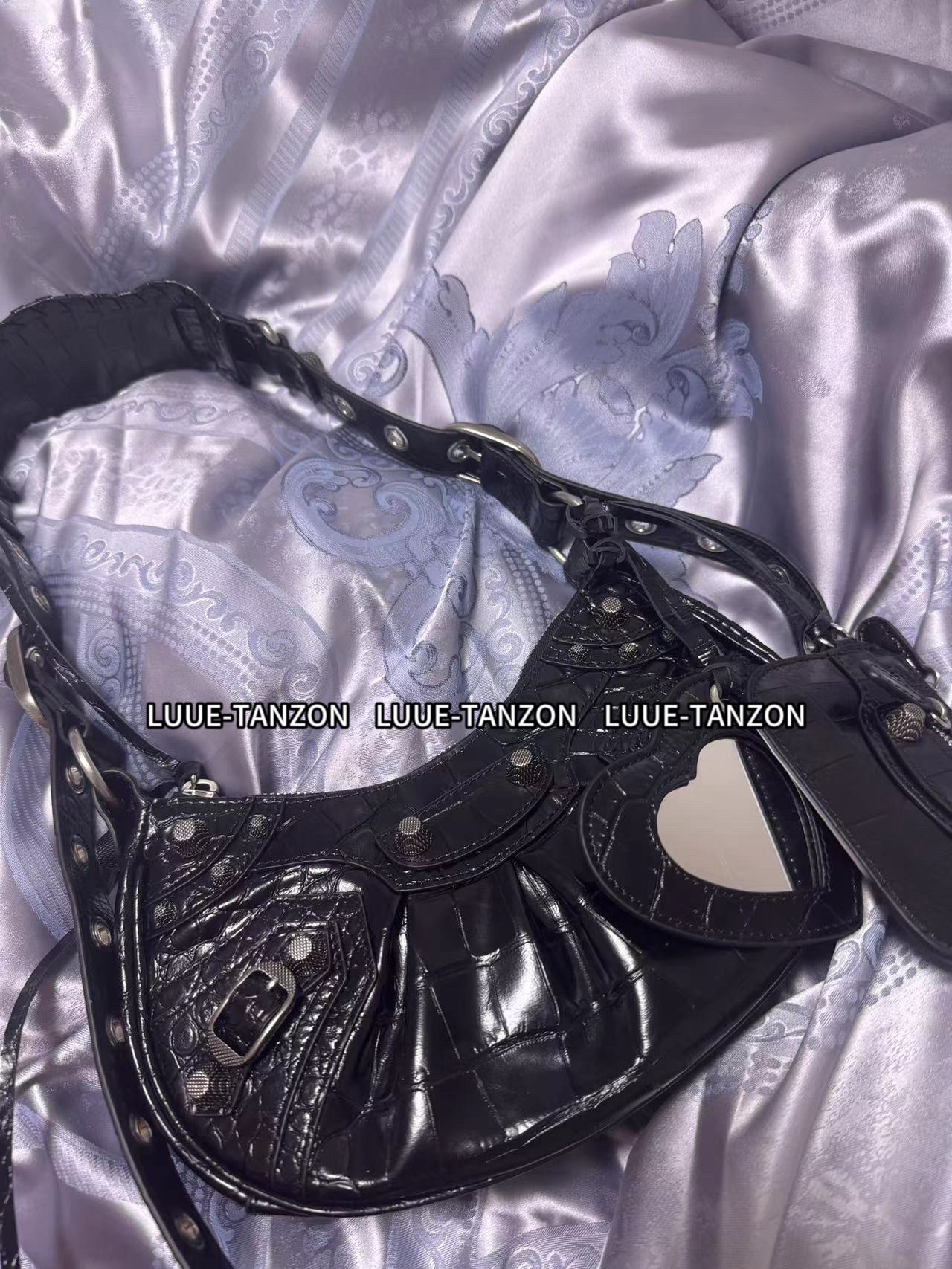 随包配备的小卡包及爱心小镜子很好的中和了铆钉带来的硬朗感,多了一丝丝可爱气息,甜酷女孩必备啦!