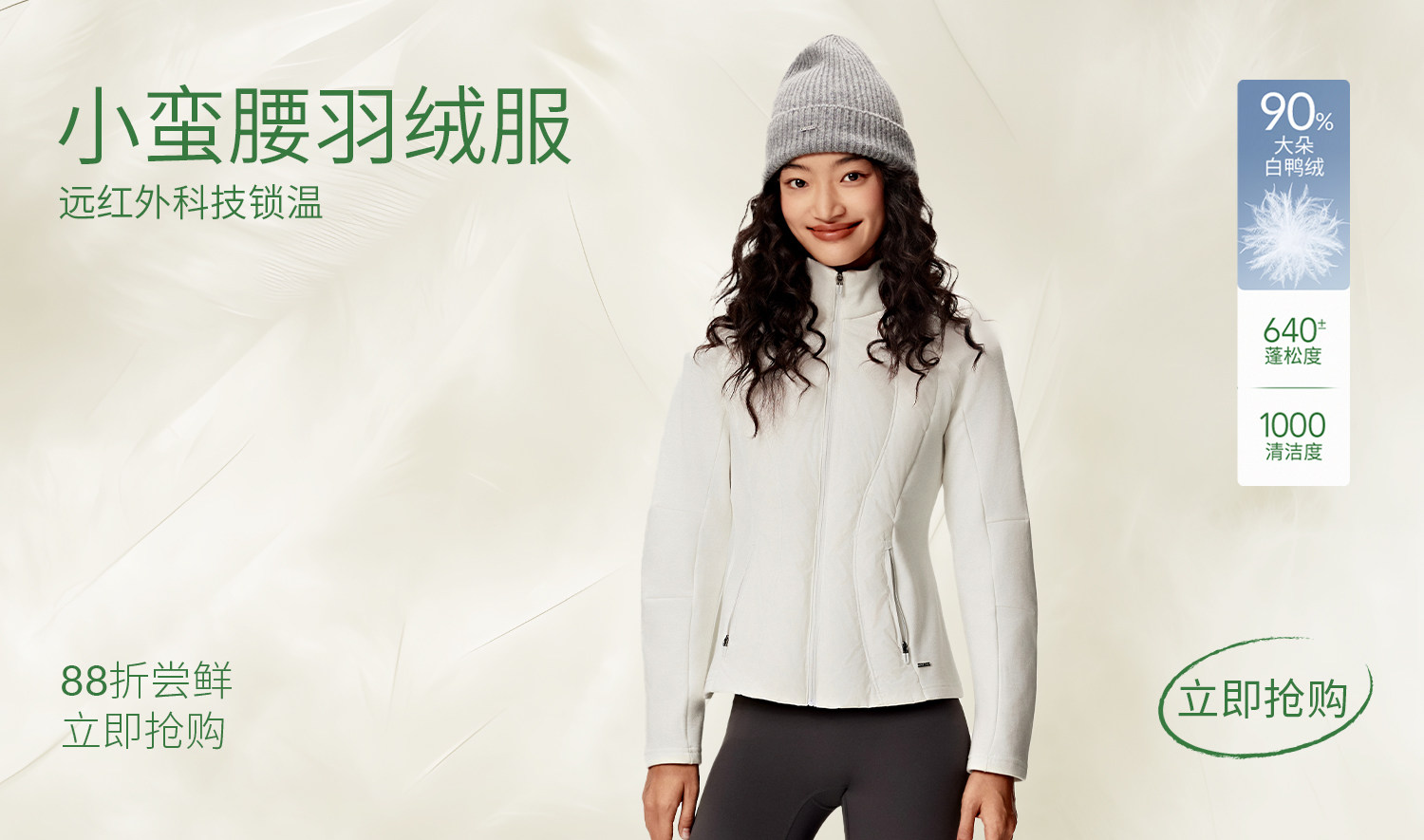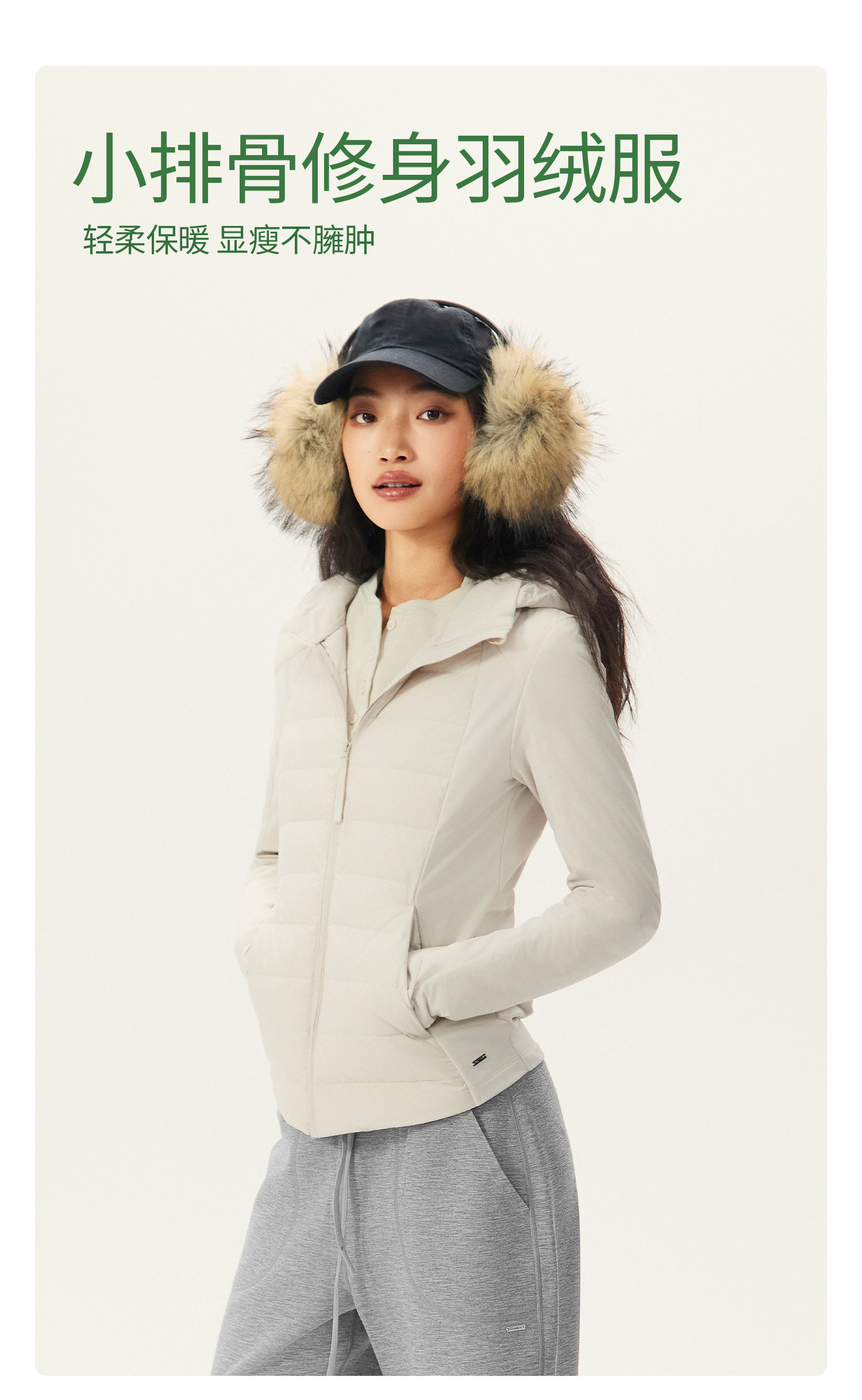 YOTTOY 90白鹅绒小排骨羽绒服女修身防泼水轻薄保暖外套连帽冬季