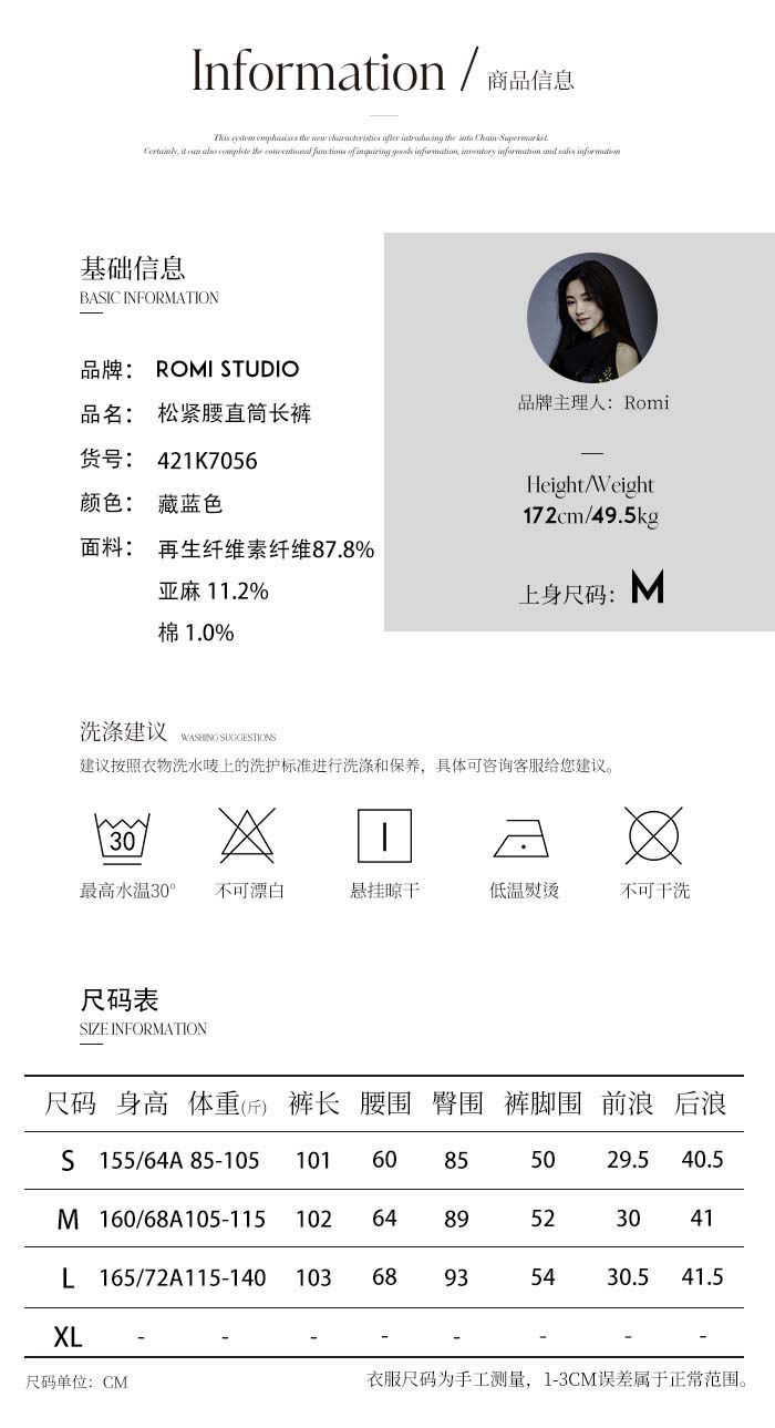 ROMI STUDIO“简练有型”桑蚕丝棉碳素磨毛舒适直筒长裤 RWCWXG5962