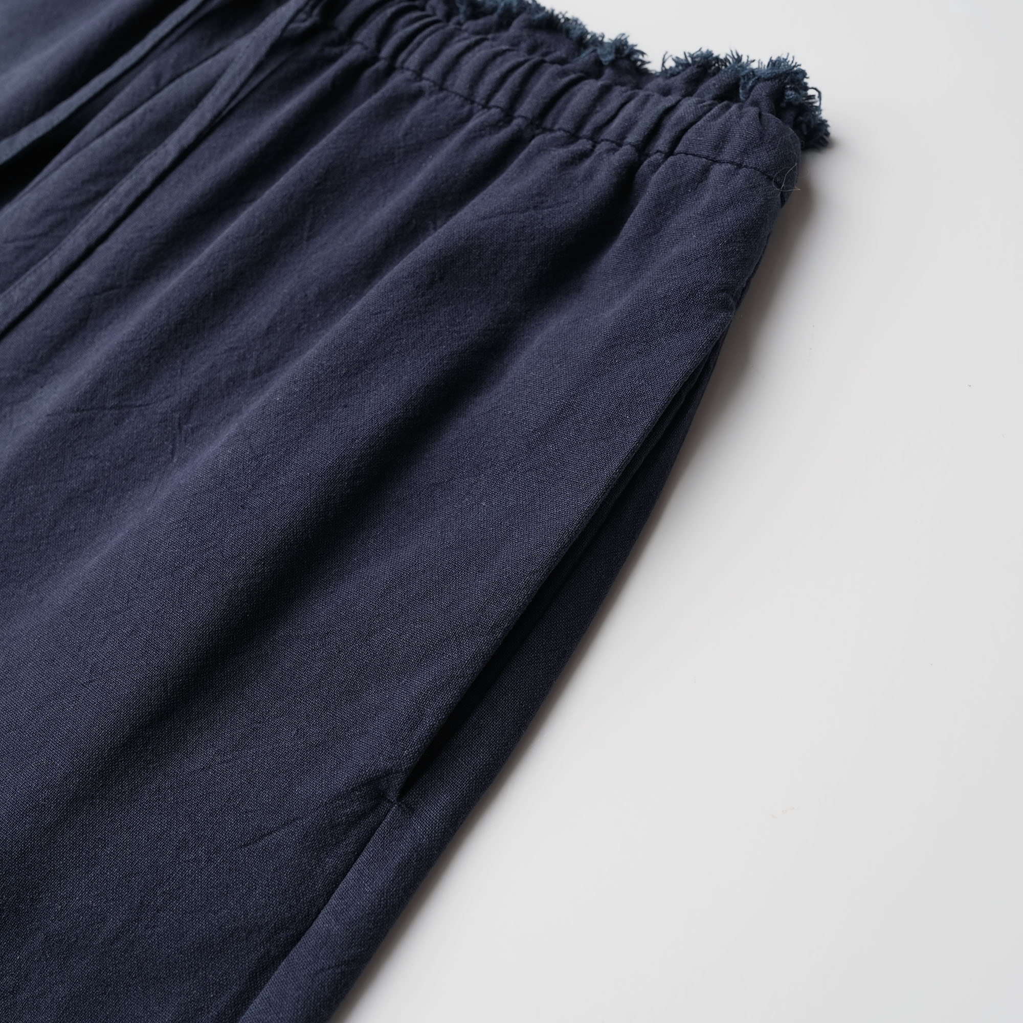 ROMI STUDIO“自我诠释”毛边腰口洗水磨毛拼接直筒休闲裤 421K7056