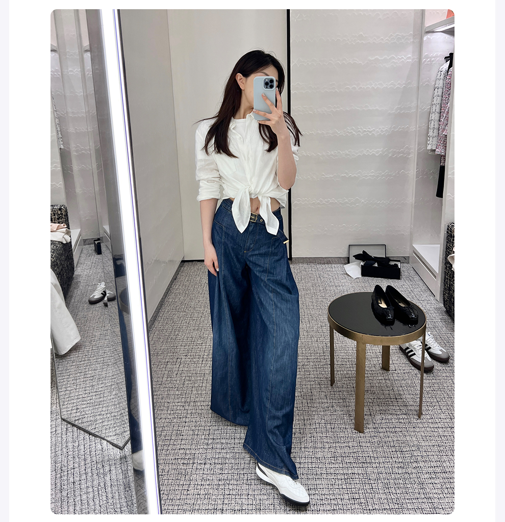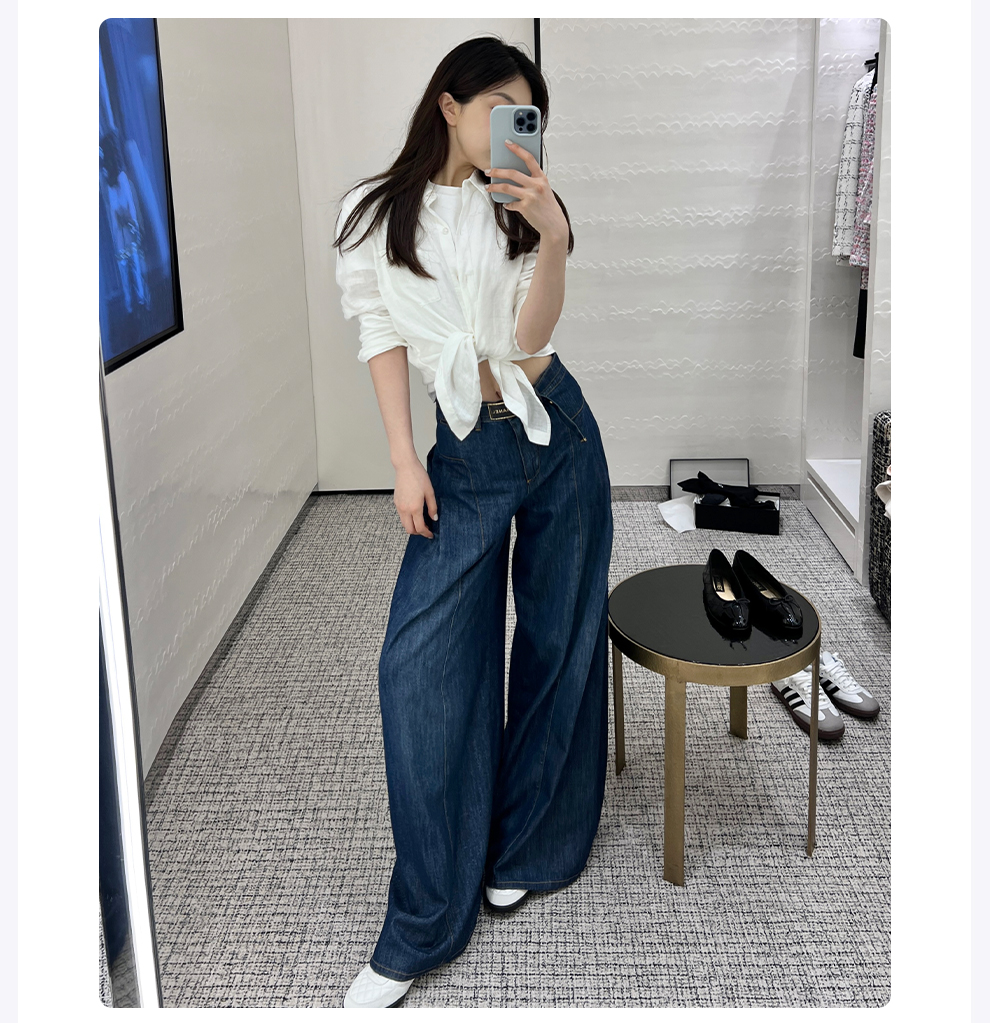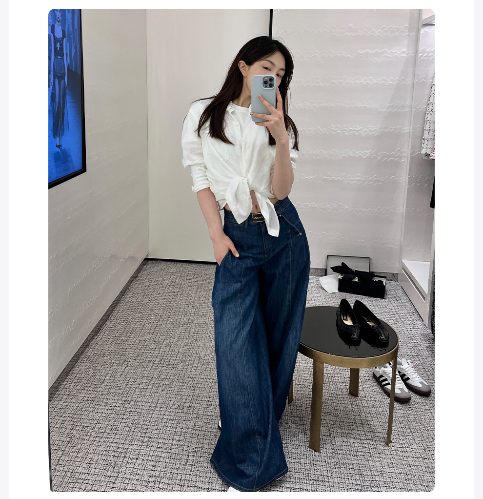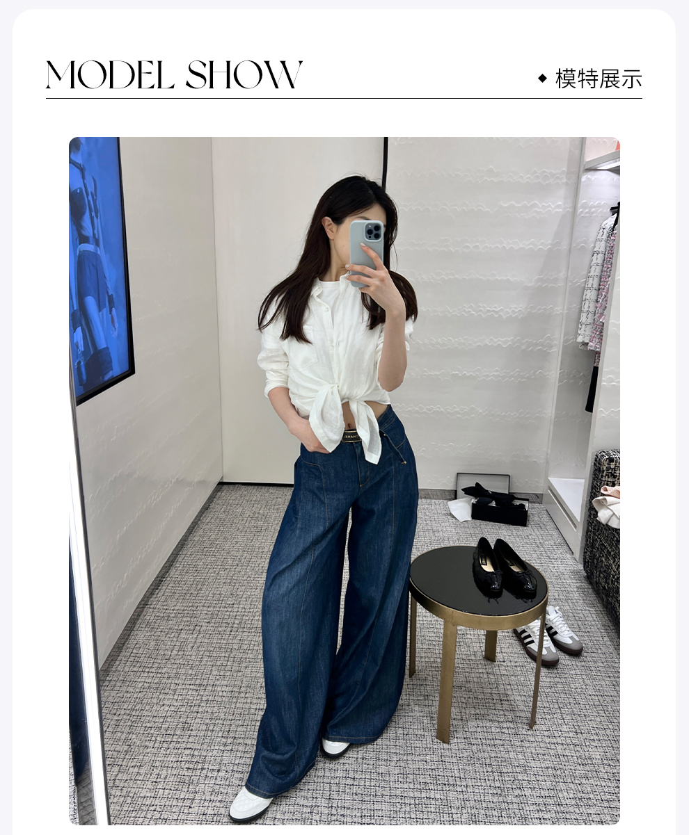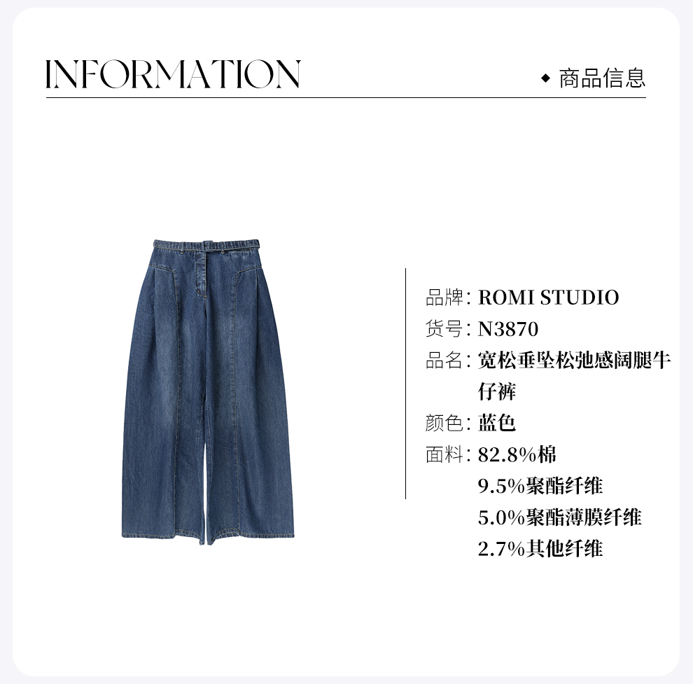 ROMI STUDIO“复古简约”高腰宽松舒适垂坠松弛感阔腿牛仔裤N3870