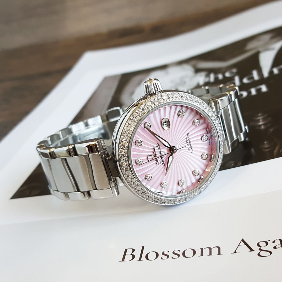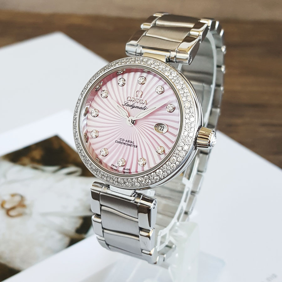 表盘材质 | 粉色珍珠贝母表盘;镶嵌钻石刻度 |