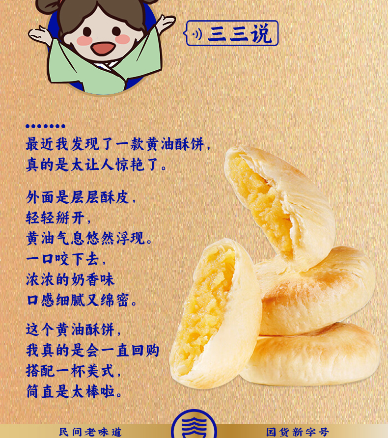 【绮】三关六码头非遗黄油酥饼180g*3