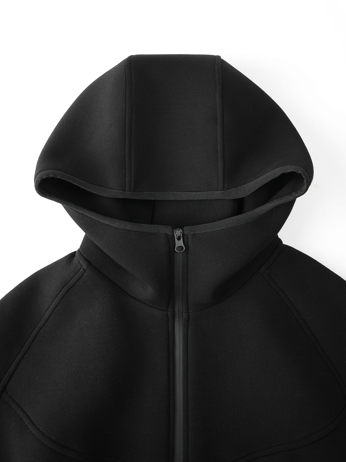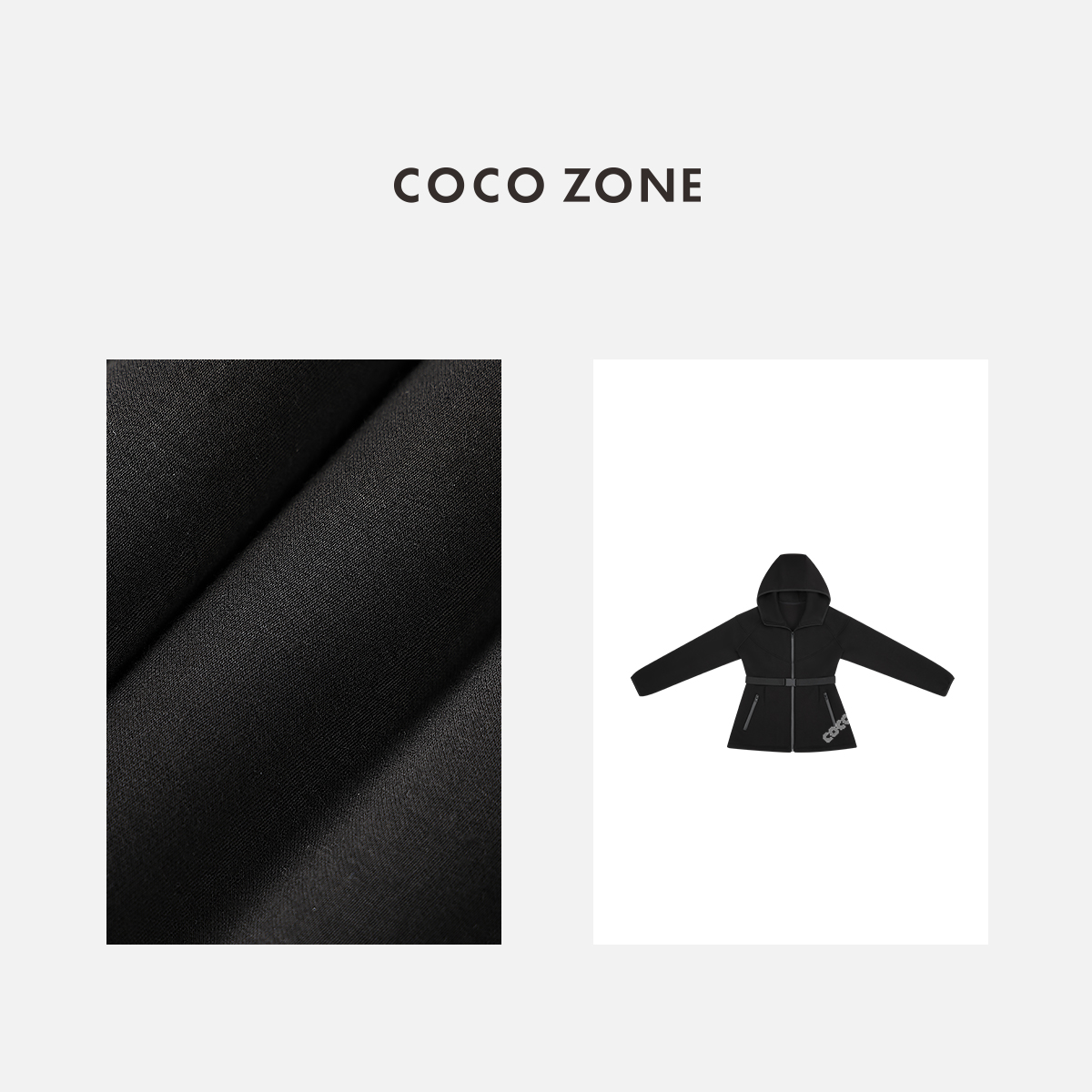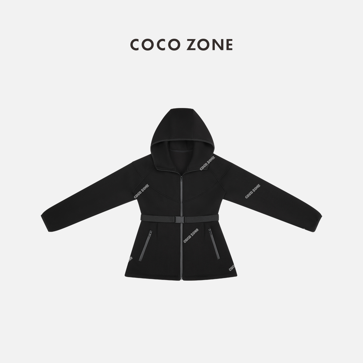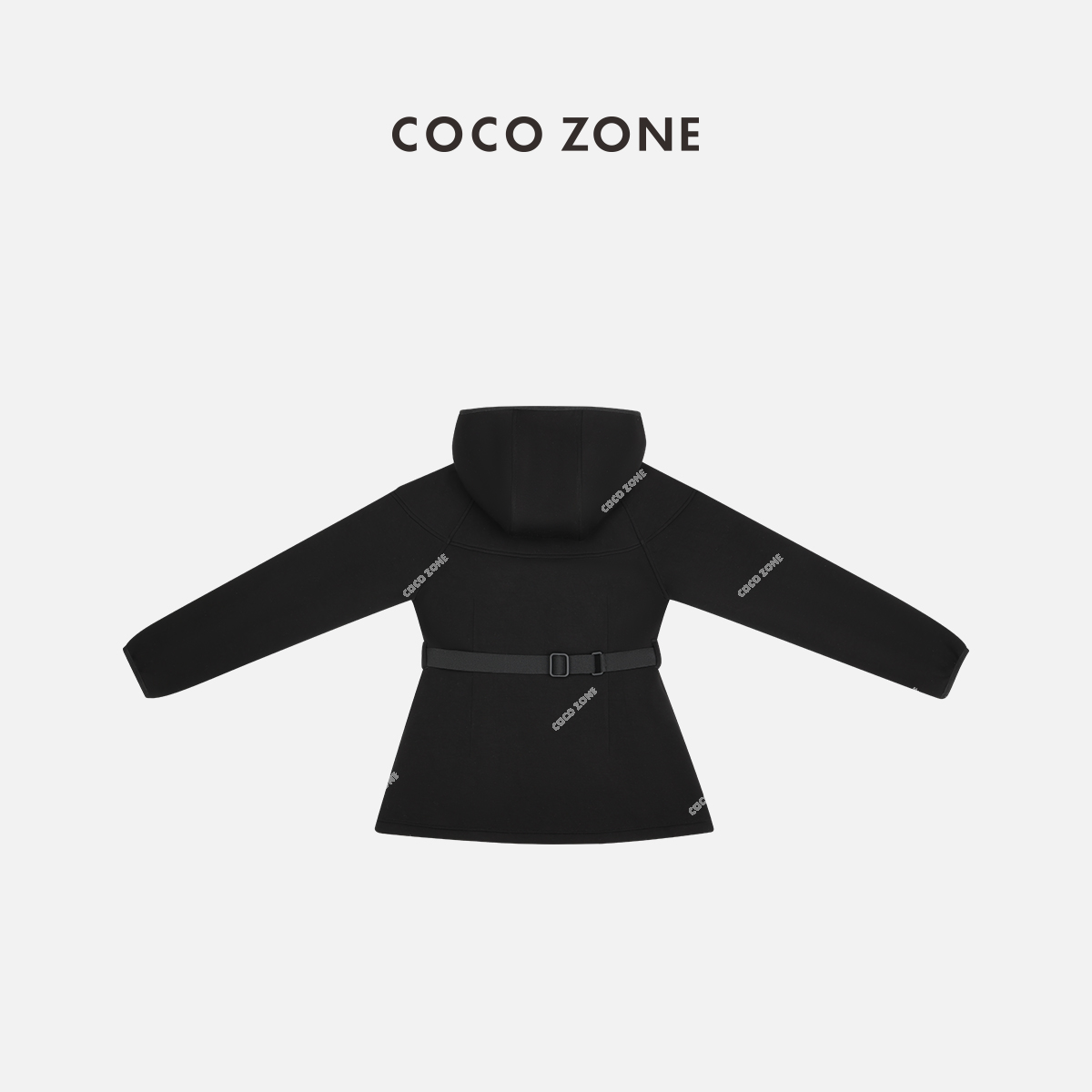 COCO ZONE 连帽空气层显瘦百搭黑色收腰外套24C10124