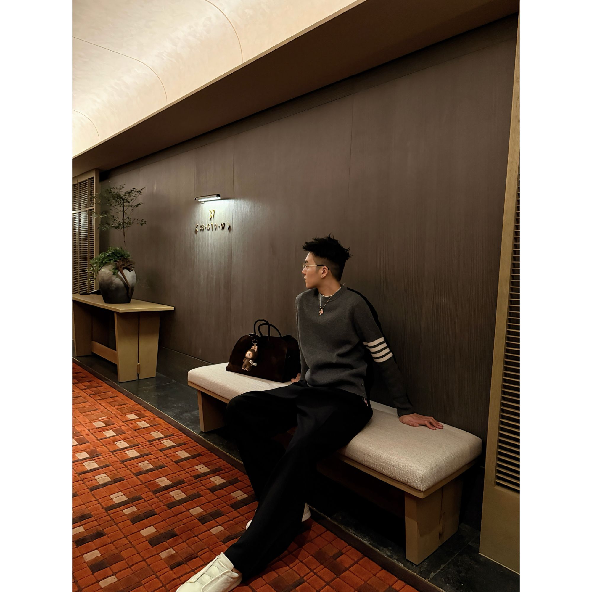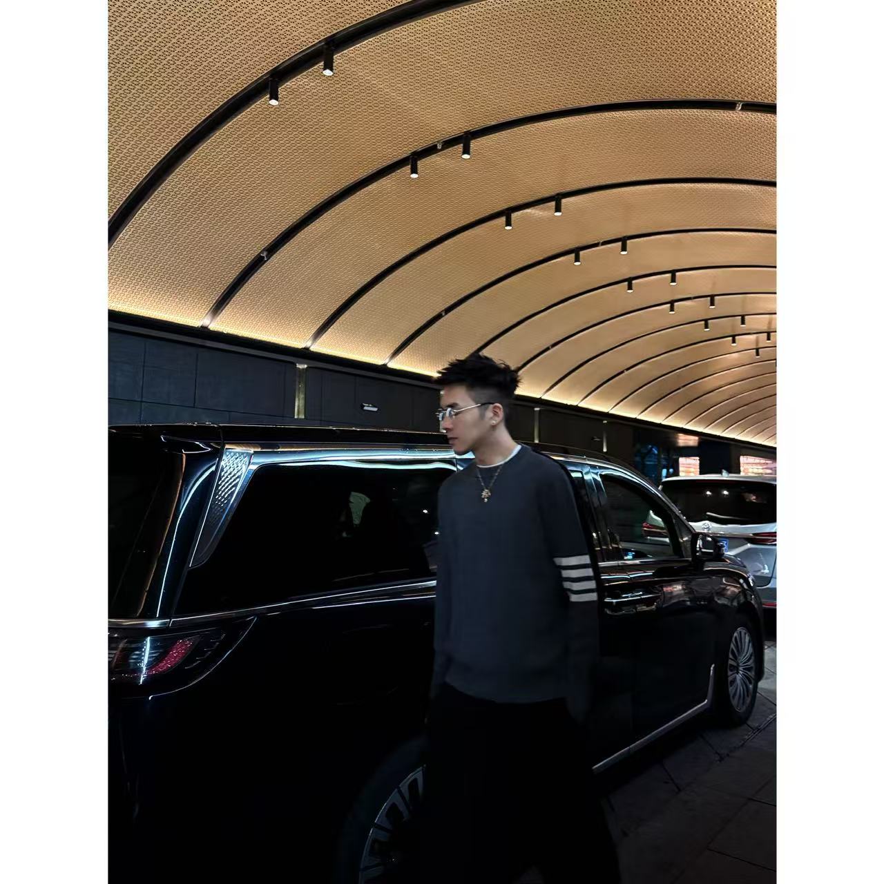 Team Yang-秋冬新品棉羊毛加厚拼色下摆拼接设计感老钱毛衣男9085