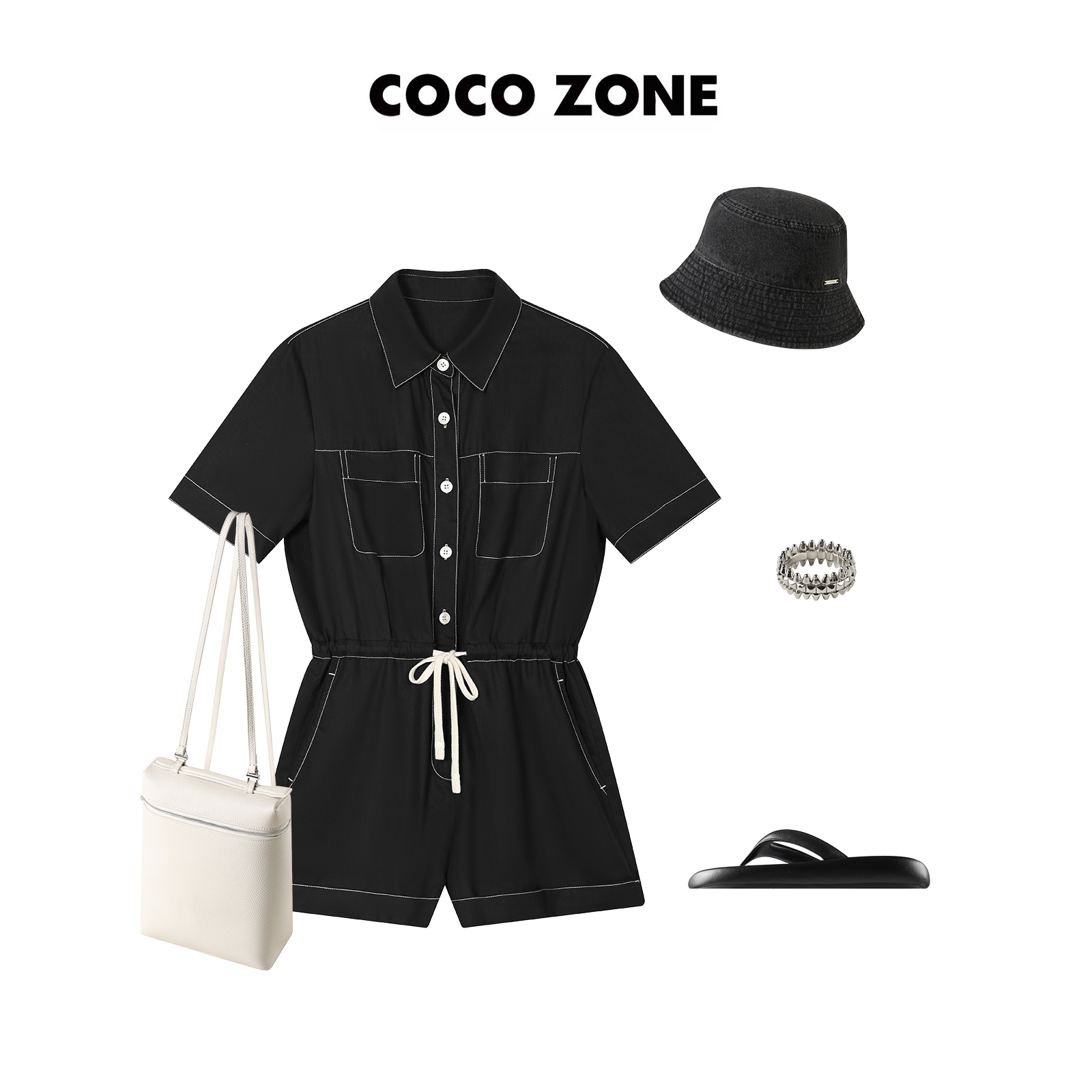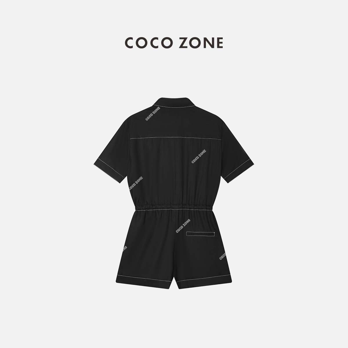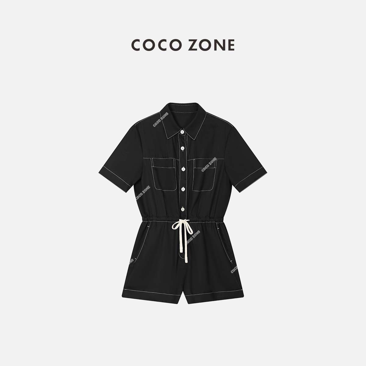 COCO ZONE 收腰短袖连体撞色腰绳中长裙 23C18794