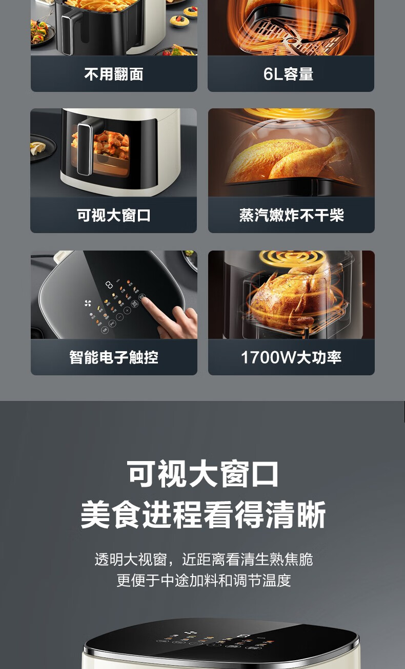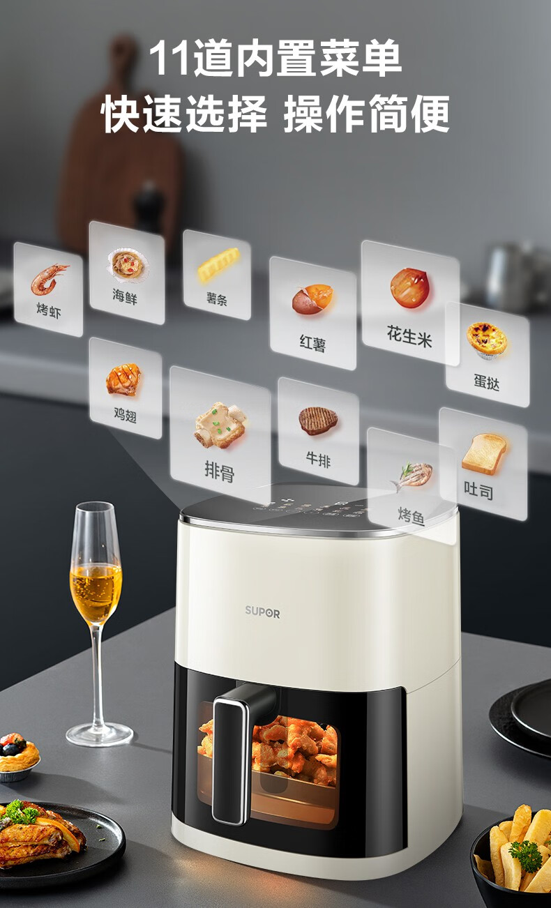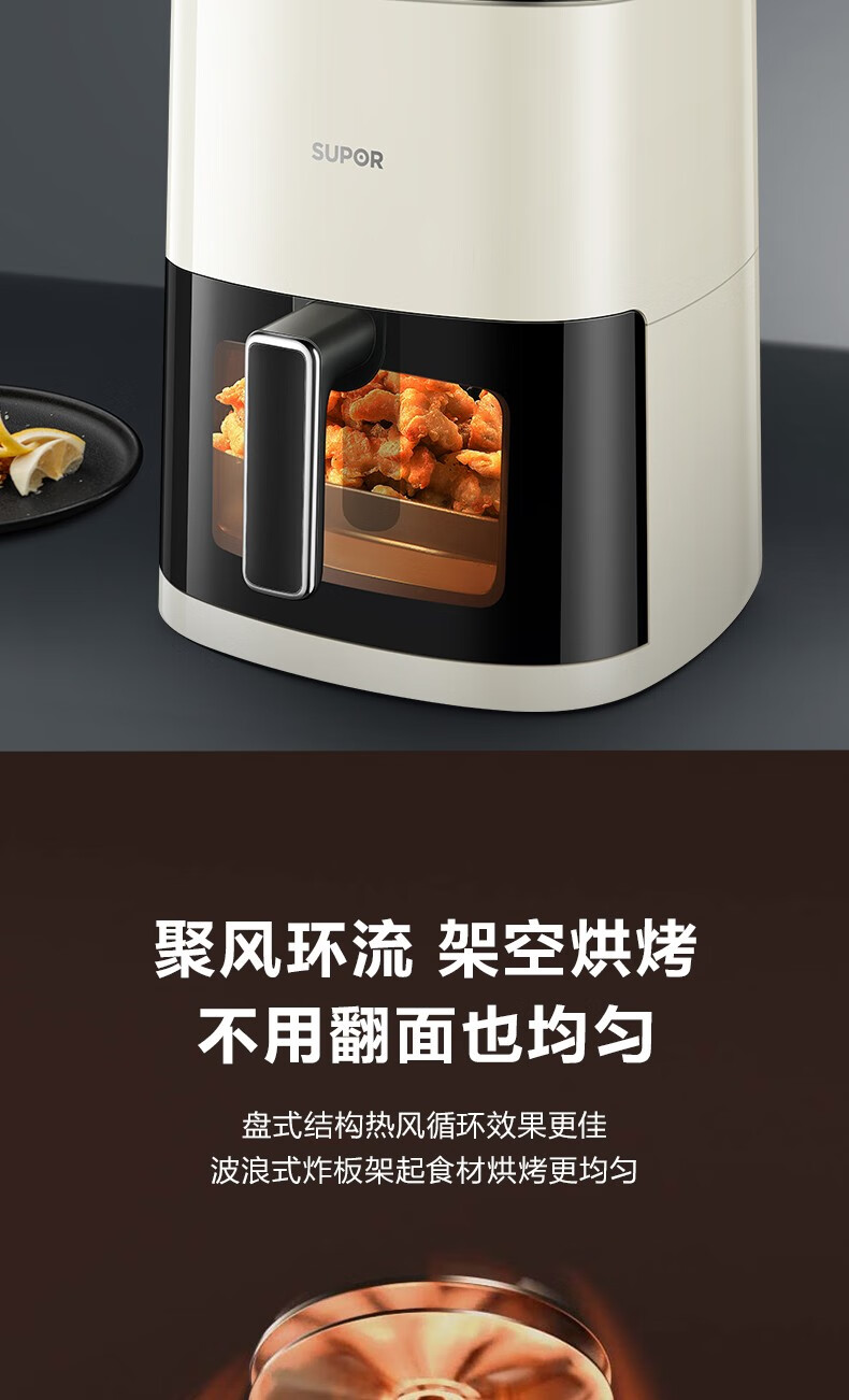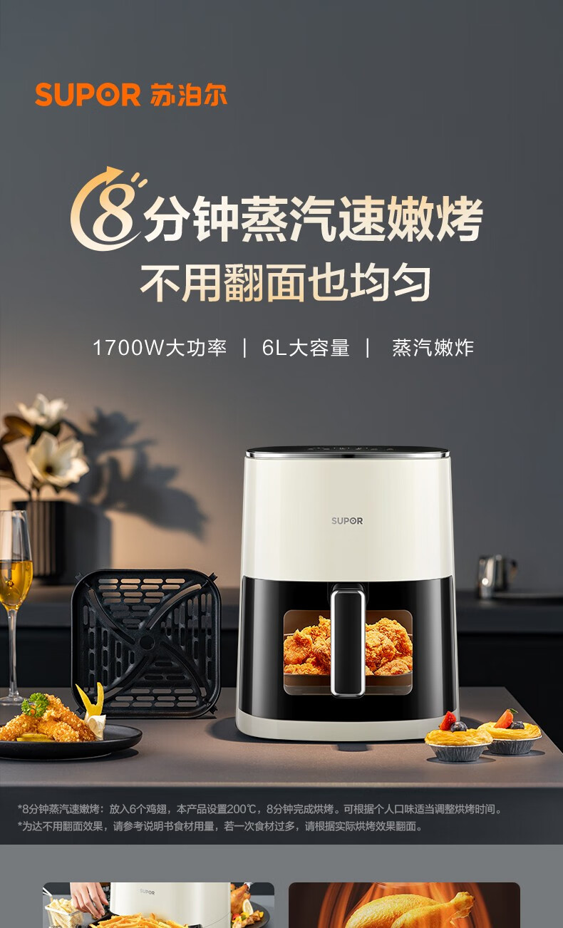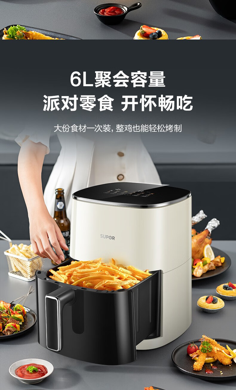 苏泊尔(SUPOR)空气炸锅家用6L大容量 可视 不用翻面 蒸汽嫩炸 大功率 液晶触控智能多功能电炸锅