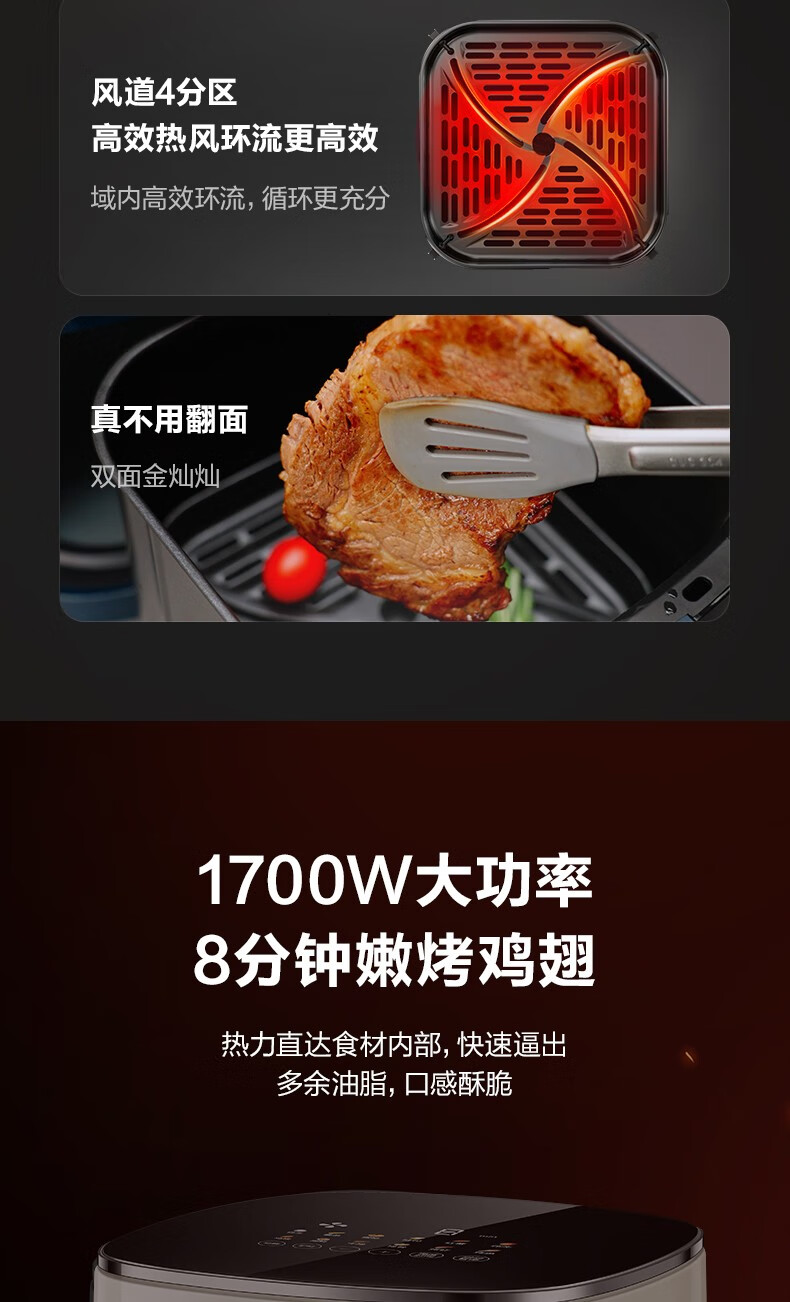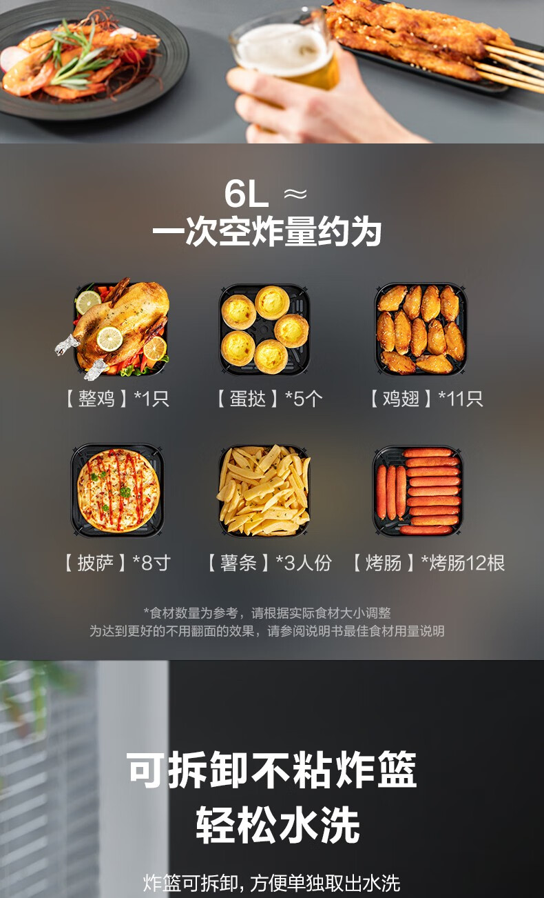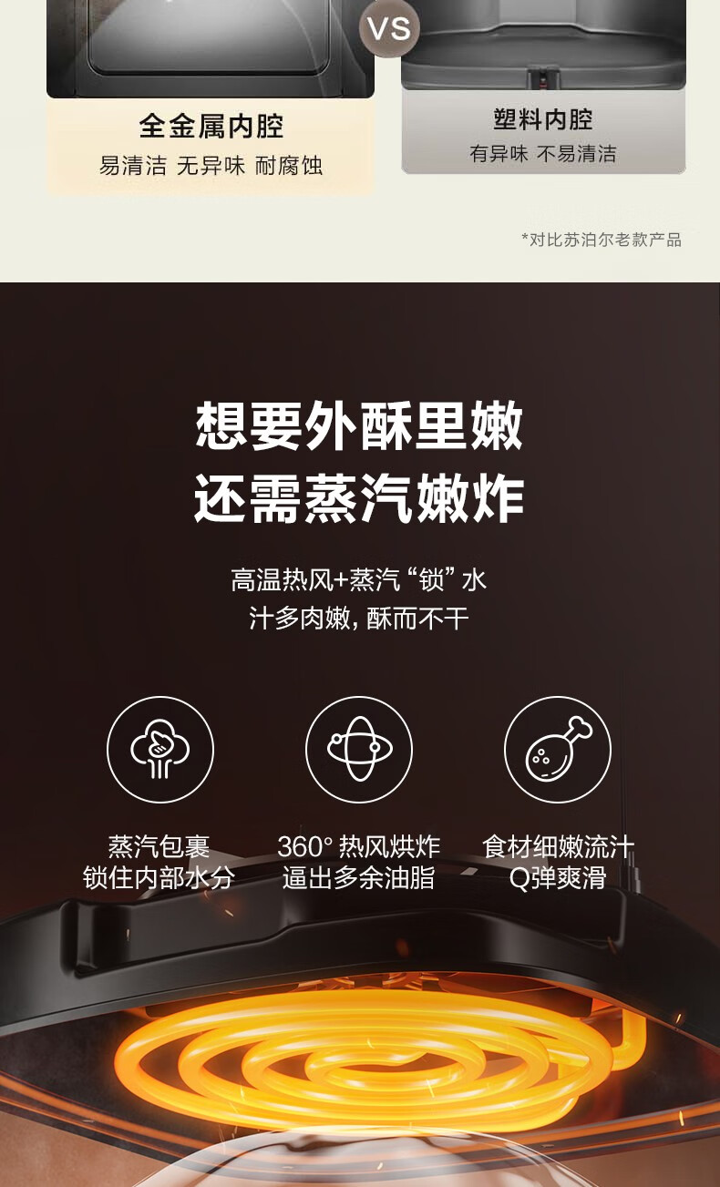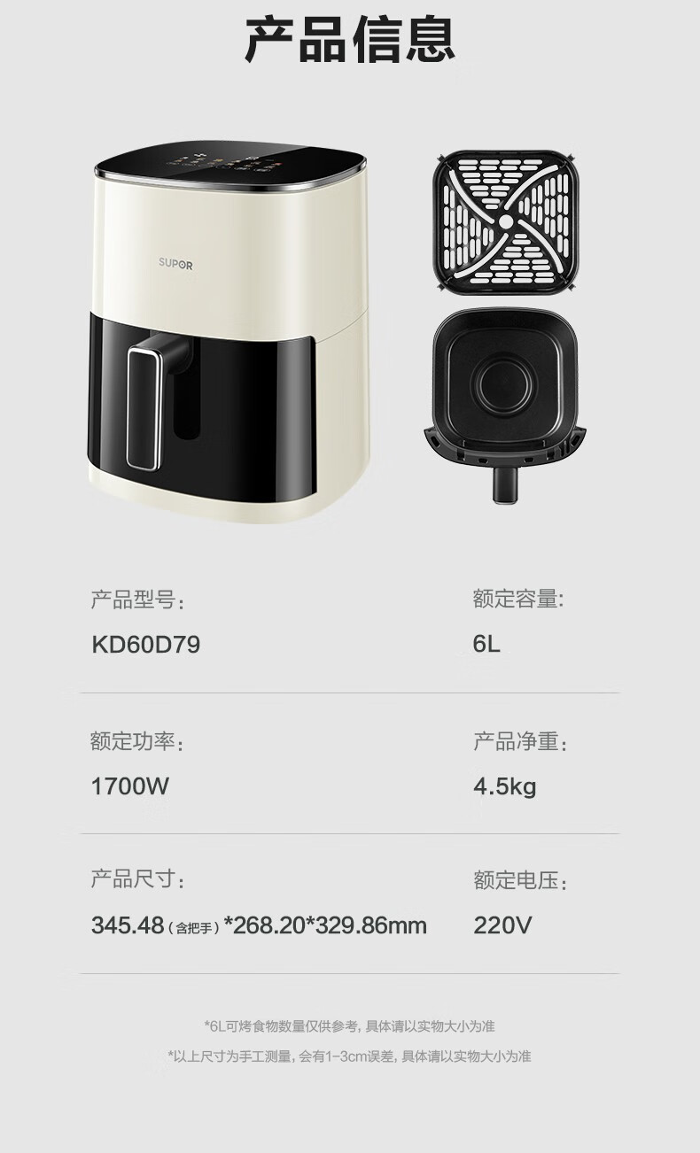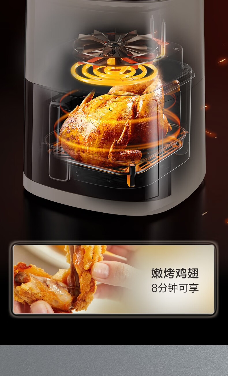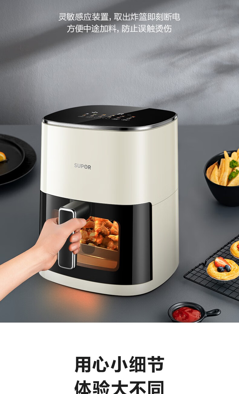 苏泊尔(SUPOR)空气炸锅家用6L大容量 可视 不用翻面 蒸汽嫩炸 大功率 液晶触控智能多功能电炸锅