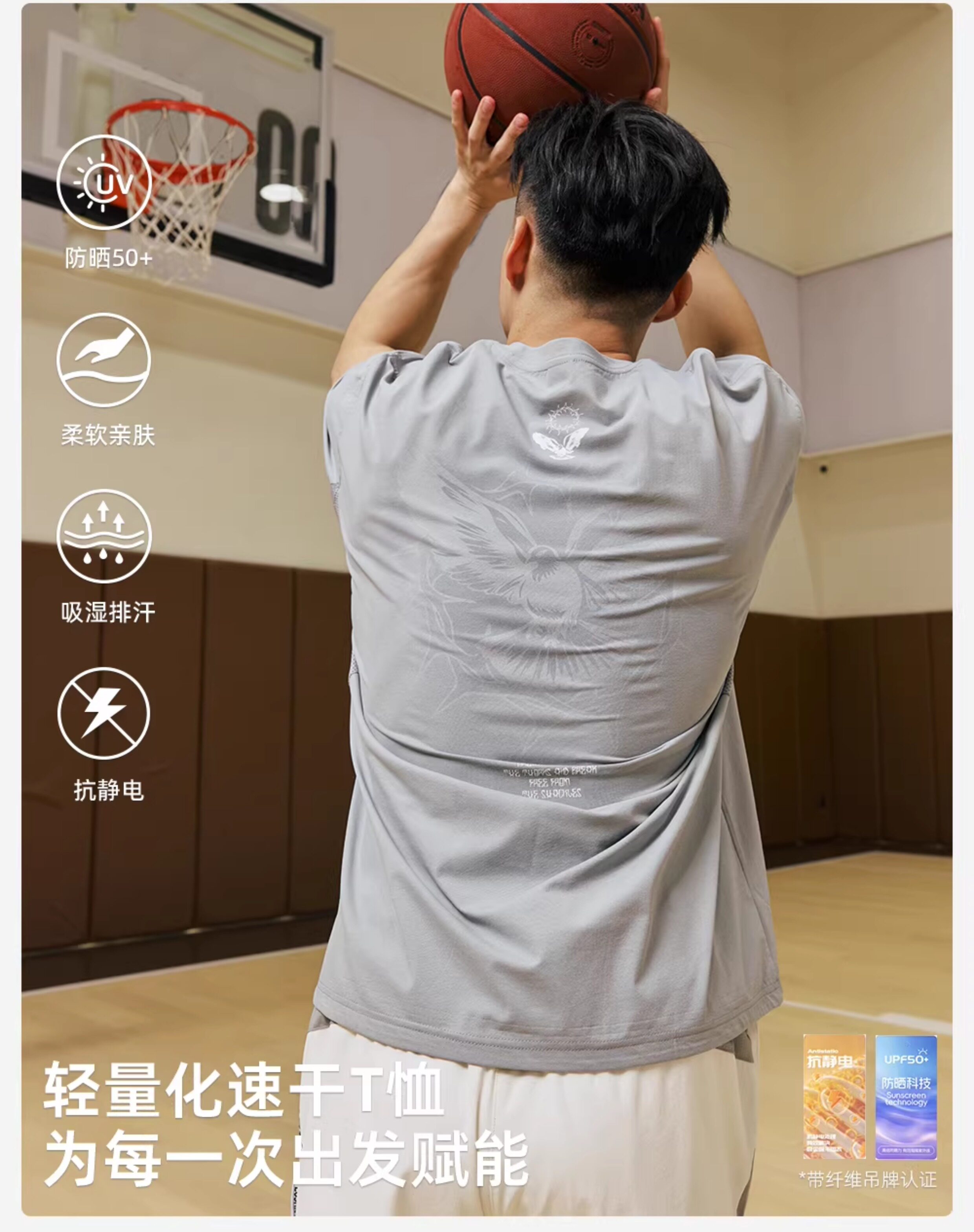 LUSHISI「速干吸湿」跑步人像主题运动风凉感无袖坎肩背心t恤男女