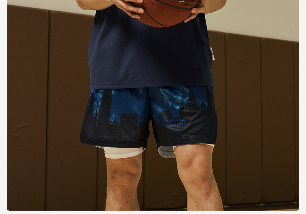 LUSHISI争冠主题篮球美式短裤夏季运动训练网眼速干四分复古球裤