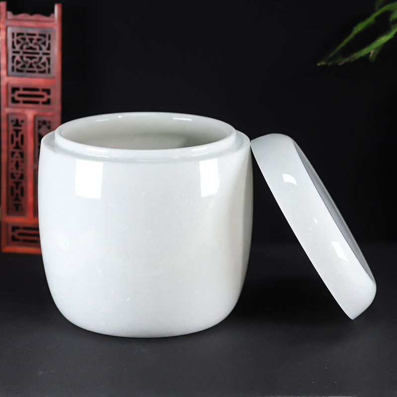 骨灰坛天然玉石白玉玉净面骨灰桶港罐骨灰盒20cm*20cm
