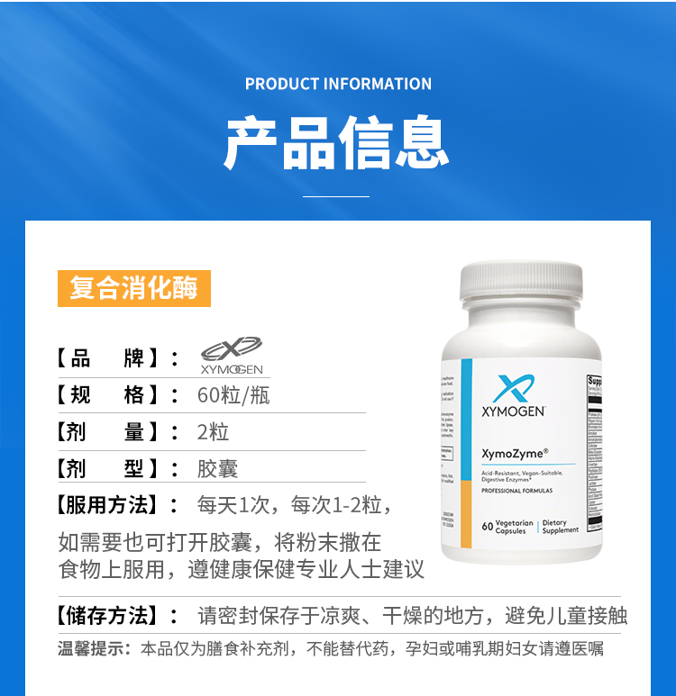 【效期至27年12月】复合消化酶胶囊 XYMOGEN XymoZyme 60C 60粒/瓶