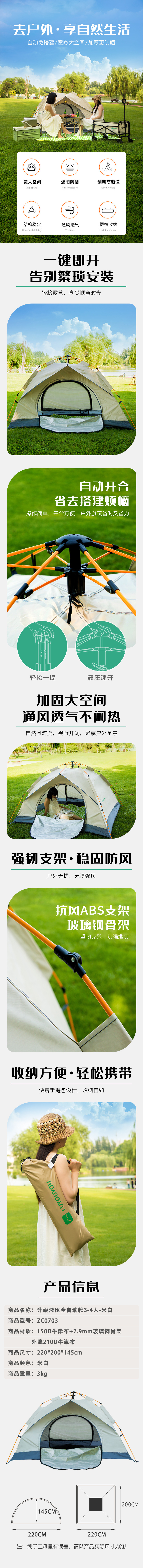 路悠悠升级液压全自动帐3-4人-米白ZC0703