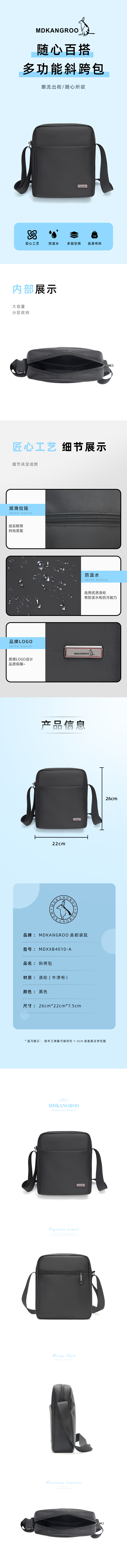 美都袋鼠/MDKANGROO黑色牛津布斜跨包MDXXB4010-A