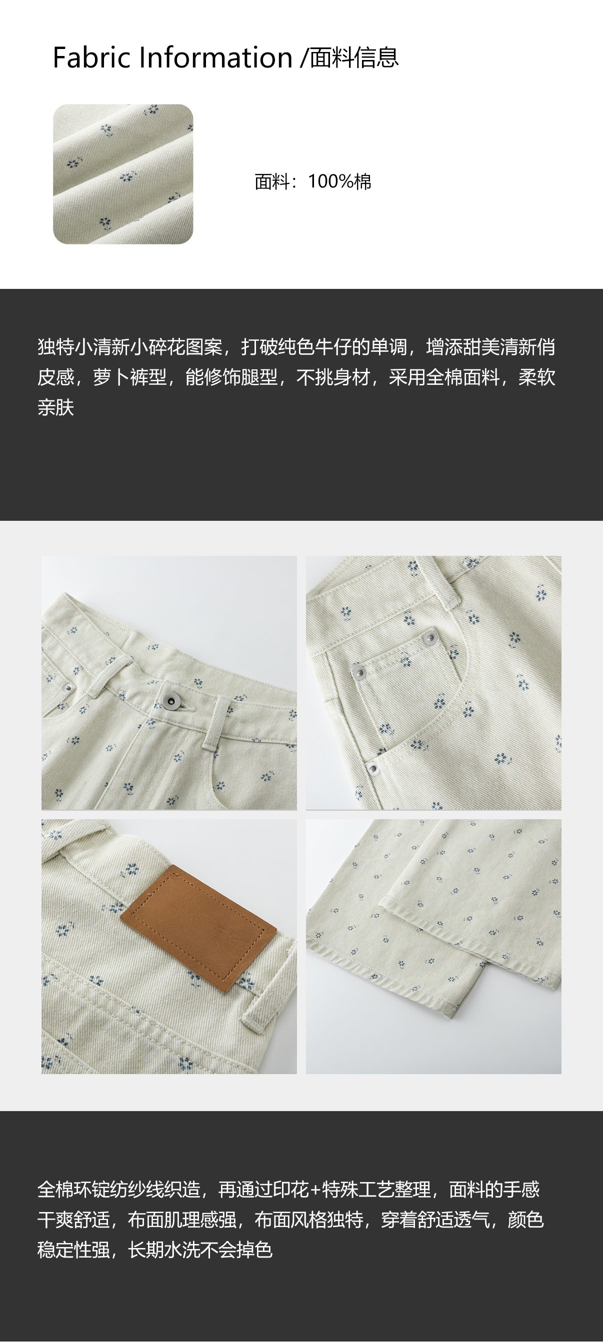 COCO ZONE 刘一一 【100棉】度假风小碎花显瘦牛仔裤CD1A0601