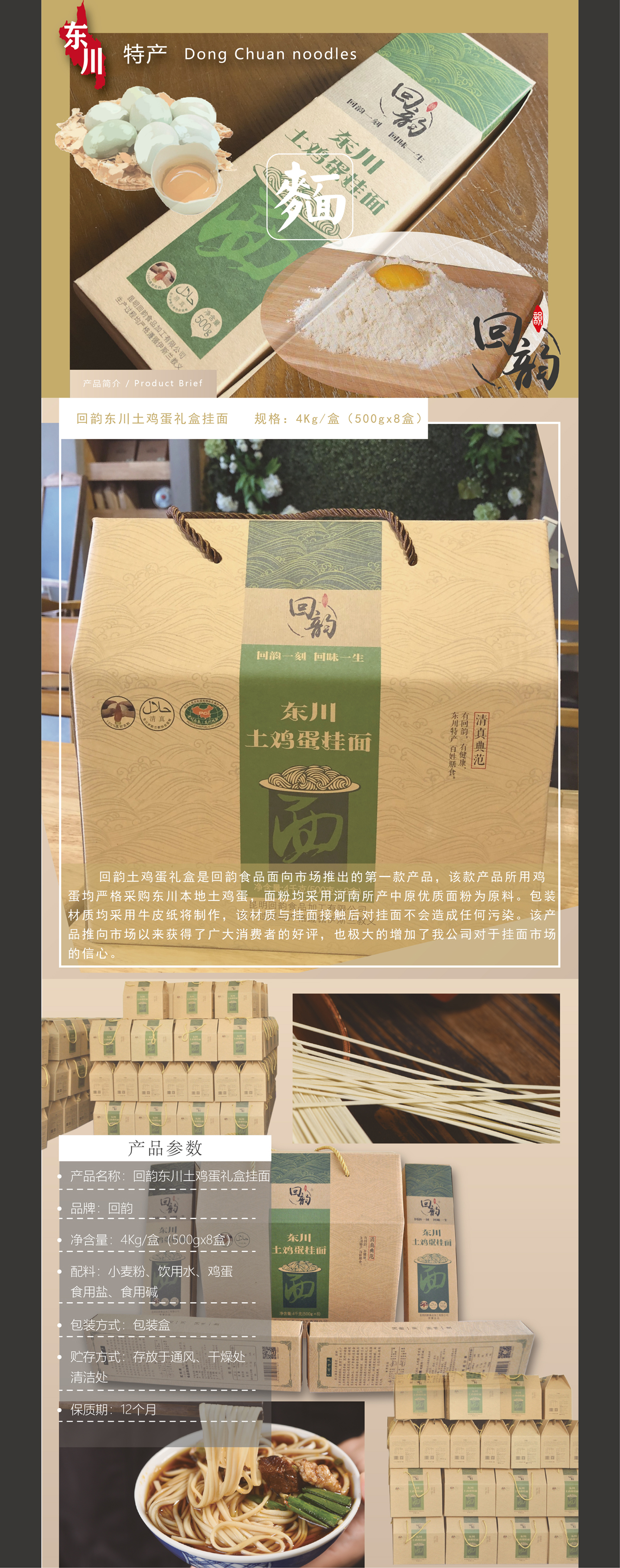 4KG 回韵土鸡蛋挂面礼盒500g*8