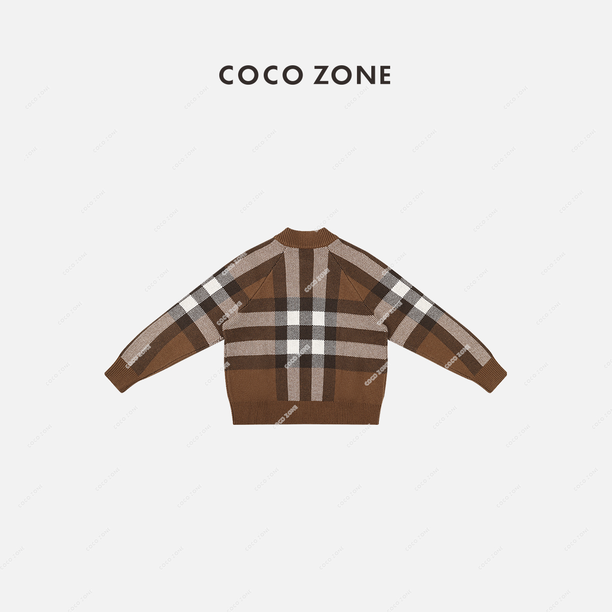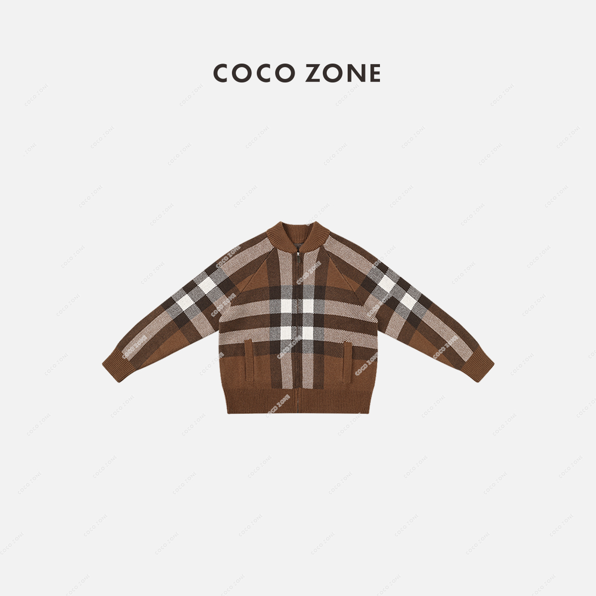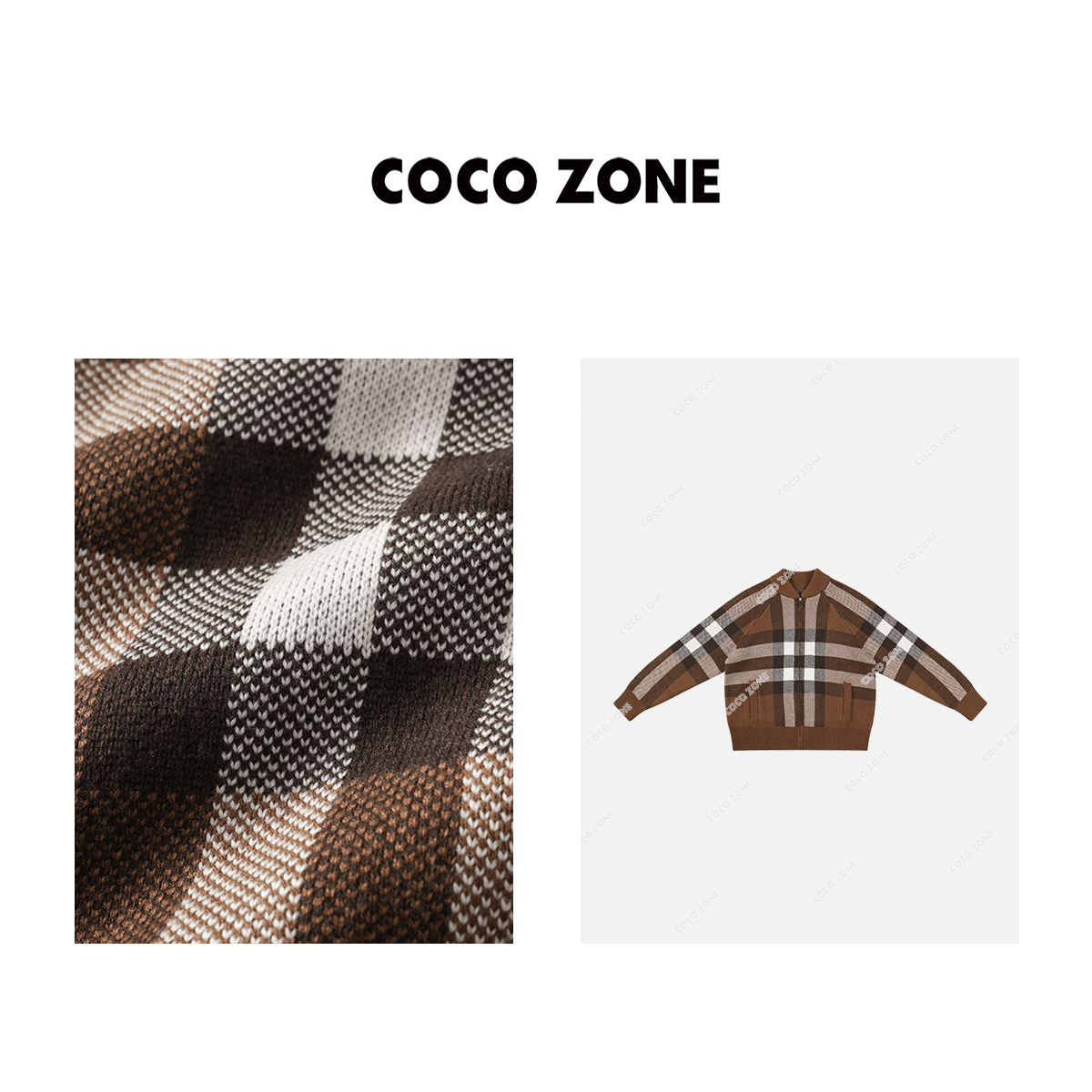 COCO ZONE秋冬时尚经典格纹毛针织衫棒球领短外套23C19792