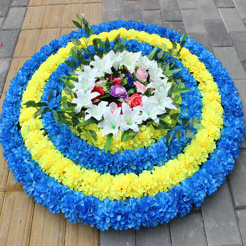蓝+黄+蓝+黄仿真花圈1.3米绢花圈假花圈白事用菊花殡仪馆装饰花祭祀祭奠陵园