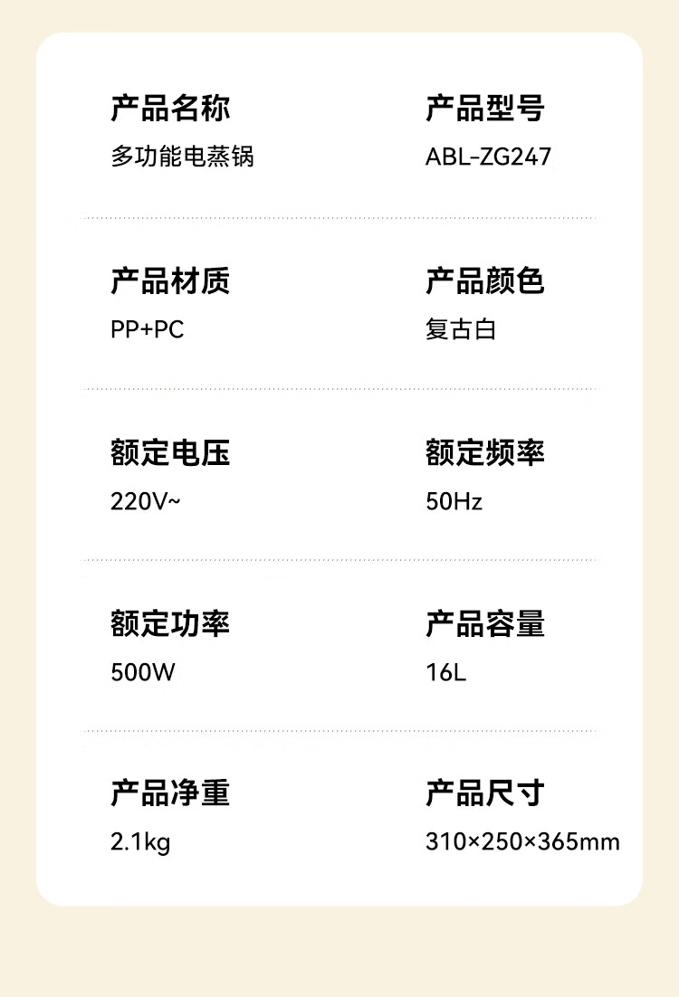 艾贝丽多功能电蒸锅ABL-ZG247