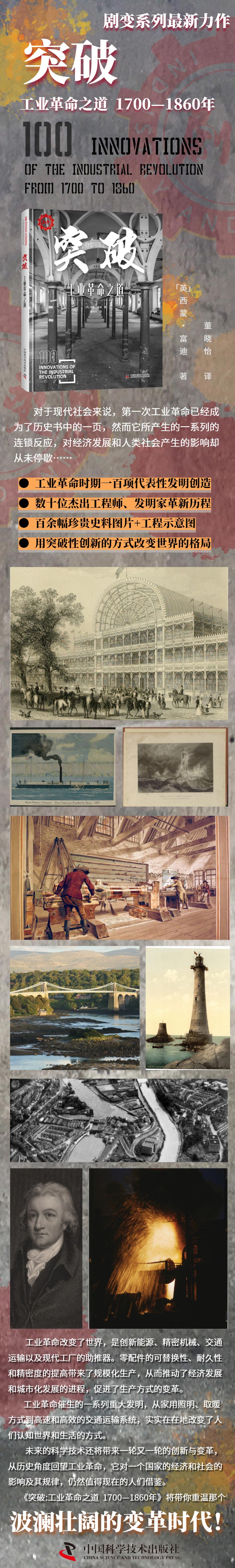 工业革命改变了世界,是创新能源、精密机械、交通运输以及现代工厂的助推器。如零配件的可替换性、耐久性和精密度的提高带来了规模性生产,从而推动了经济发展和城市化发展的进程,促进了生产方式的变革。因此催生的一系列重大发明, 从家用照明、取暖方式到高速和高效的交通运输系统,工业革命实实在在地改变了人们认知世界和生活的方式。 本书选择了1700—1860年间重要的100项科技发明创造,以期通过这些创新和突破来审视这个波澜壮阔的变革时代。