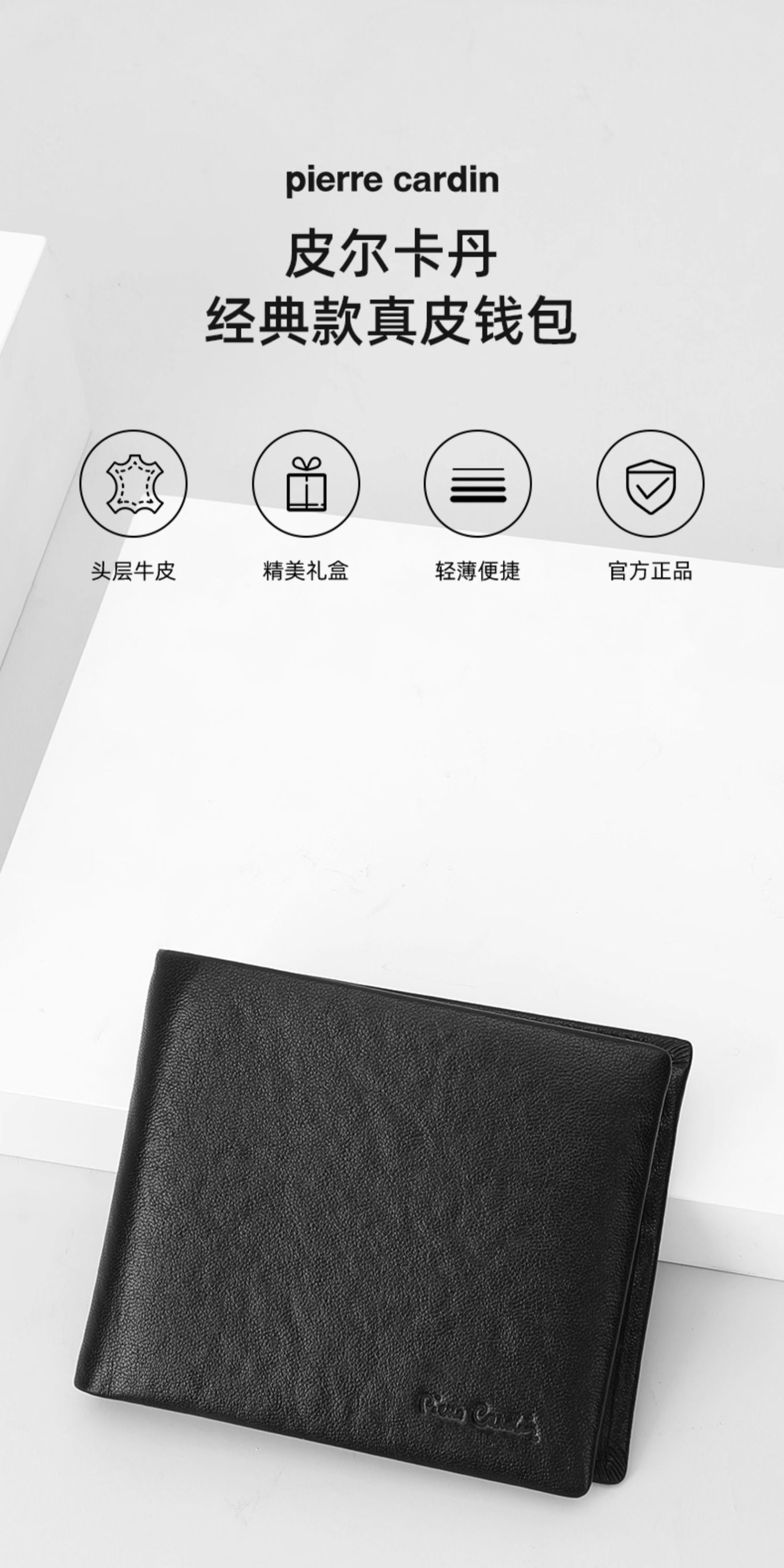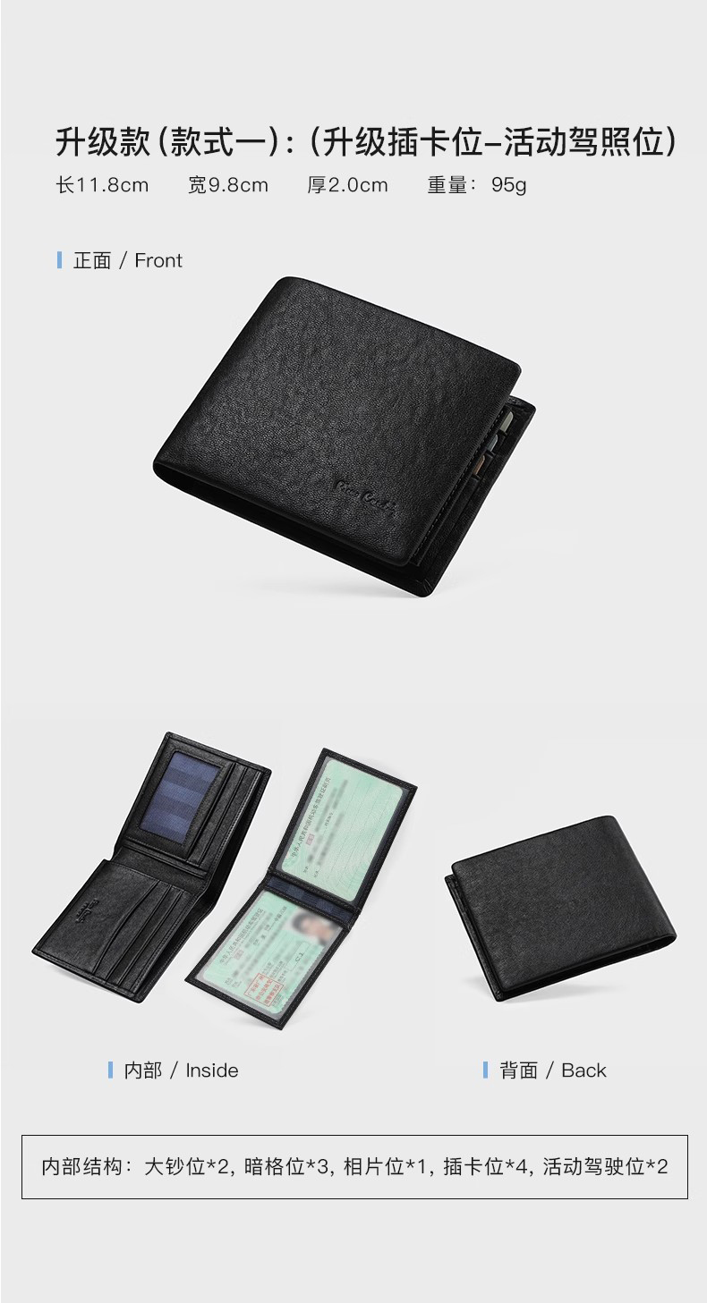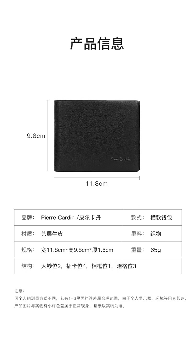 皮尔卡丹男士钱包短款真皮钱包J9A509-360101A