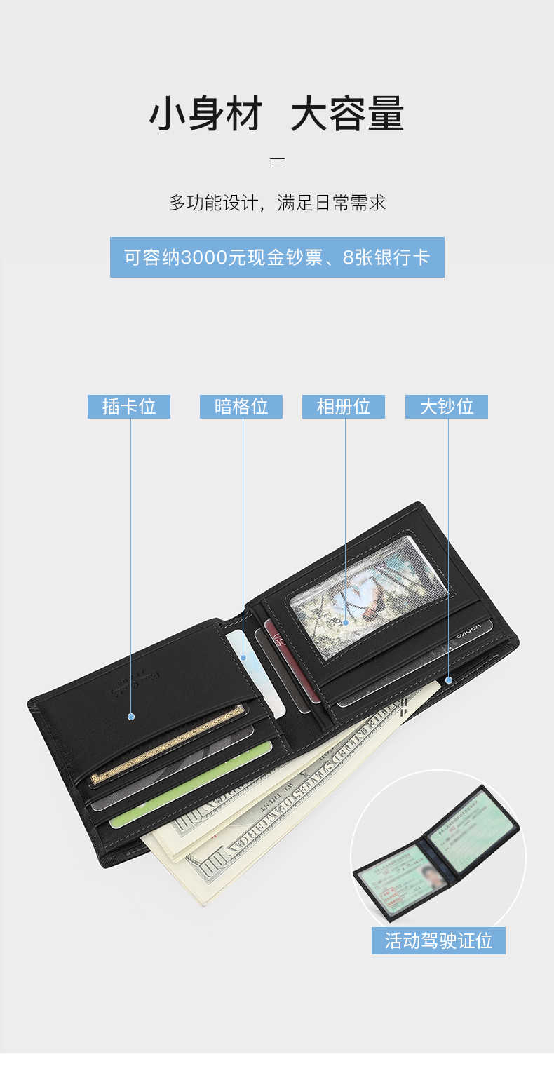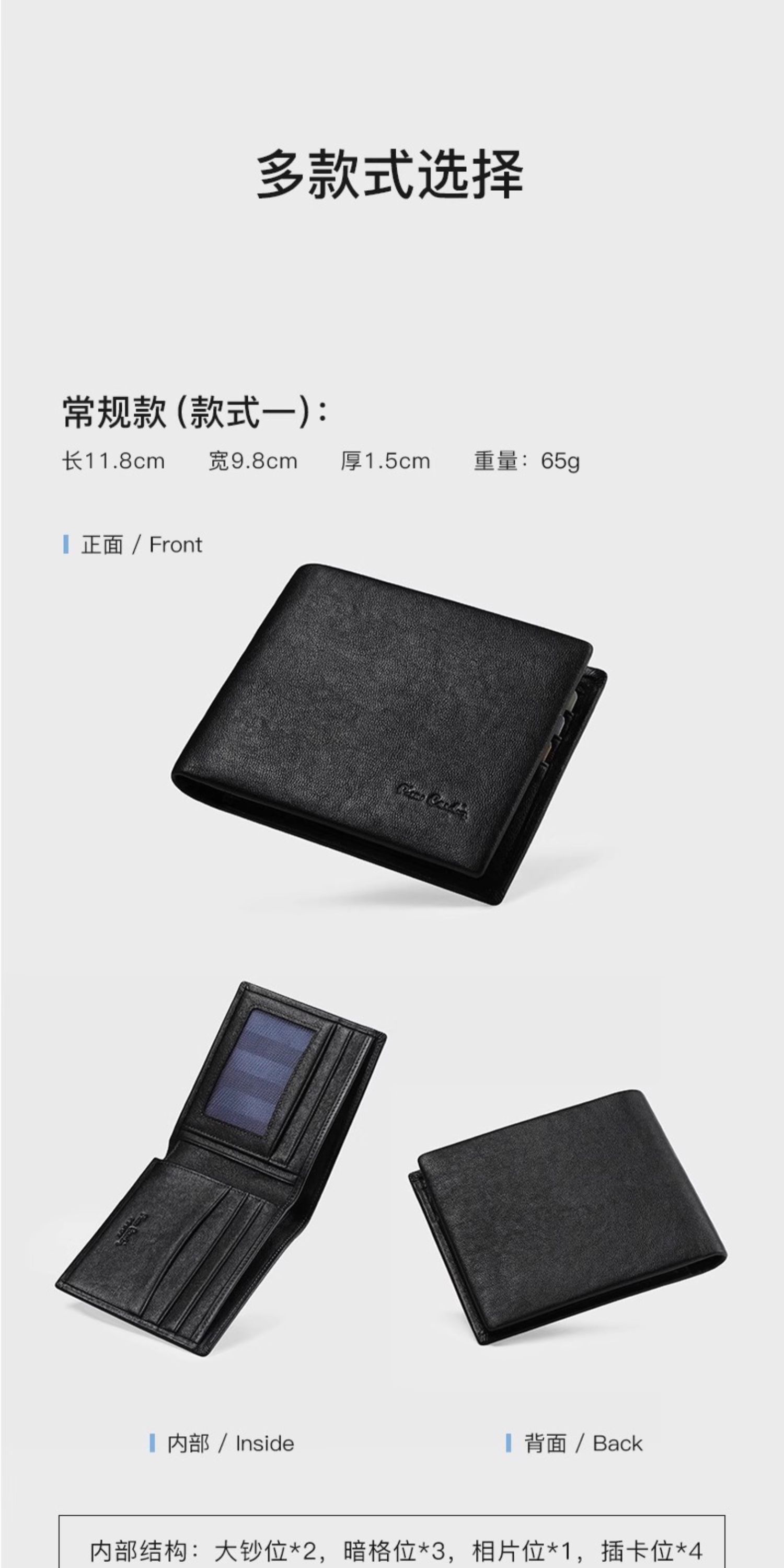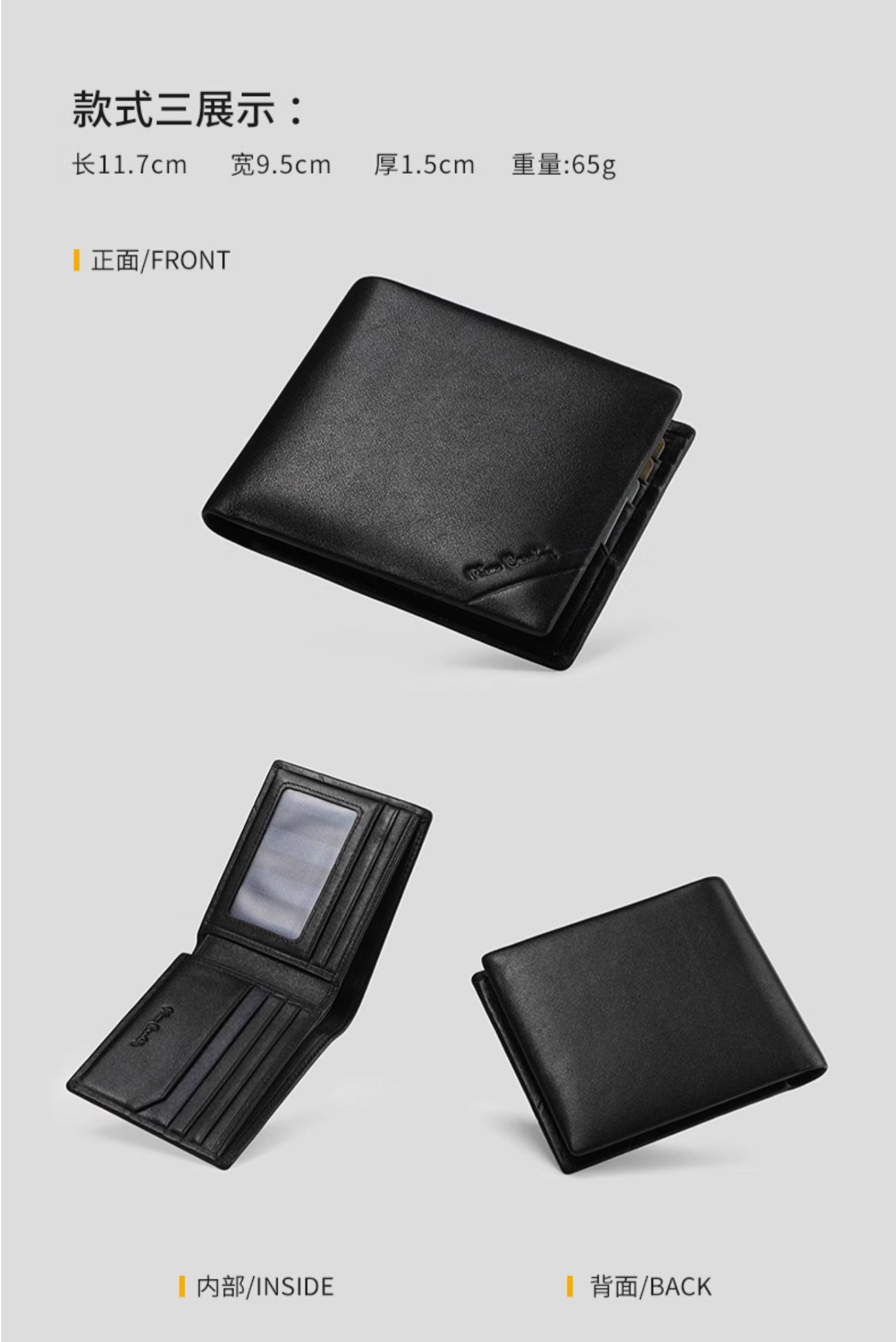 皮尔卡丹男士钱包短款真皮钱包J9A509-360101A