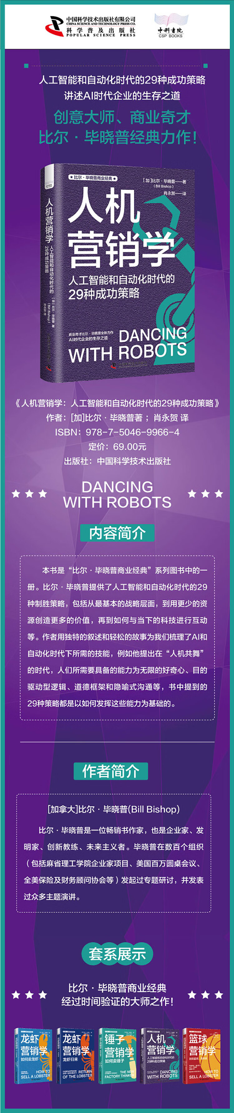本书是“比尔·毕晓普商业经典”系列图书中的一册。比尔·毕晓普提供了人工智能和自动化时代的29种制胜策略,包括从最基本的战略层面,到用更少的资源创造更多的价值,再到如何与当下的科技进行互动等。作者用独特的叙述和轻松的故事为我们梳理了AI和自动化时代下所需的技能,例如他提出在“人机共舞”的时代,人们所需要具备的能力为无限的好奇心、目的驱动型逻辑、道德框架和隐喻式沟通等,书中提到的29种策略都是以如何发挥这些能力为基础的。