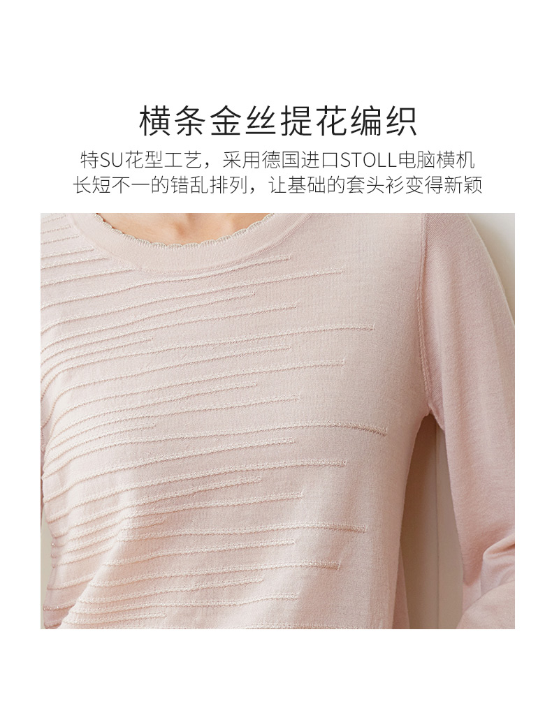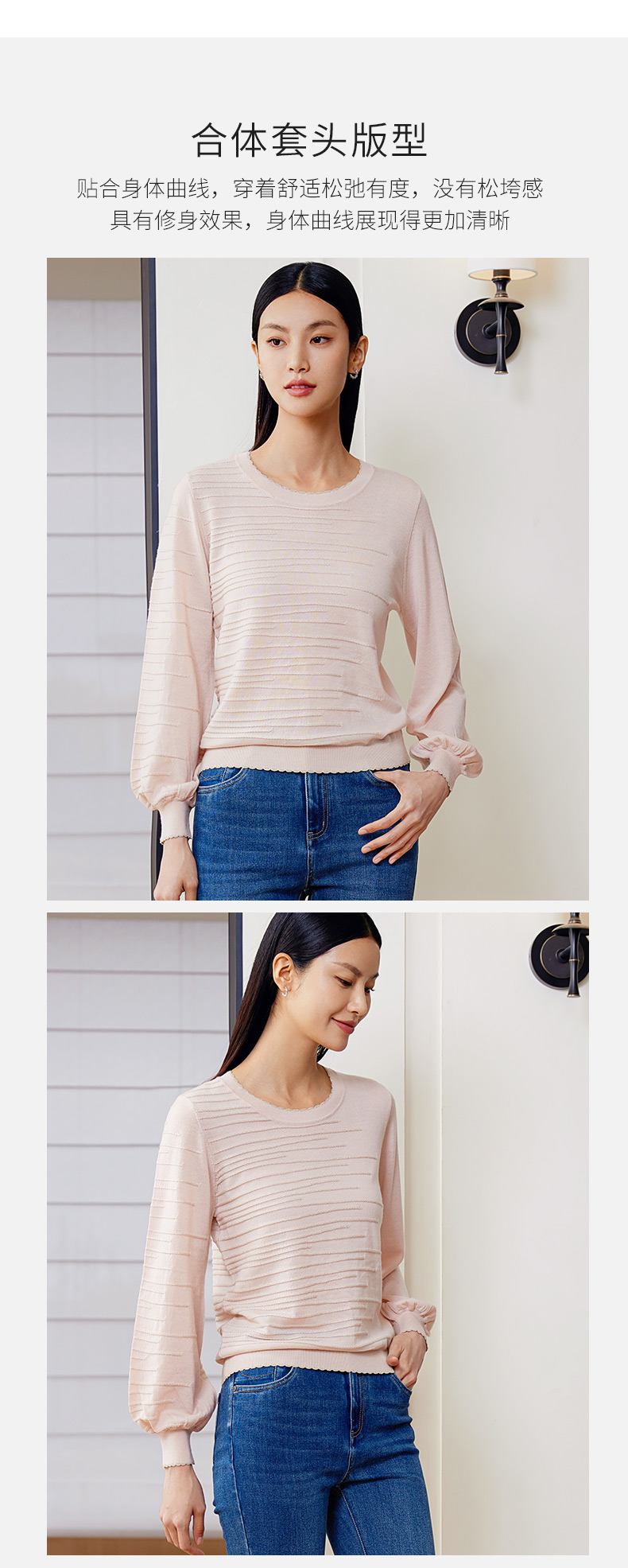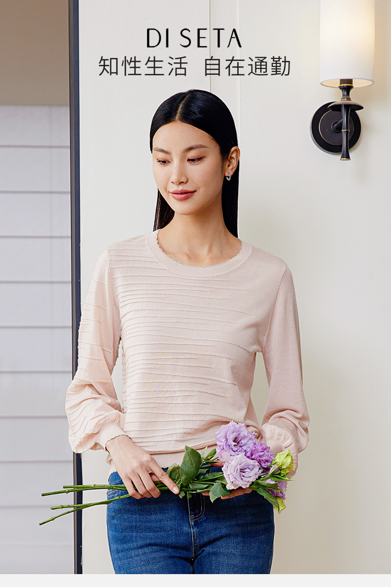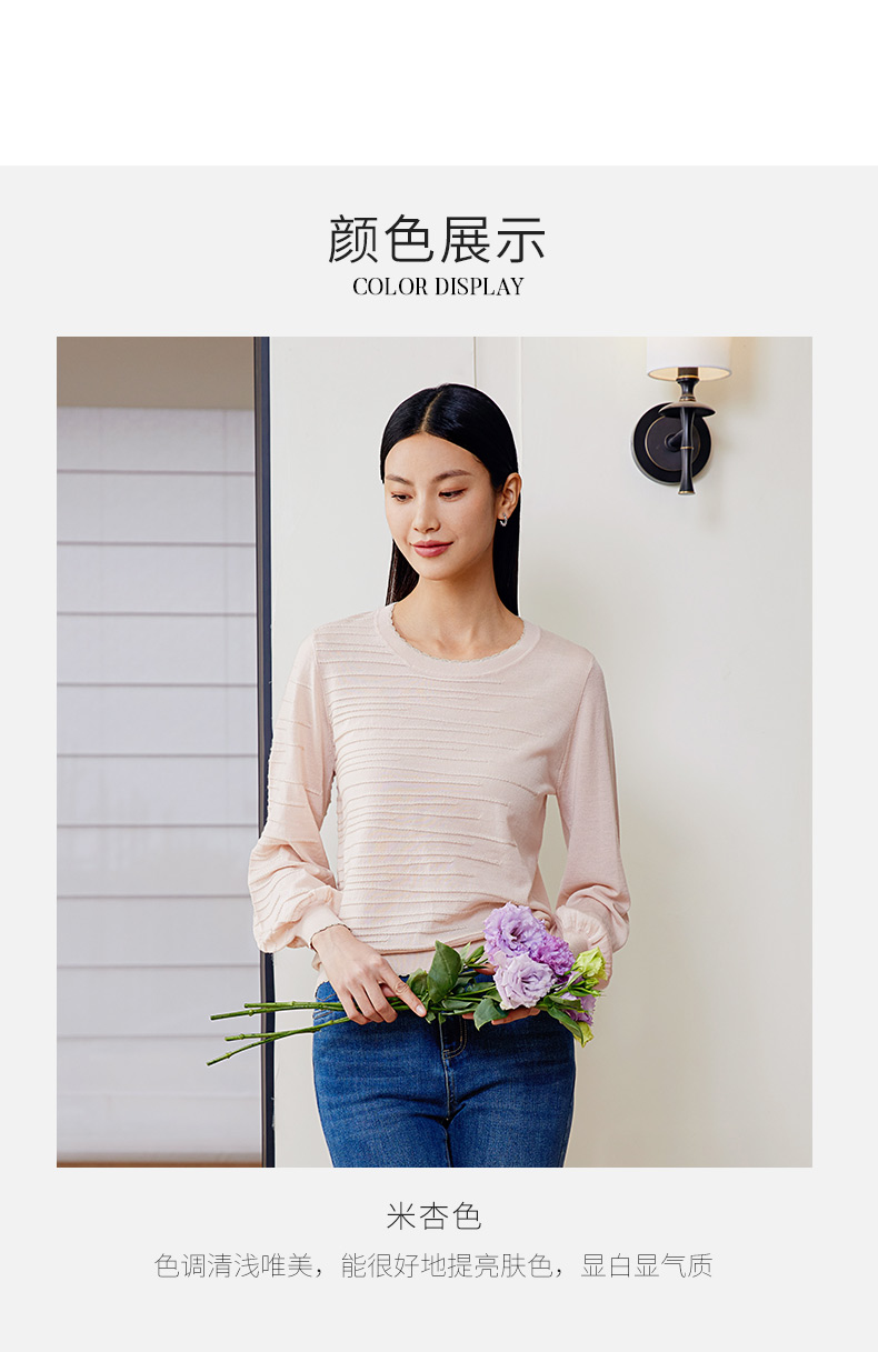 玳莎提花绵羊毛针织衫2024春季新款女凉爽设计感圆领套头长袖上衣 EA33305