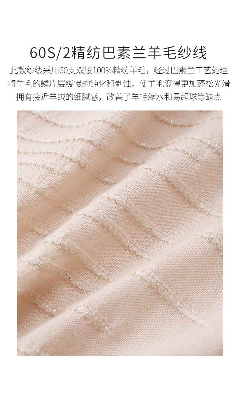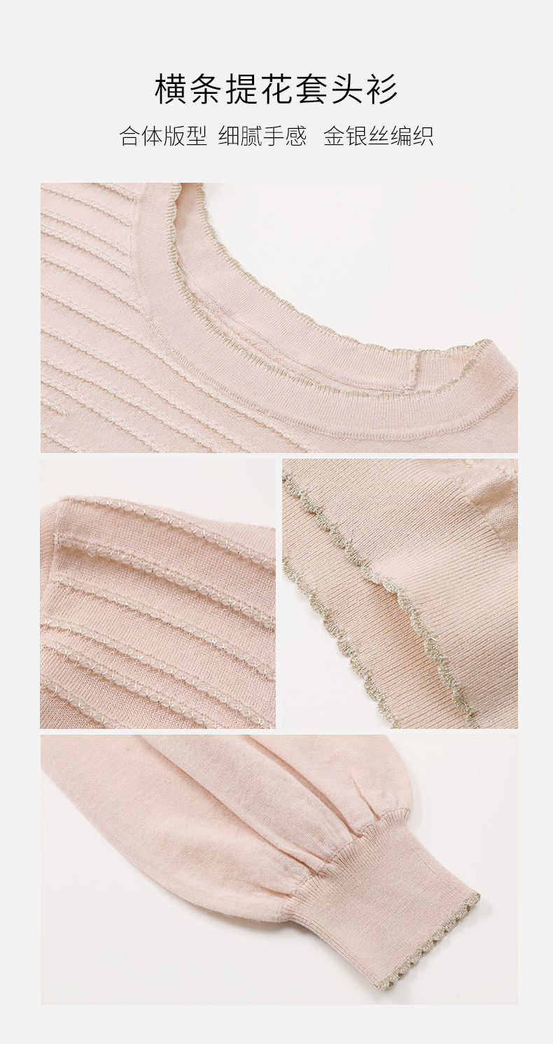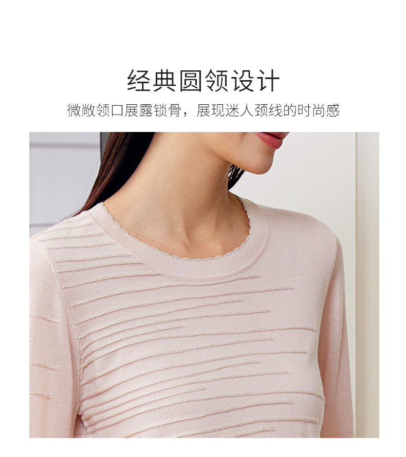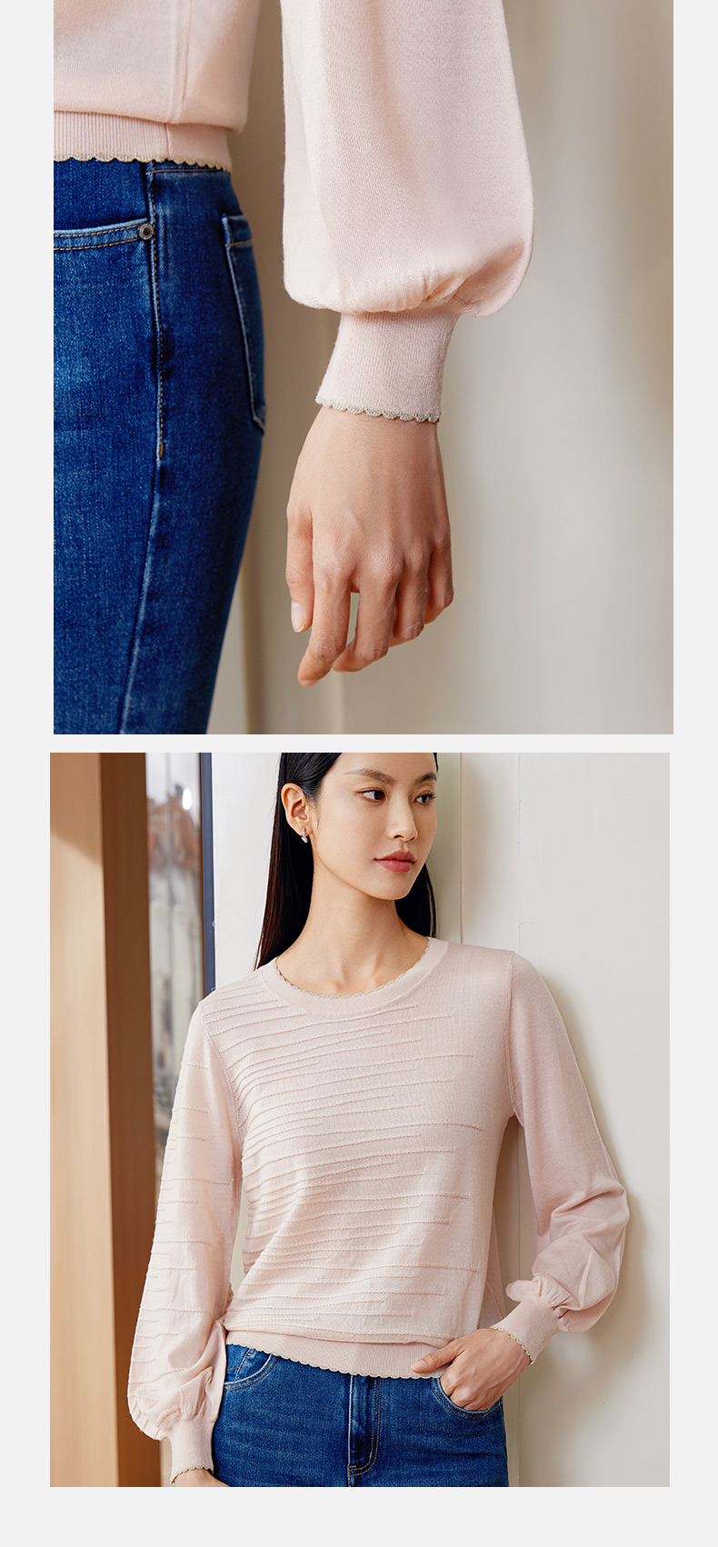 玳莎提花绵羊毛针织衫2024春季新款女凉爽设计感圆领套头长袖上衣 EA33305