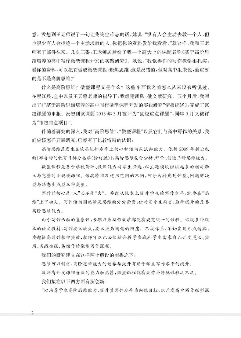 高中议论文难点突破 基于高阶思维培养的“问题解决型专题写作”微型课程”
