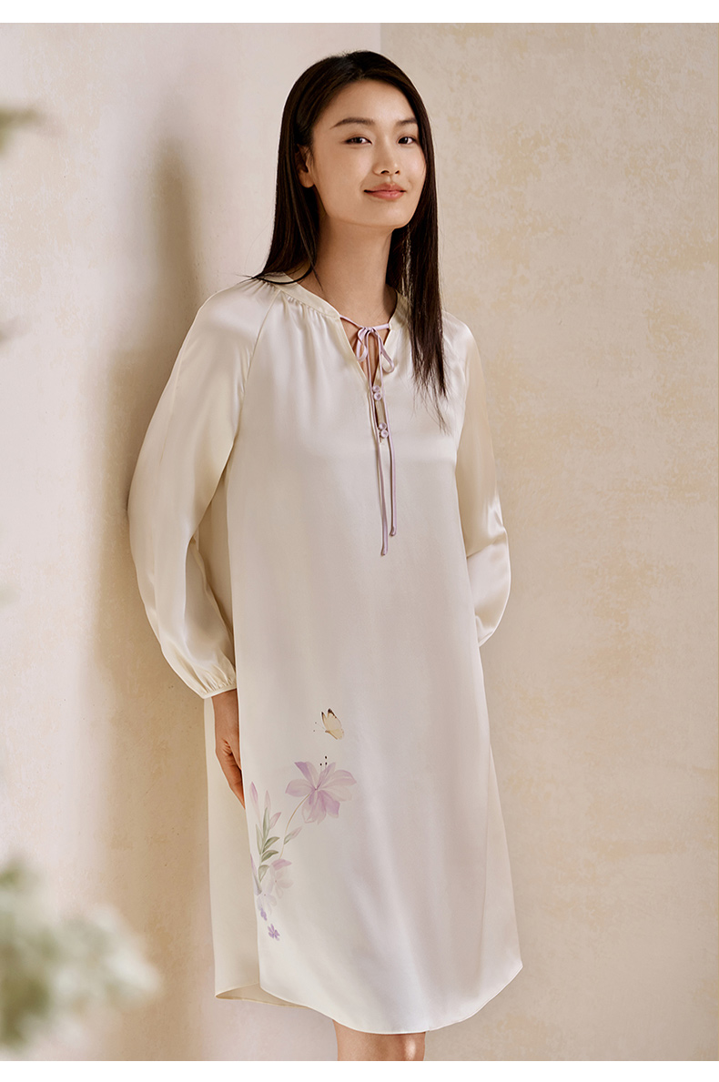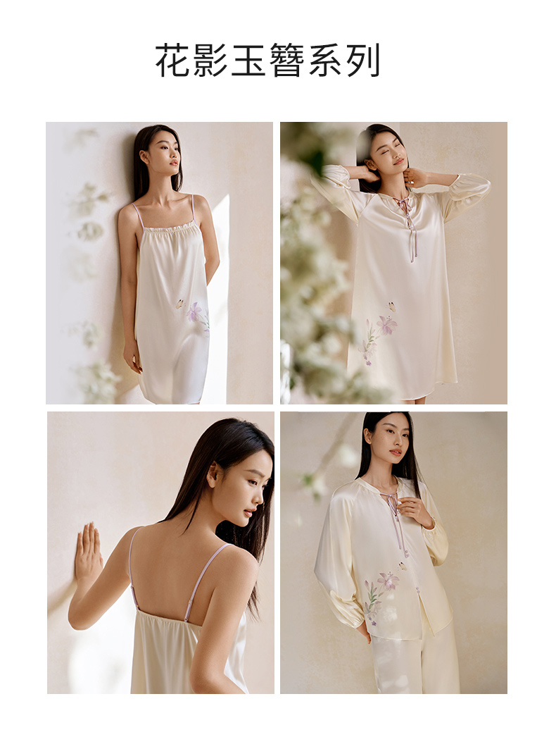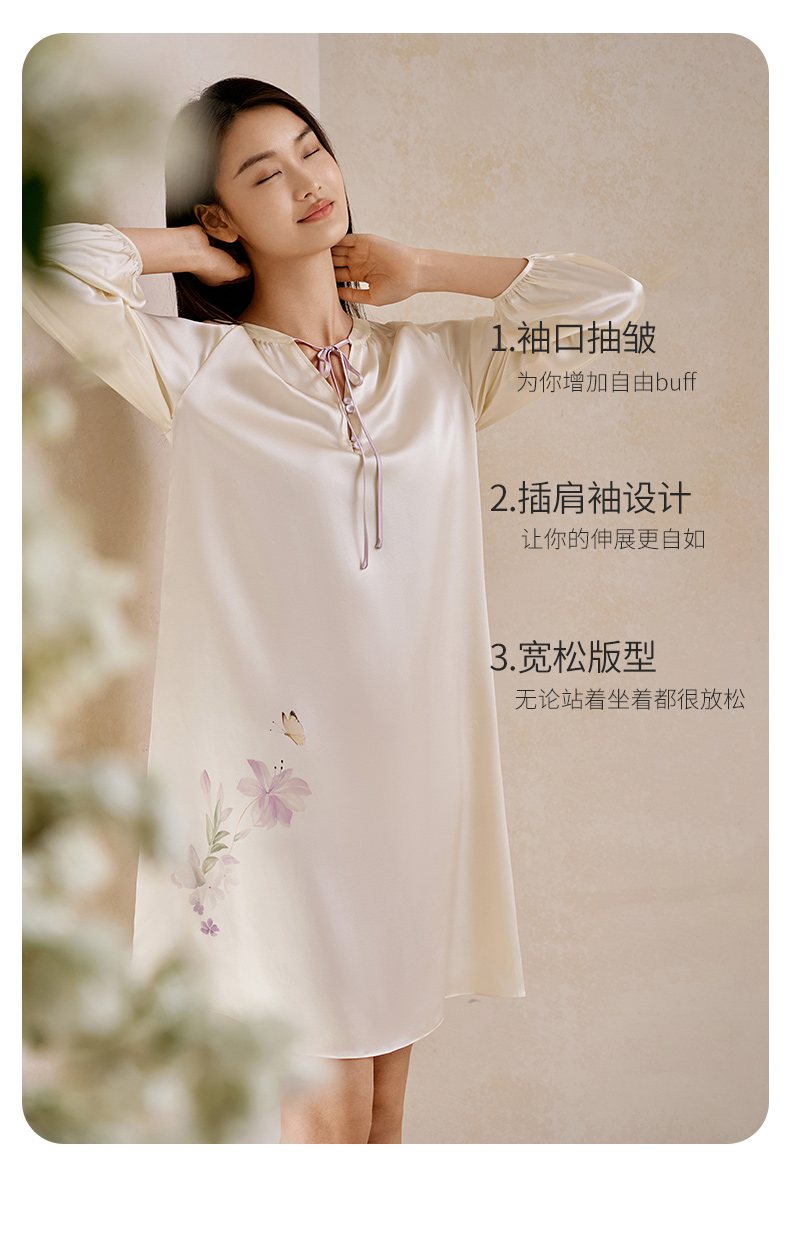 花影玉簪】金三塔新品重磅真丝睡衣女100%桑蚕丝印花睡裙家居服 YSFFA302
