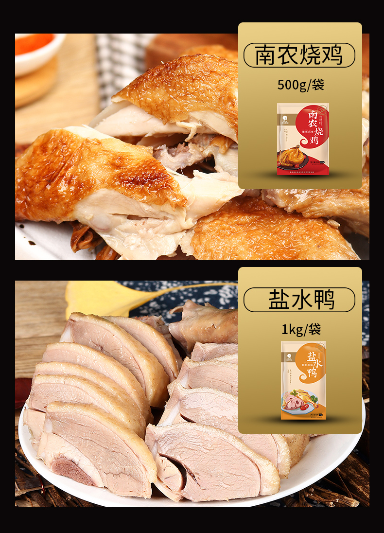 (分两个包裹)南农南京特产酱鸭整只装1kg/袋+南农南京特产酱卤味熟食真空包装二件套组合(烧鸡500g+盐水鸭1kg)【鲜享1.5】