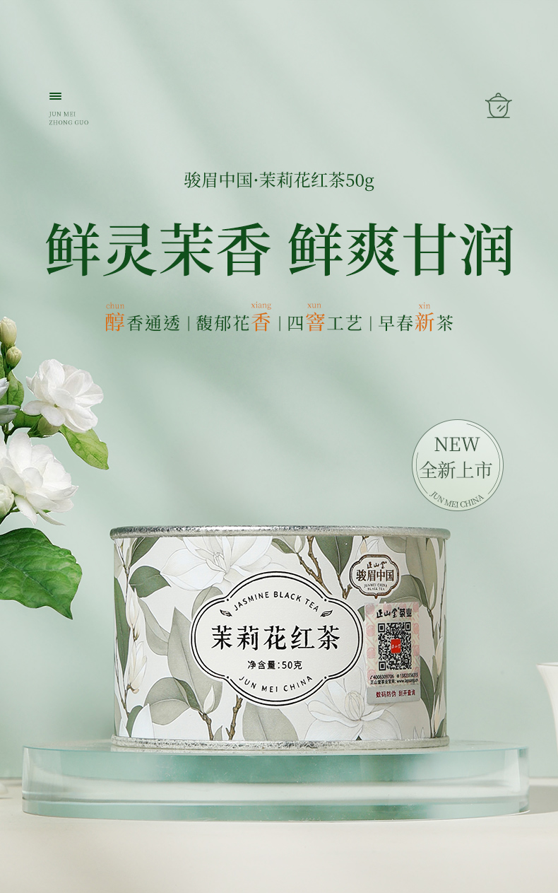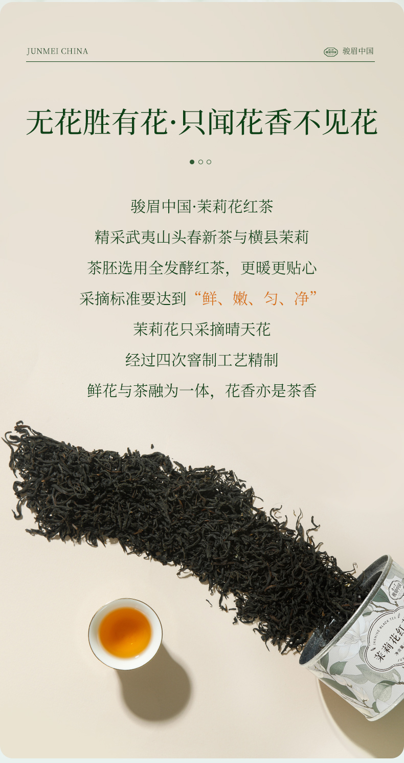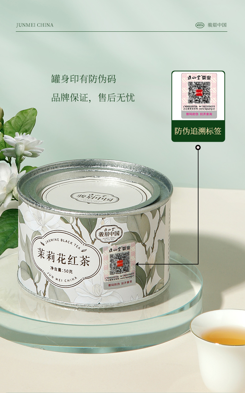 正山堂骏眉中国 茉莉花红茶特级红茶自己喝茶叶罐装冷泡茶50g