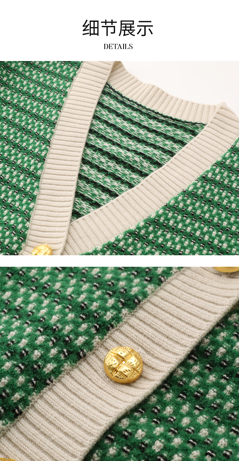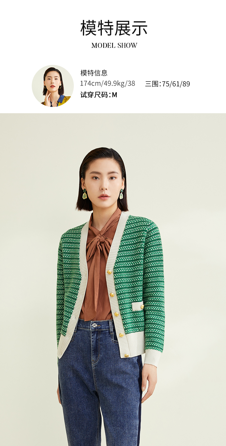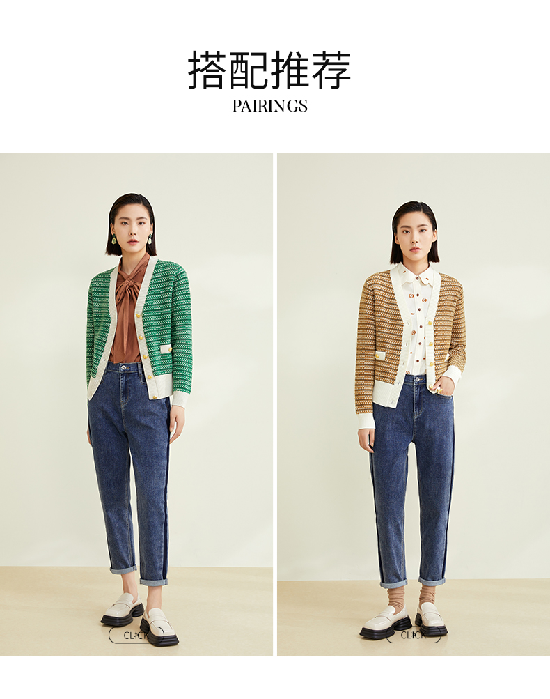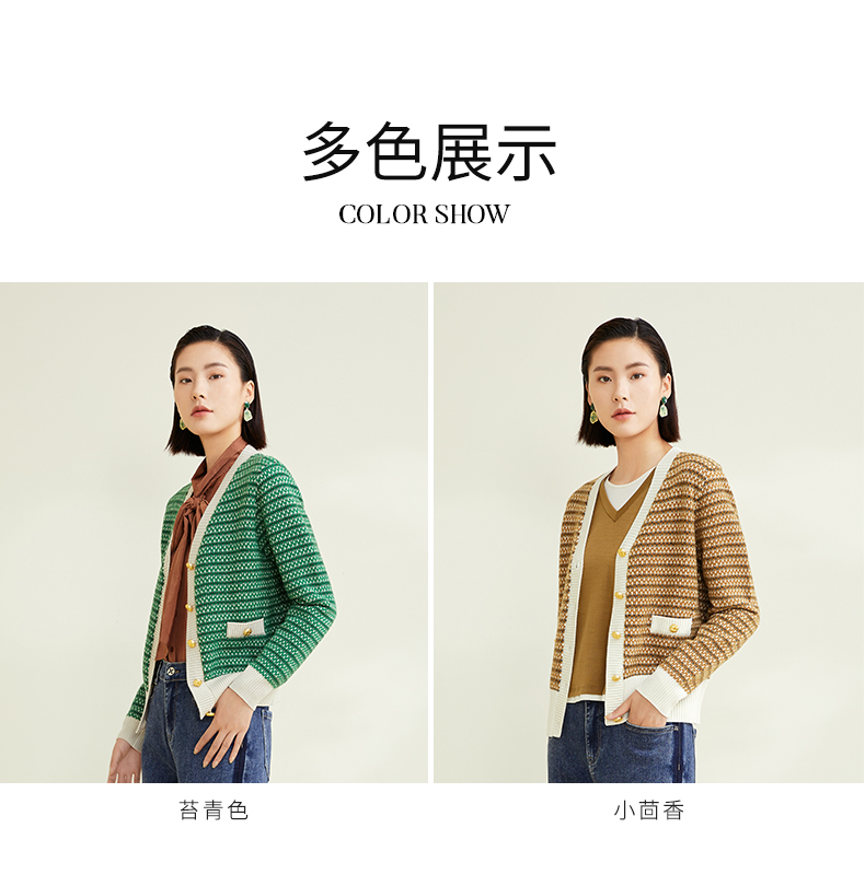 玳莎小香风针织开衫女优雅设计感V领上衣羊毛针织衫 CD33303